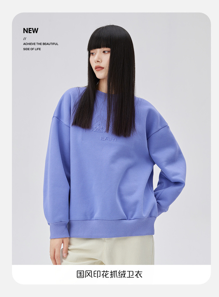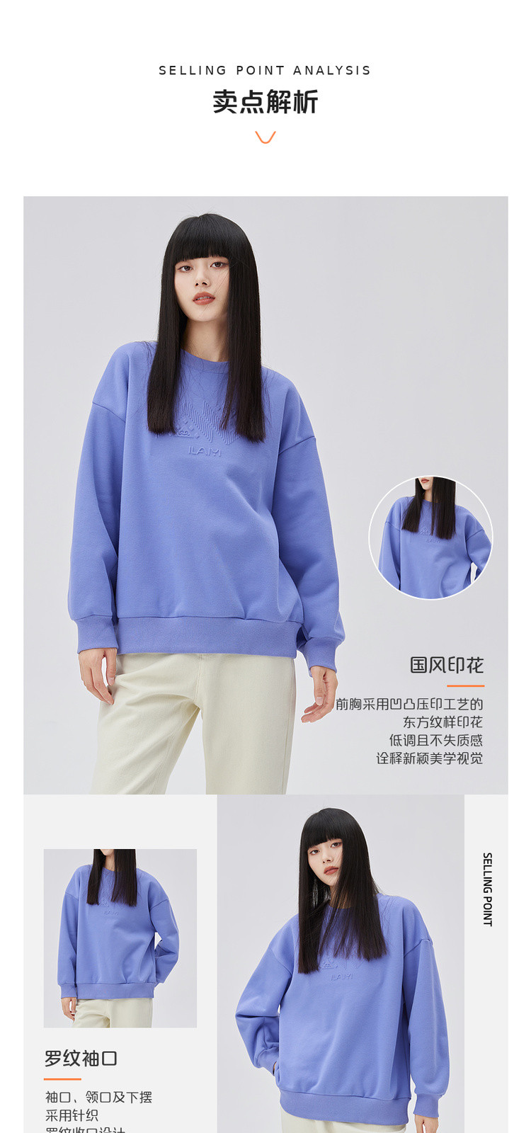 商品名称:时尚休闲落肩袖宽松卫衣女士休闲时百搭国风圆领长袖套头卫衣女 352726