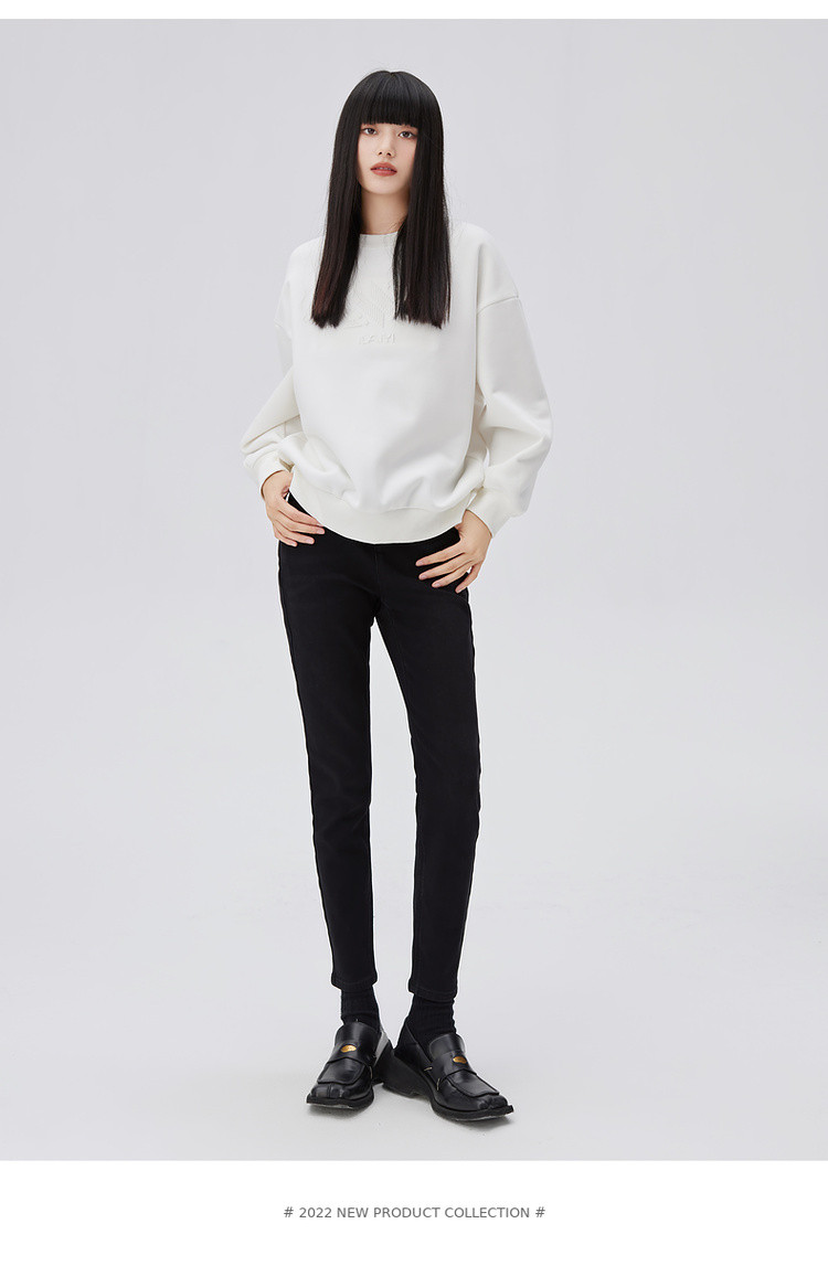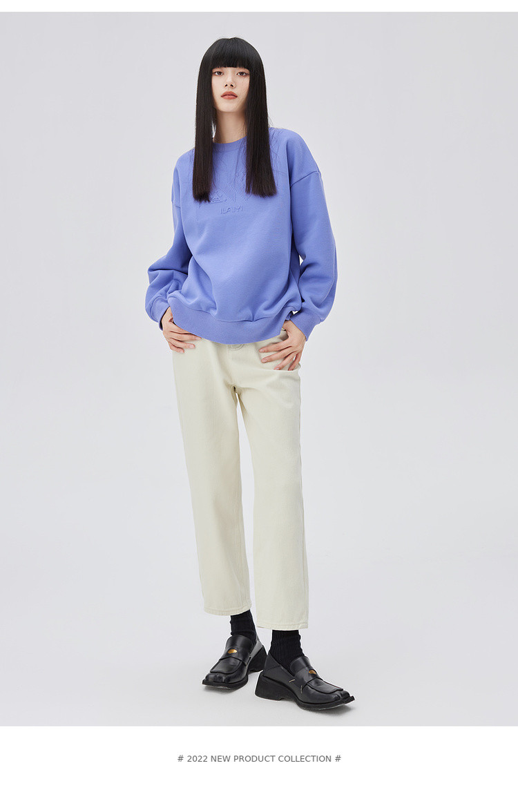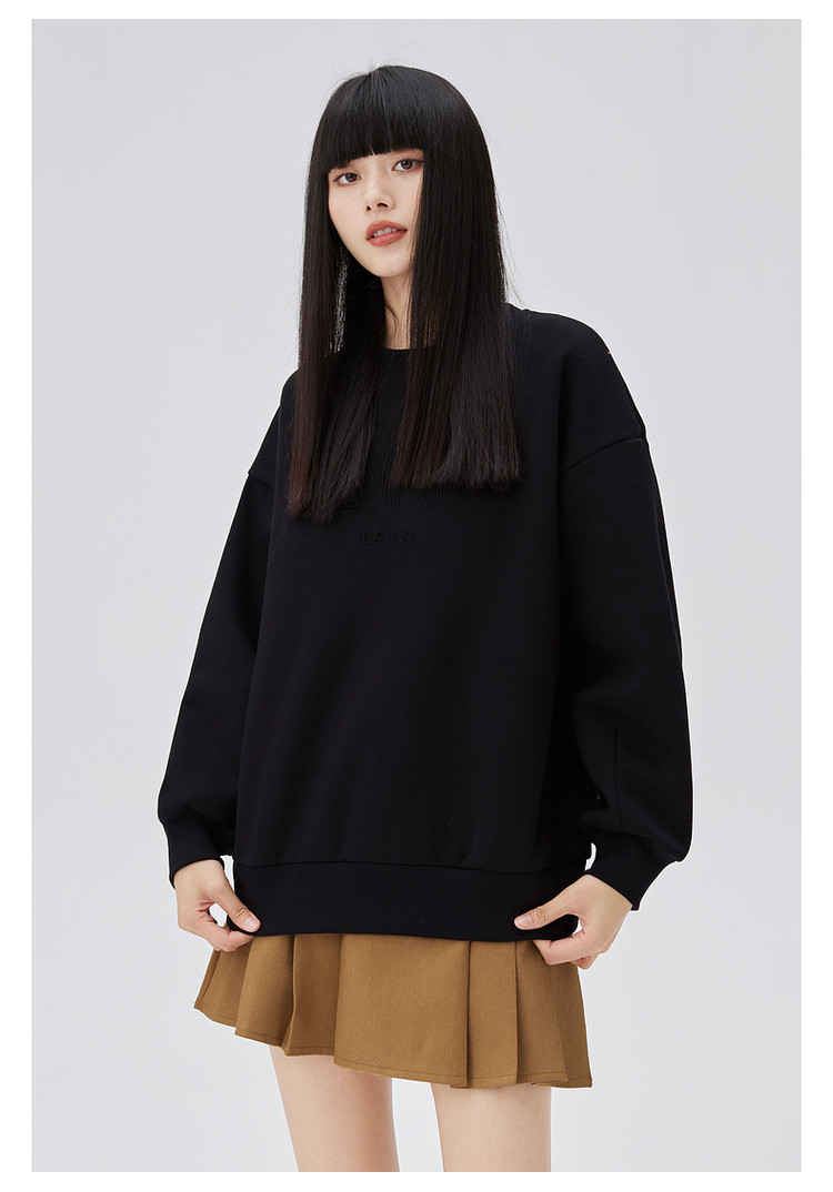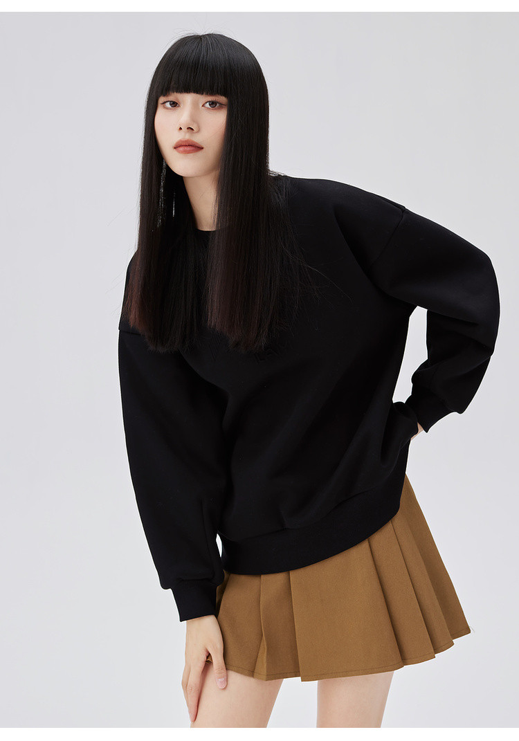 时尚休闲落肩袖宽松卫衣女士休闲时百搭国风圆领长袖套头卫衣女 352726