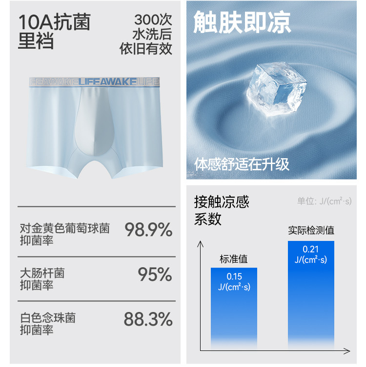 商品名称:【10A抑菌 凉感冰丝】3条装男士平角内裤夏季薄款四角短裤衩 307994