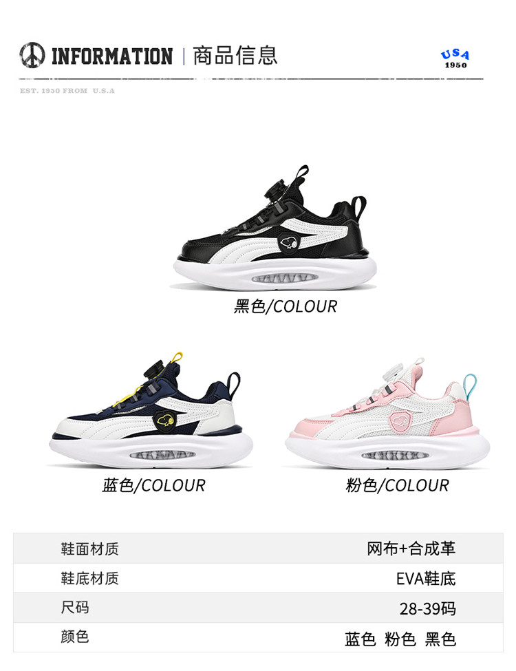 商品名称:【男童休闲运动鞋】儿童春秋季旋转扣跑步鞋舒适轻便网鞋男女童鞋 520413