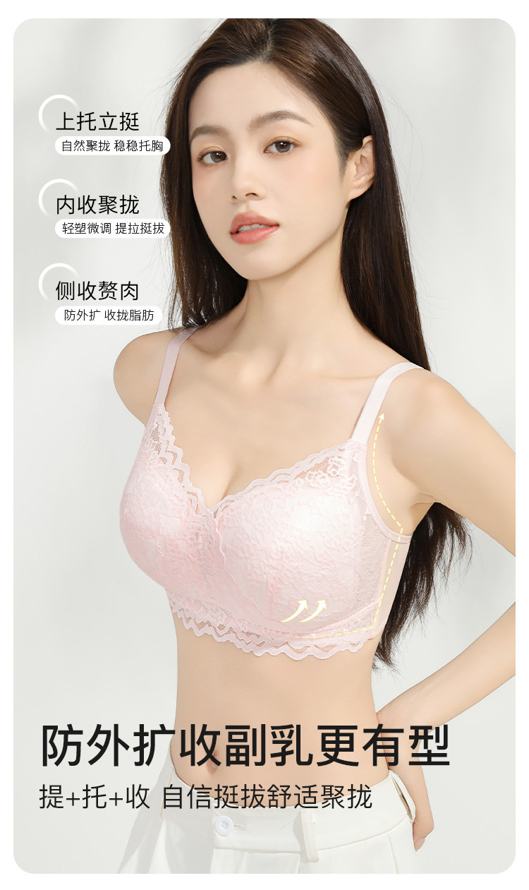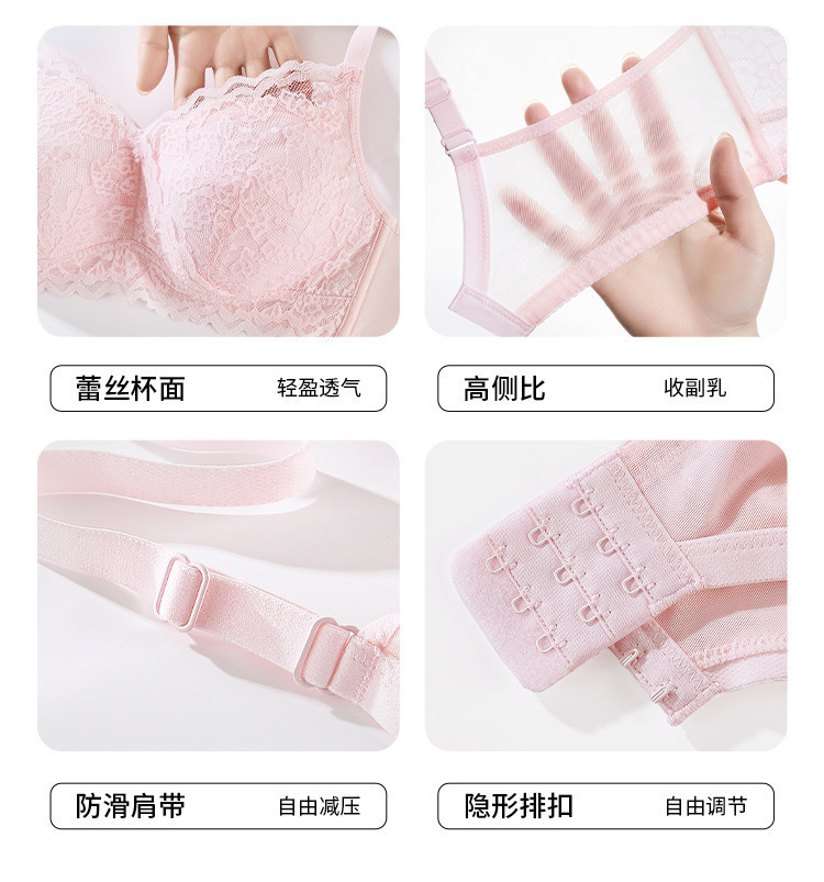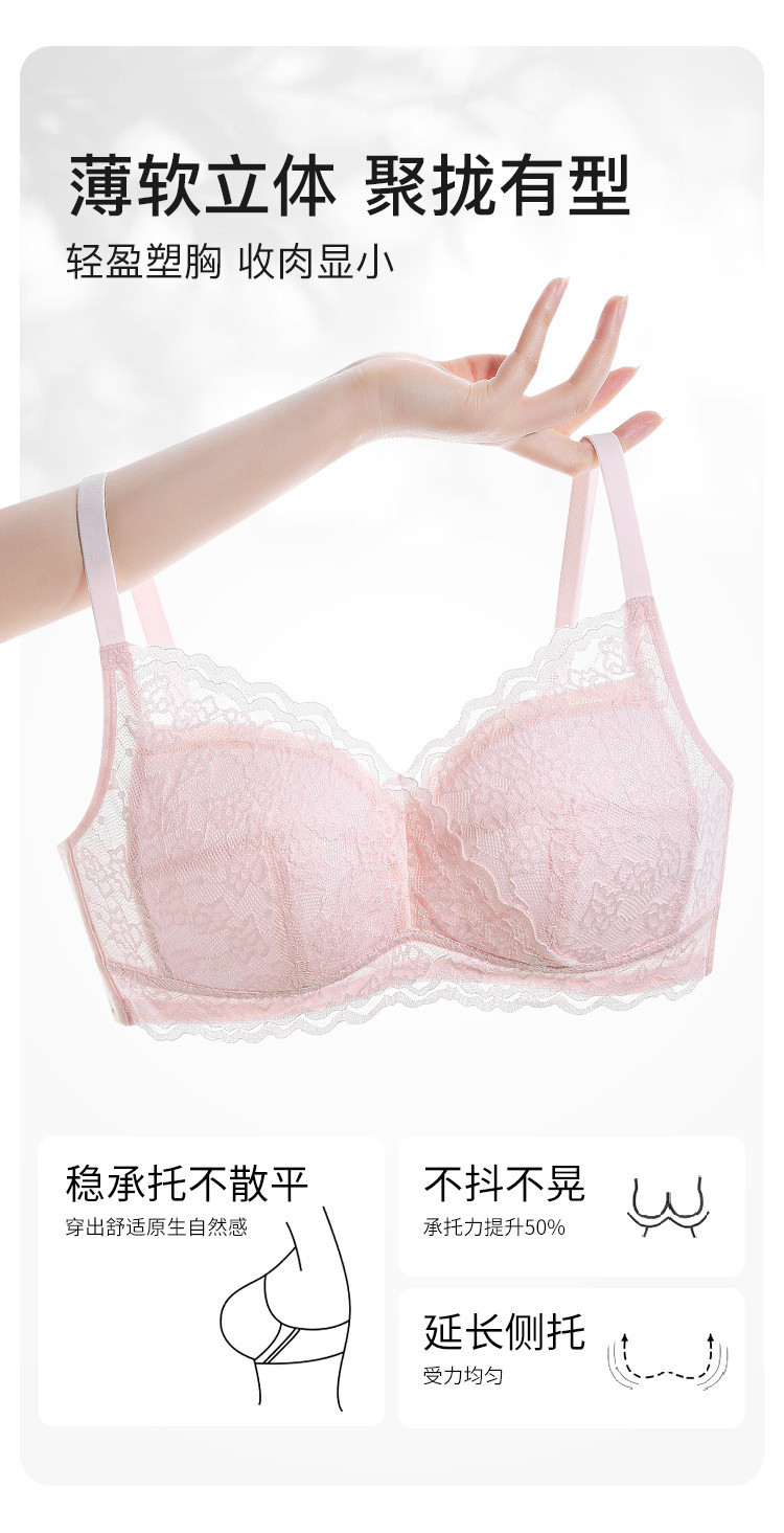 商品名称:【纯棉里杯】内衣女聚拢法式蕾丝花瓣杯防下垂收副乳美背文胸罩女 785419