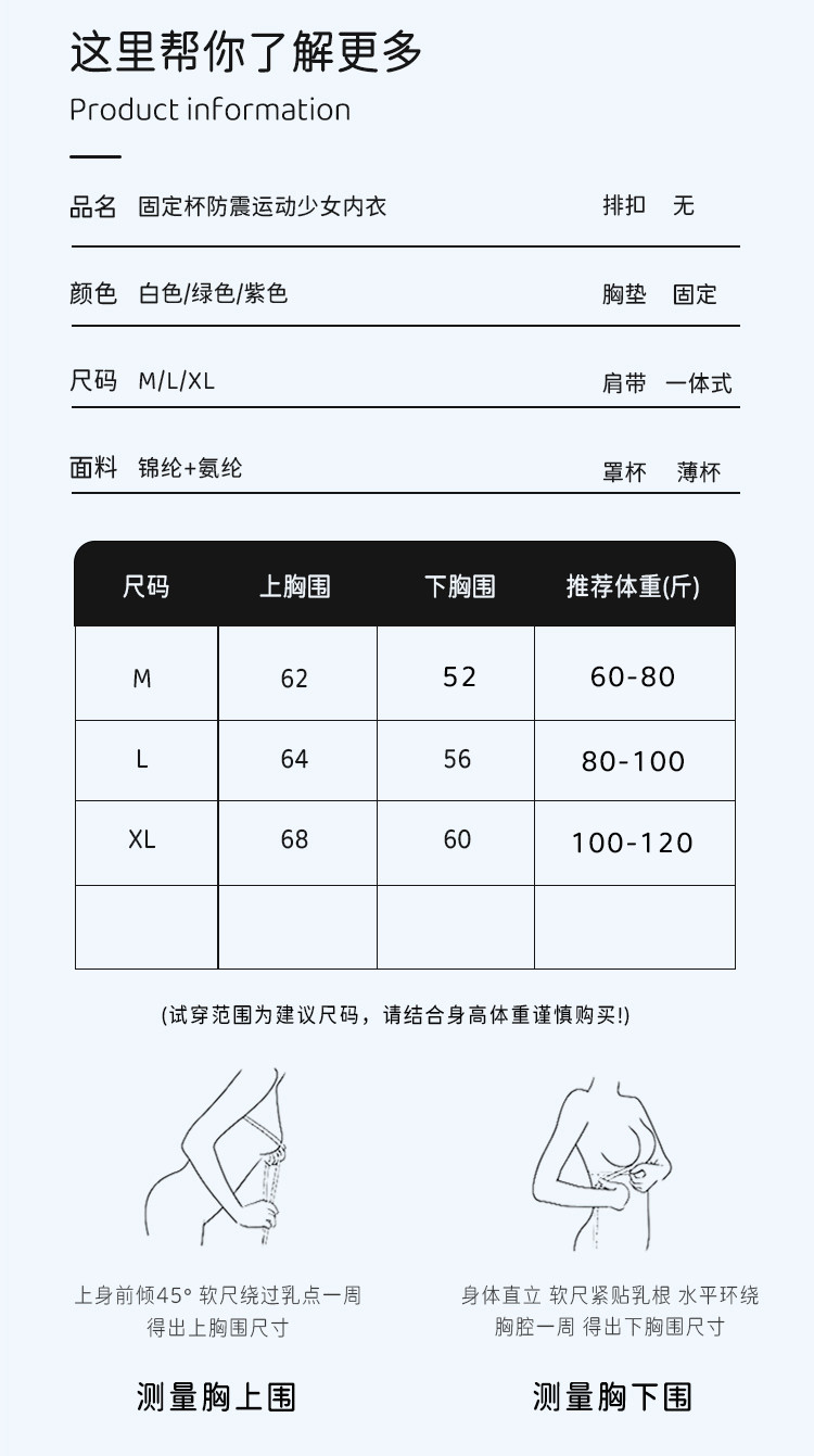 商品名称:【超薄无痕贴肤】提拉矫姿固定杯防震运动初中生少女文胸女童内衣 558686