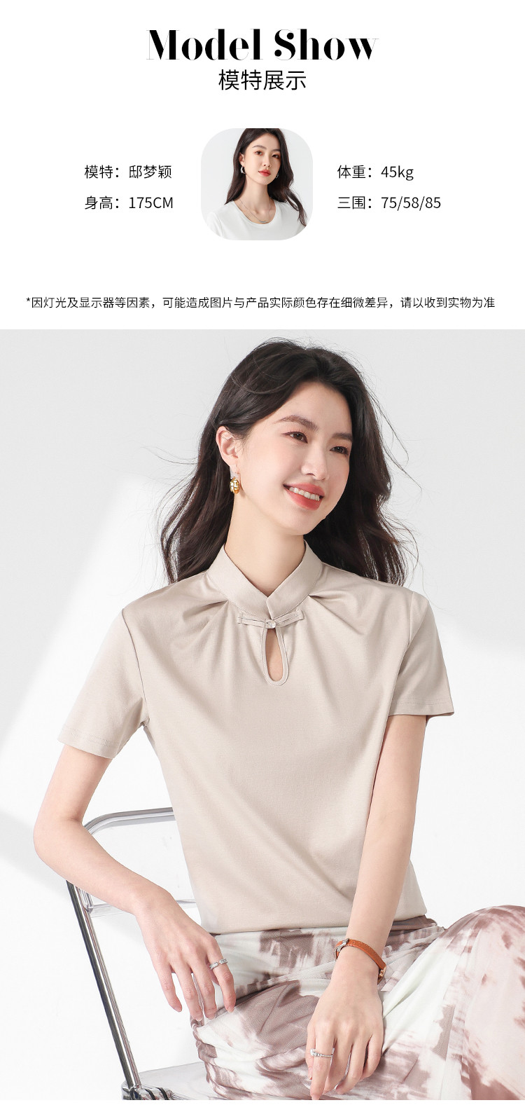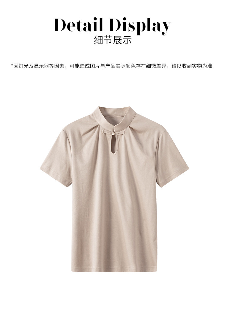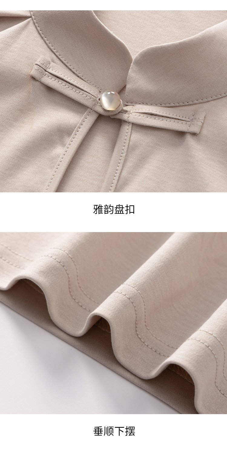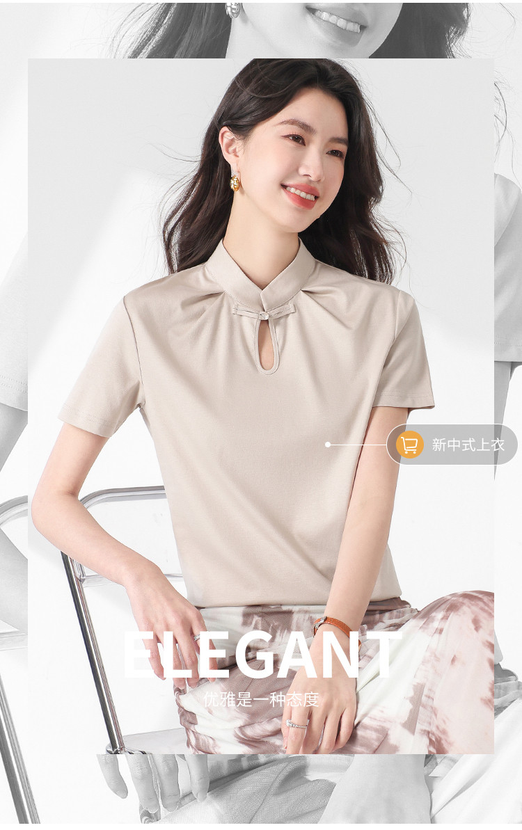 商品名称:【新中式】旗袍领纯色短袖T恤含桑蚕丝上衣 306963