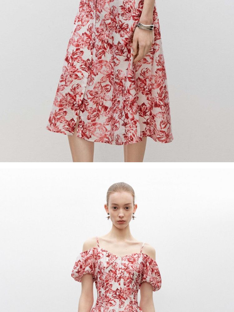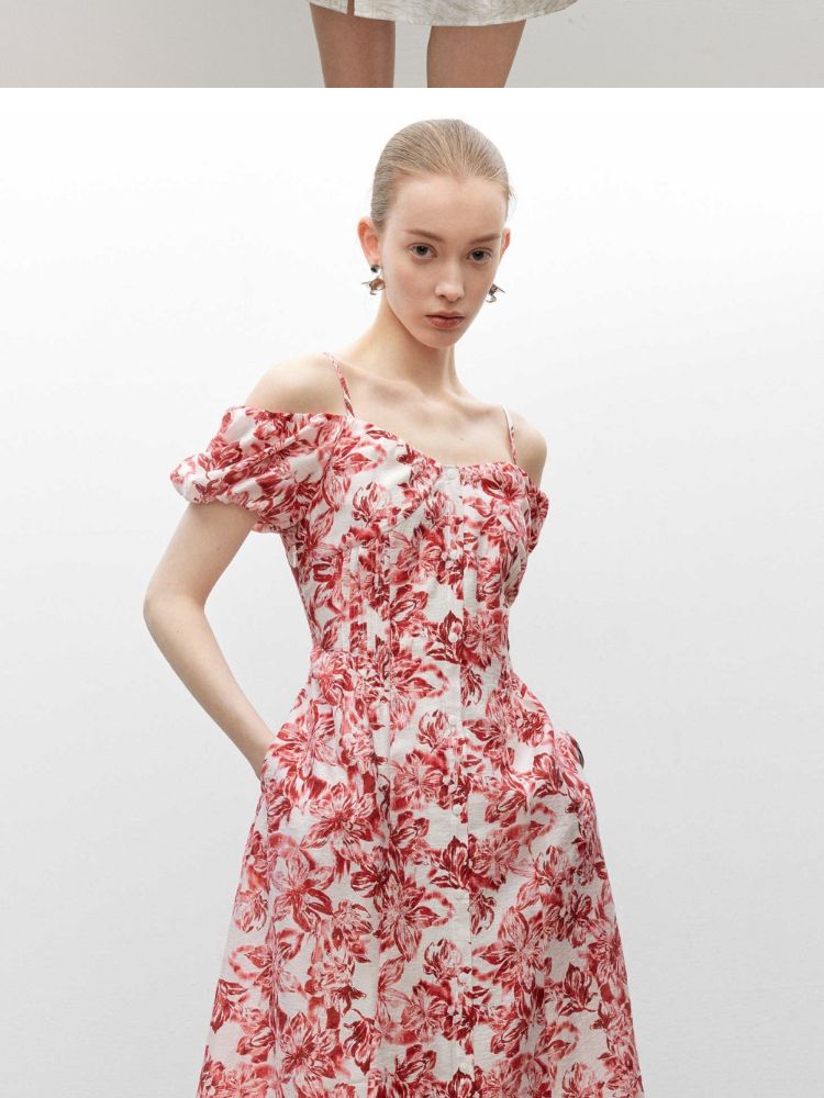 商品名称:【伞摆显瘦飘逸】2025夏季甜美印花A字中长裙吊带连衣裙女 232666