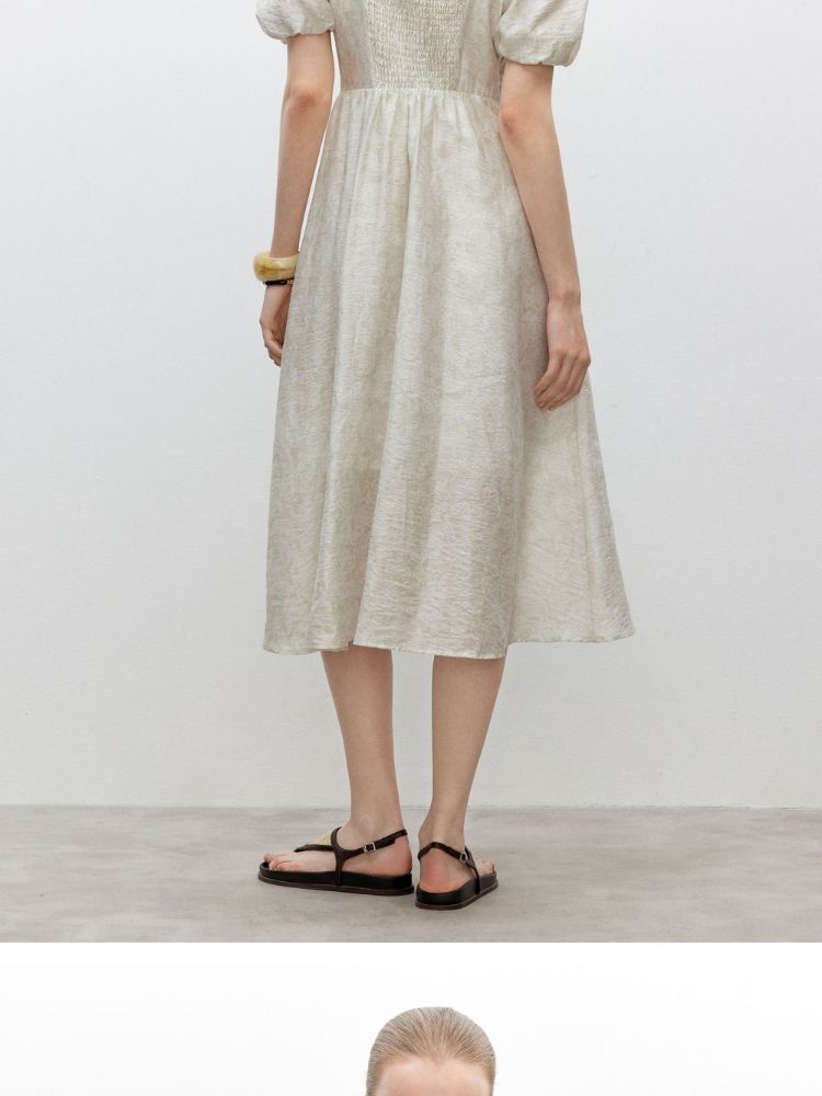 【轻奢度假】夏圆领桑蚕丝调节腰无袖抽绳印花复古连衣裙 620097
