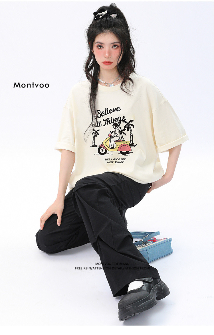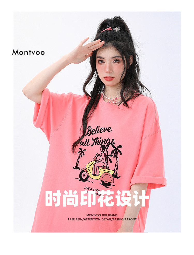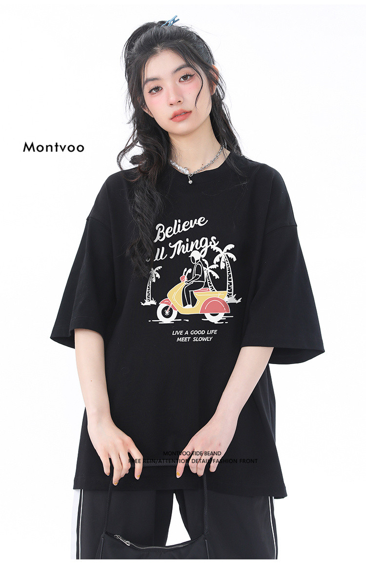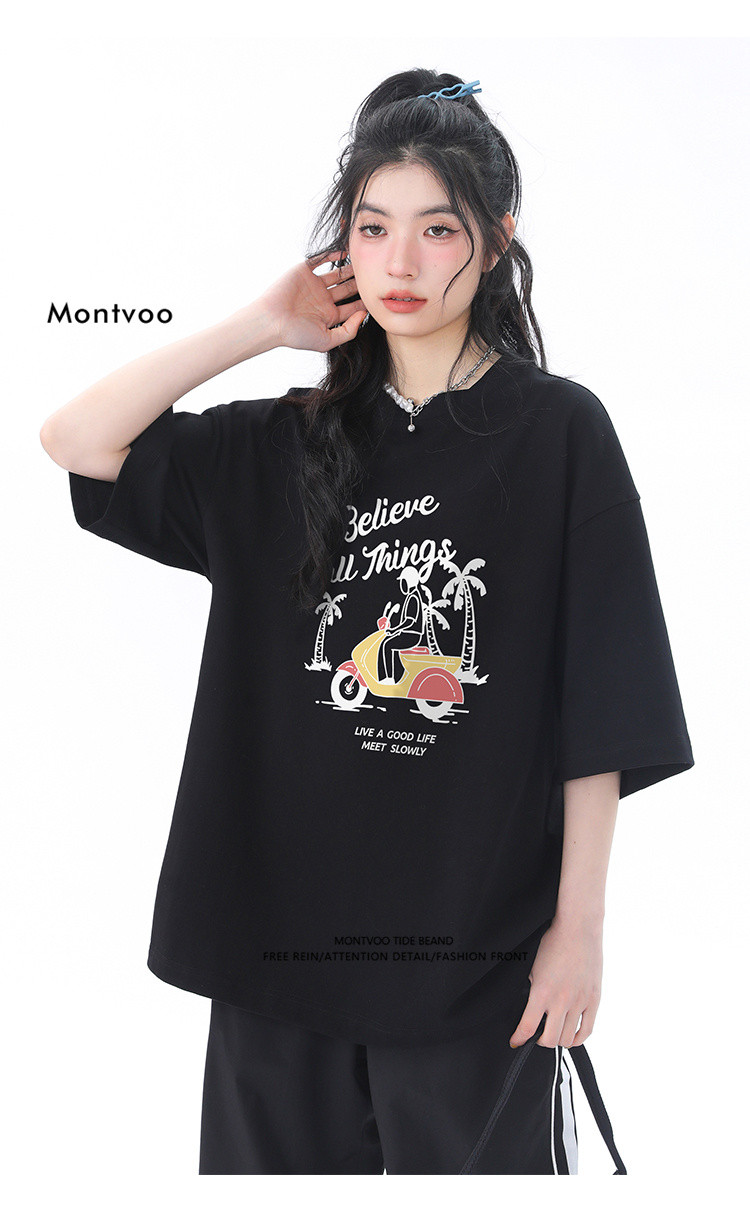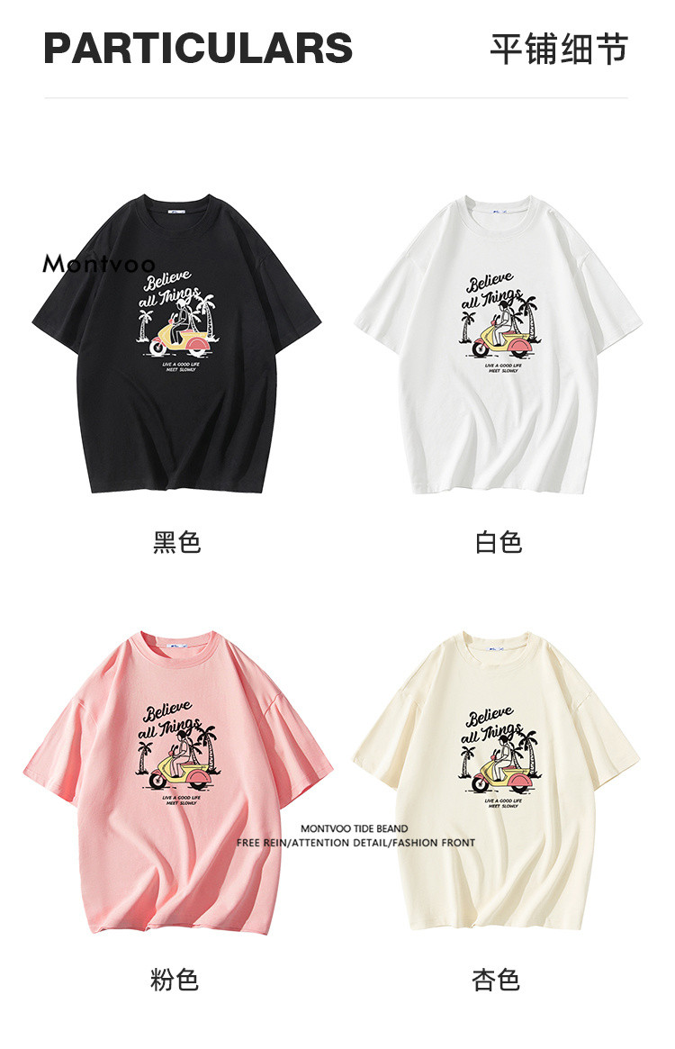 男式短袖t恤日系潮牌宽松百搭情侣半袖潮流帅气透气纯棉运动上衣 502931