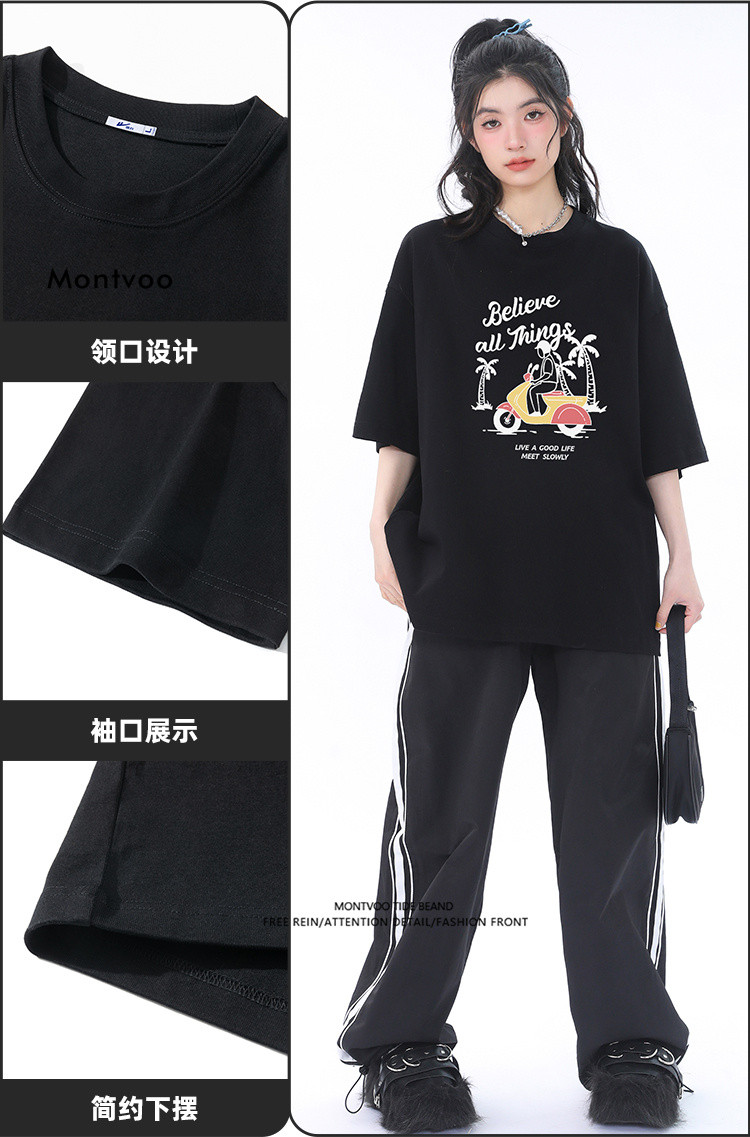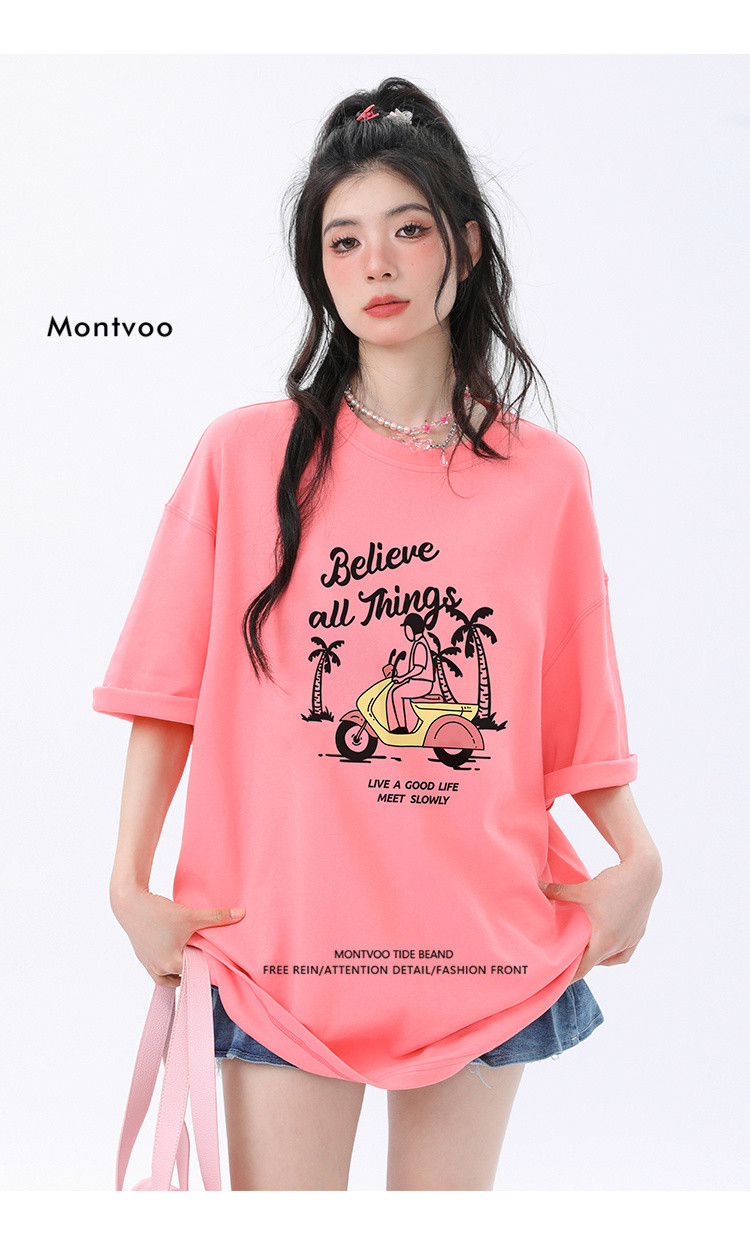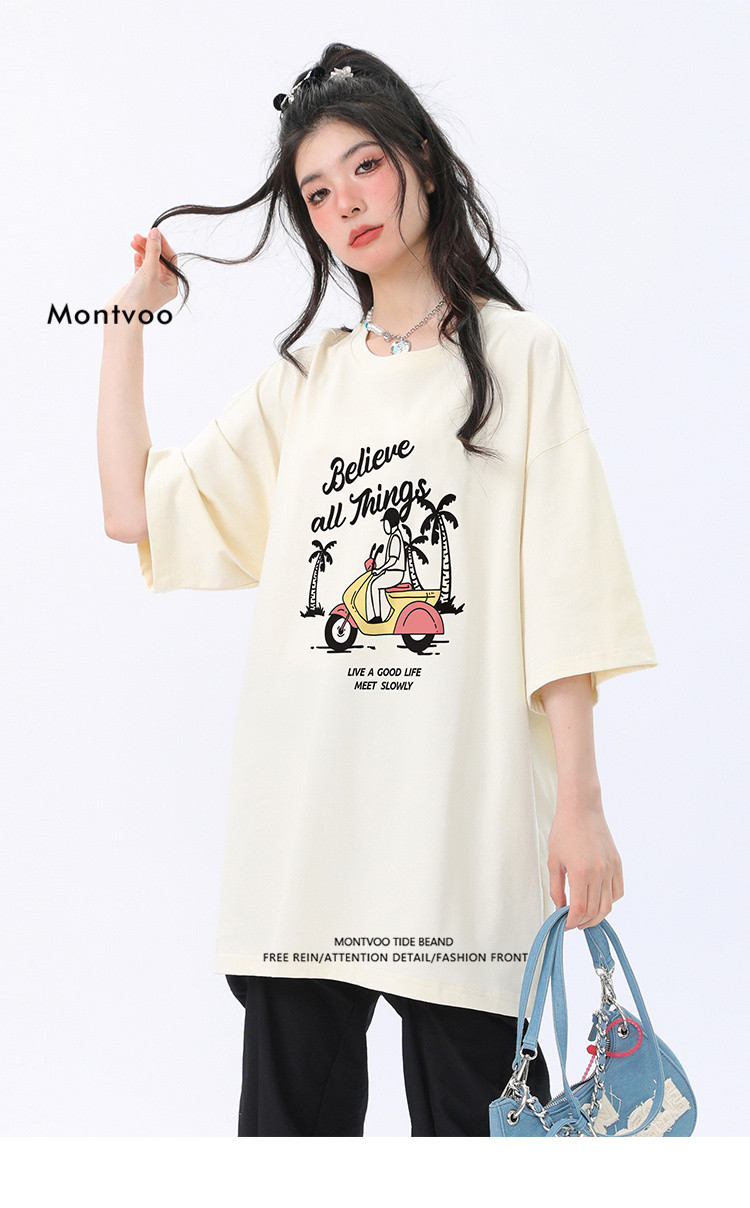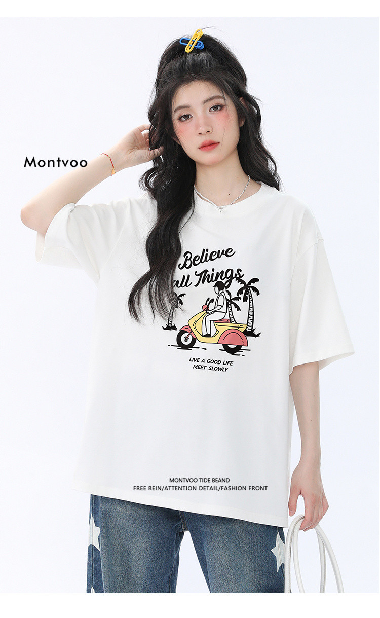 男式短袖t恤日系潮牌宽松百搭情侣半袖潮流帅气透气纯棉运动上衣 502931