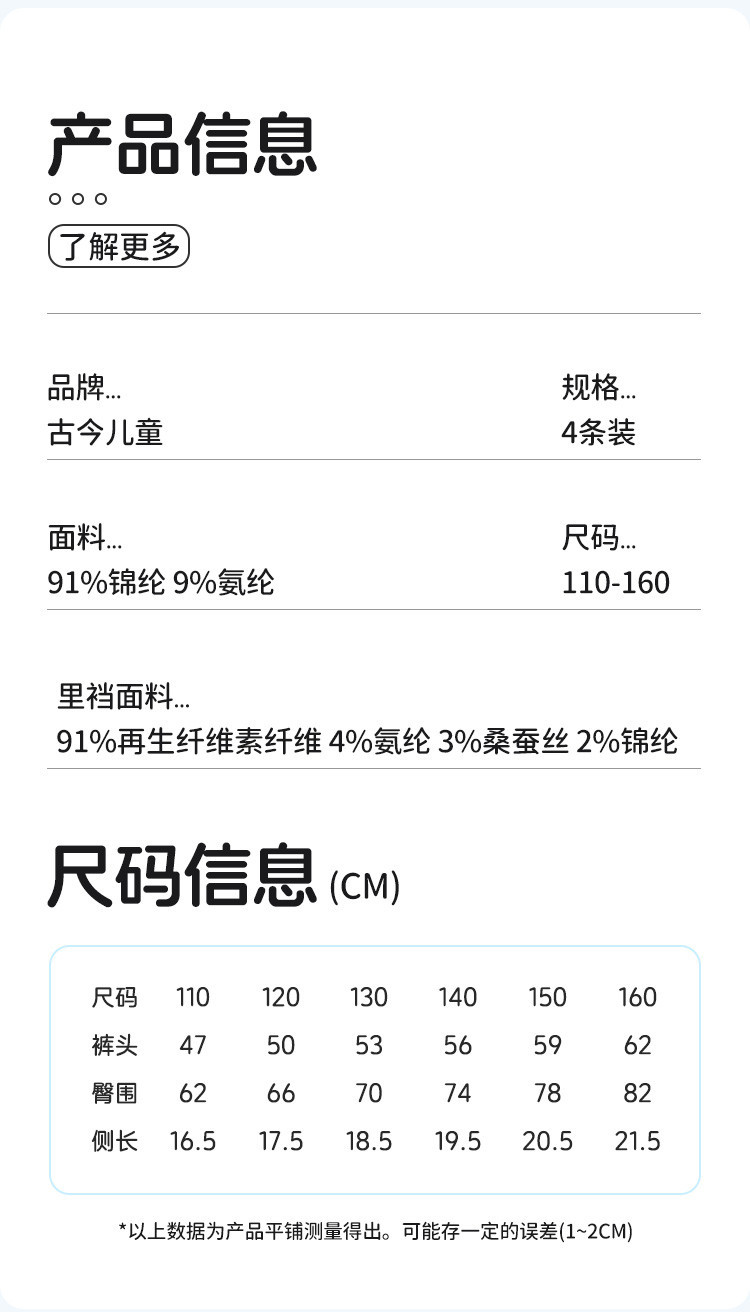 商品名称:【10A级含桑蚕丝抑菌底裆】女童内裤冰丝儿童内裤平角裤中大童 438219