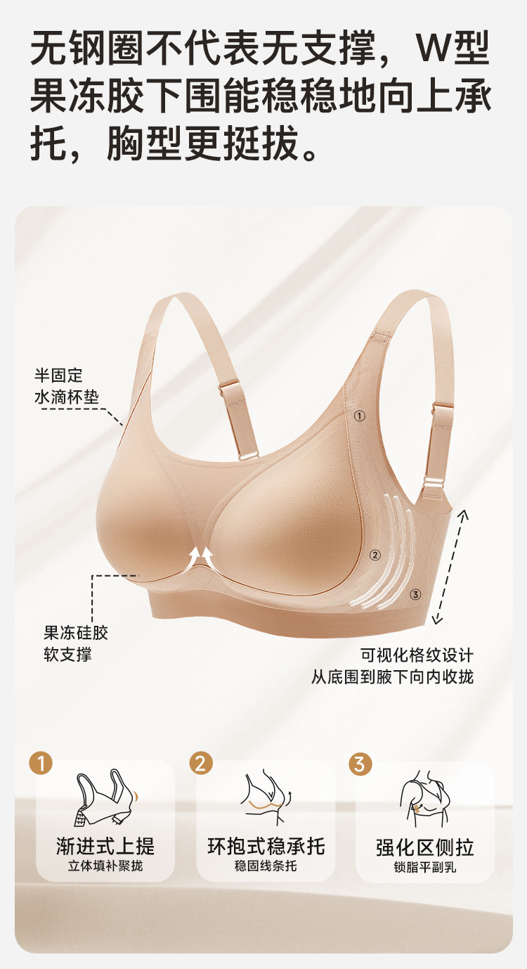 商品名称:【双重提拉】果冻条软支撑内衣聚拢防下垂收副乳光面无钢圈胸罩女 819275