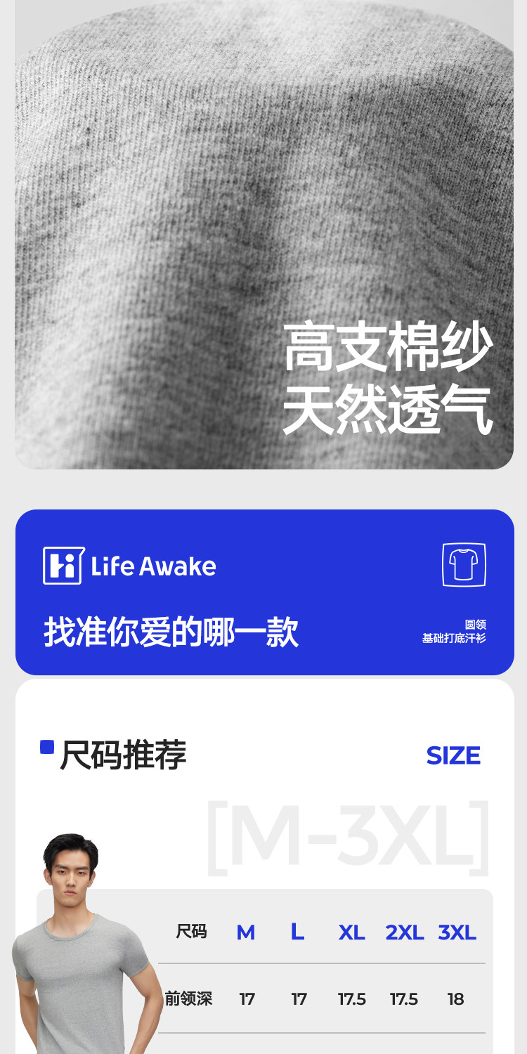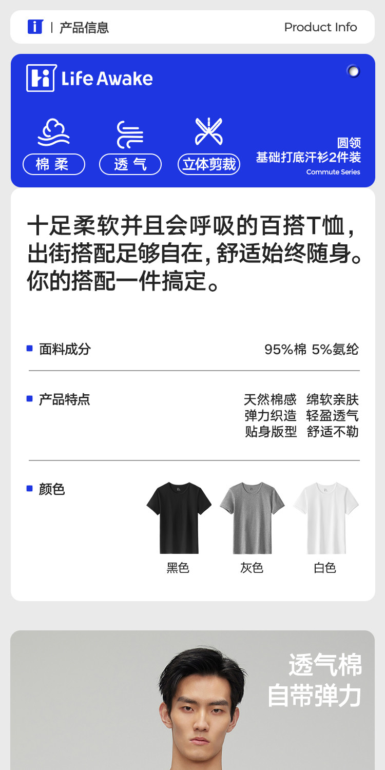 商品名称:【2件装 95%棉】男士圆领短袖T恤青少年休闲体恤打底衫汗衫 284954