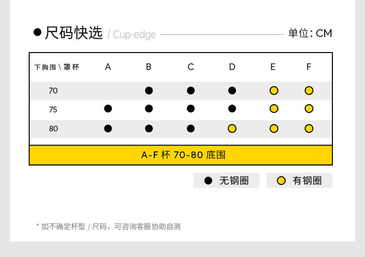 | 尺码 | 下胸围(cm) | 上胸围(cm) |