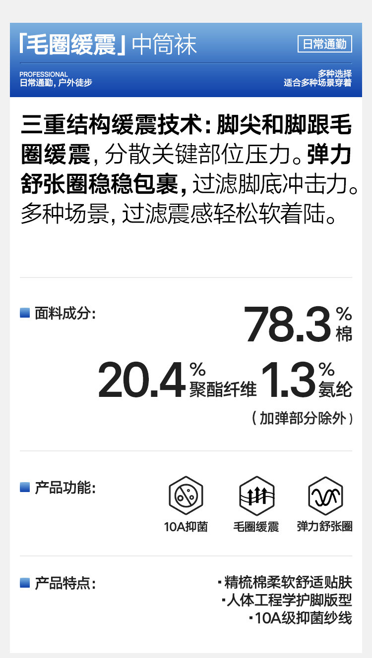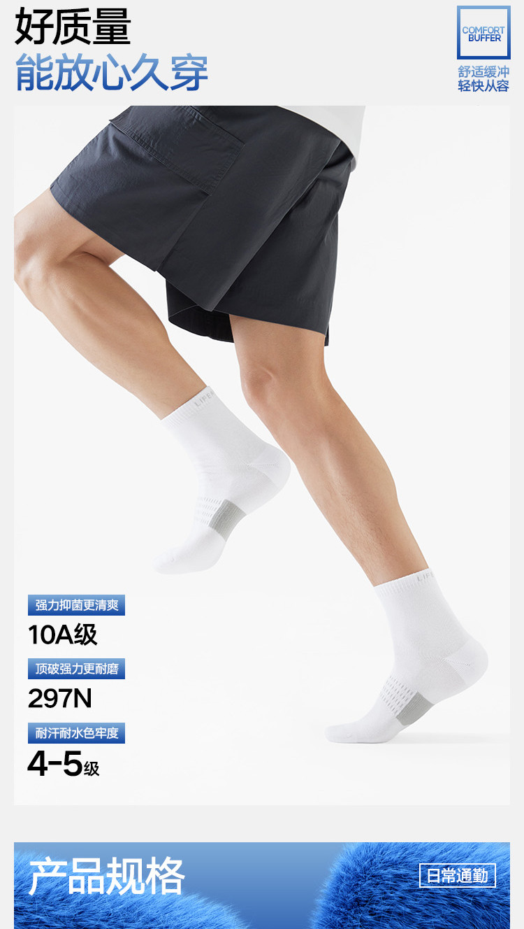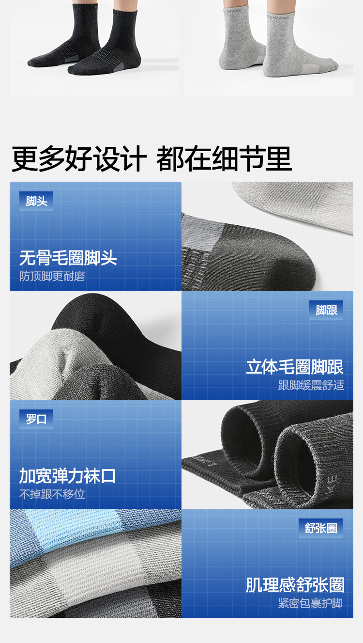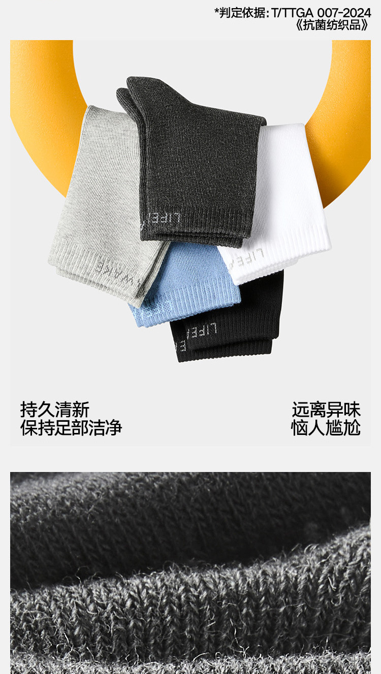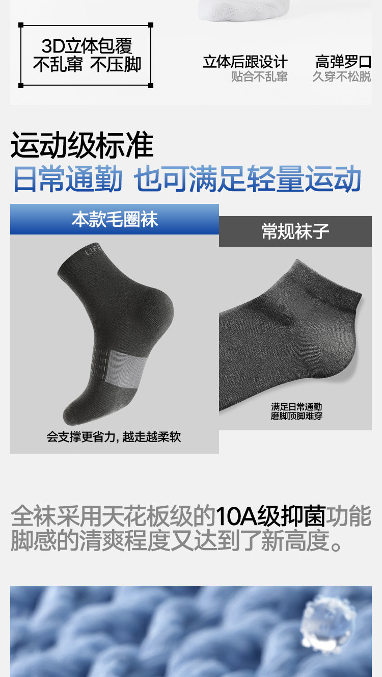 商品名称:【10A抗菌】5双装男士袜子篮球健身运动羽毛球百搭中筒袜男袜 906074