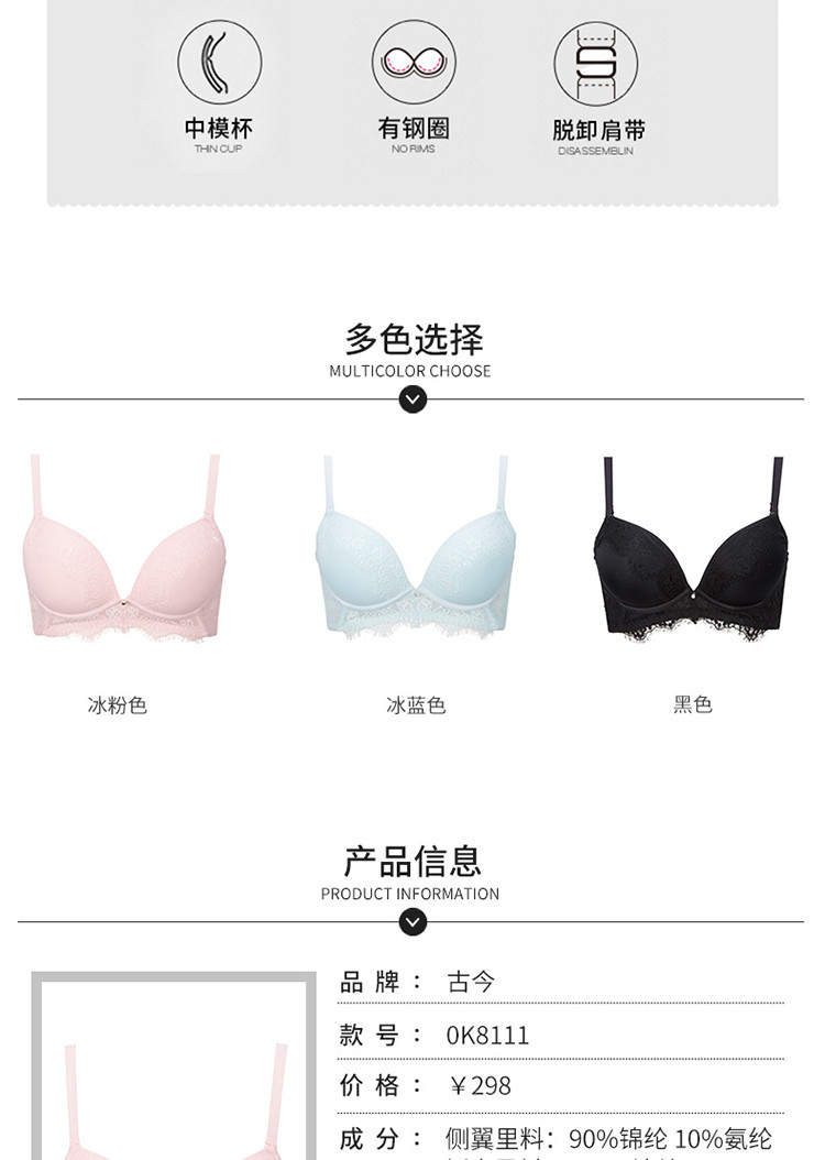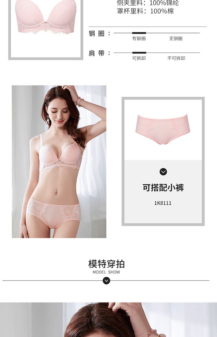 商品名称:【100%纯棉里料】内衣文胸小胸聚拢上托蕾丝文胸罩内衣软钢圈 836875