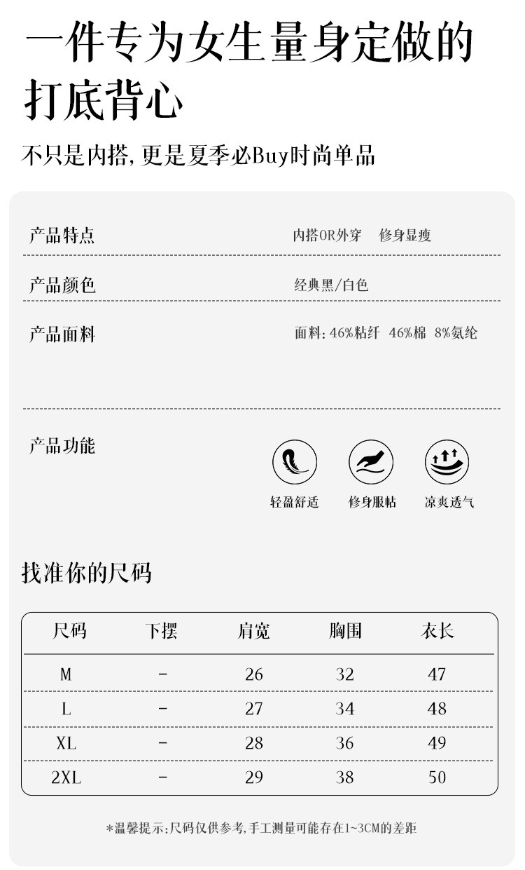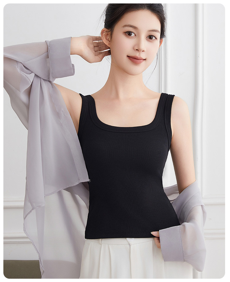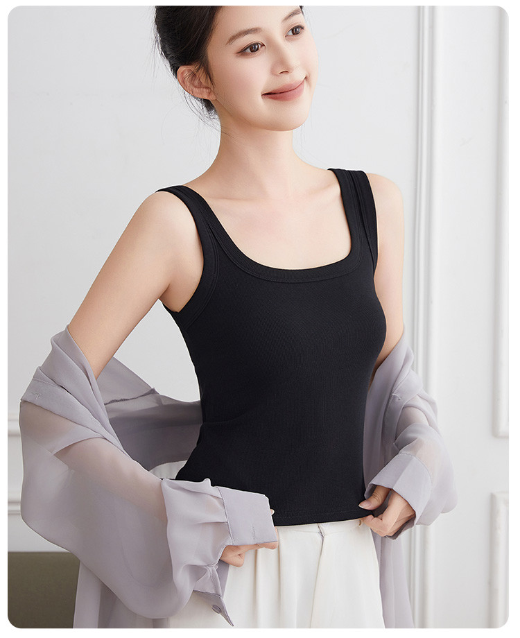 商品名称:【冰丝螺纹】基础百搭方领女士吊带打底背心春夏修身显瘦内搭外穿 721931