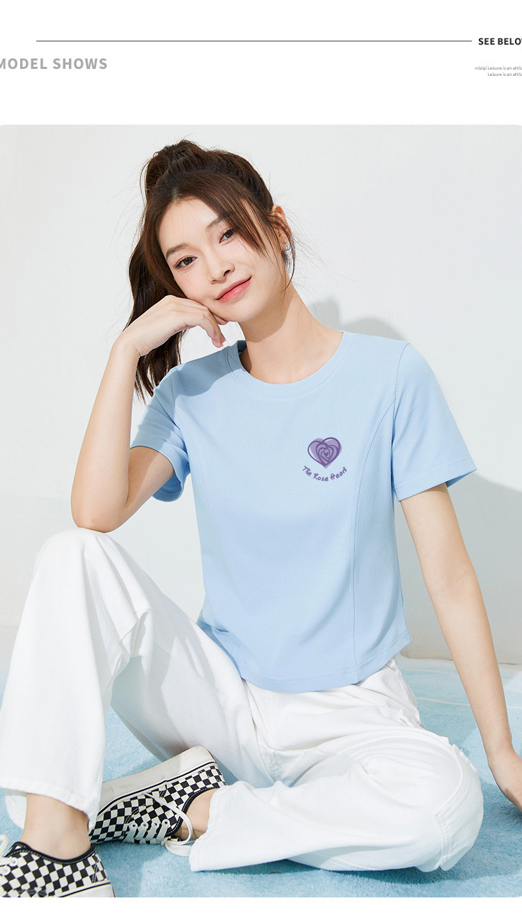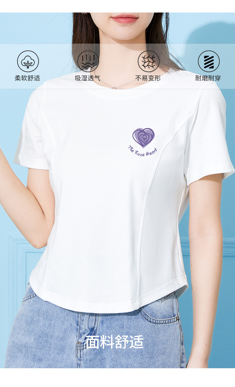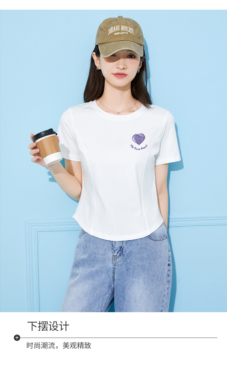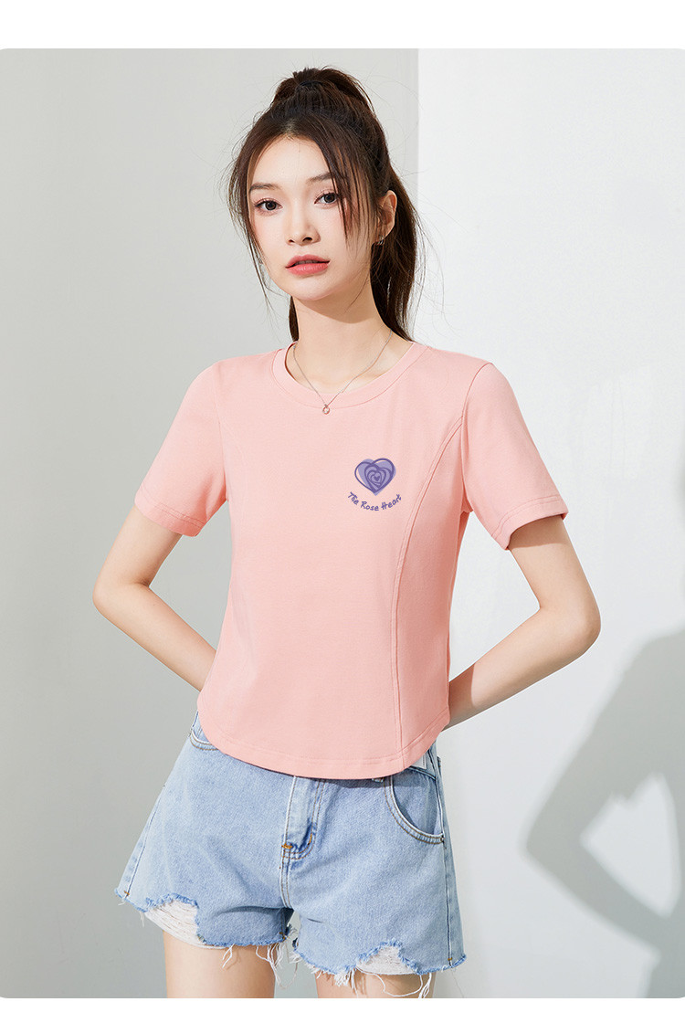 商品名称:米子旗夏季款圆领女式T恤爱心印花修身短袖上衣设计感 125210