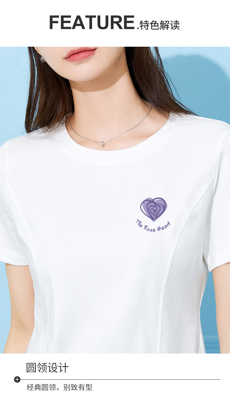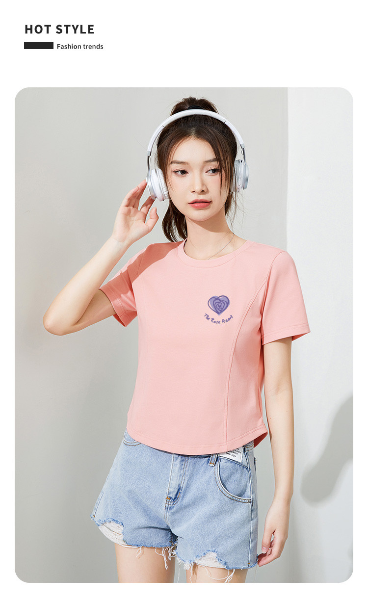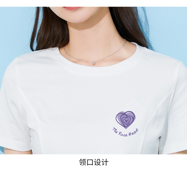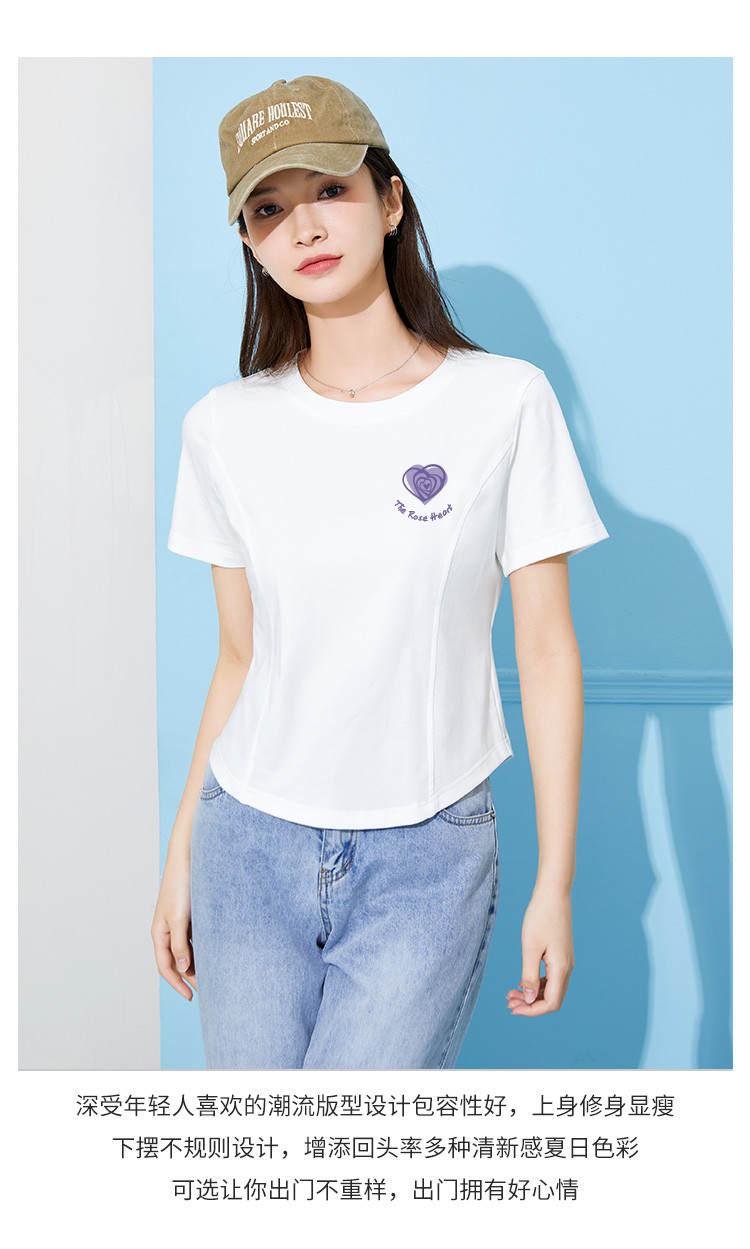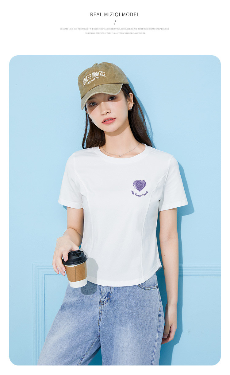 商品名称:米子旗夏季款圆领女式T恤爱心印花修身短袖上衣设计感 125210