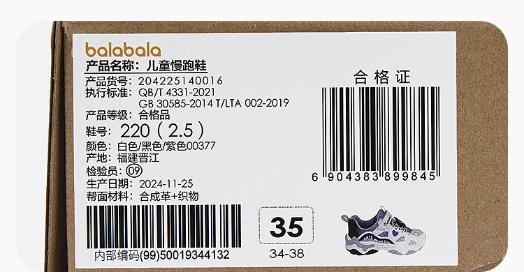 | 33码(脚长20.5/内长21.7) | 33 | 205 | 216.94 |