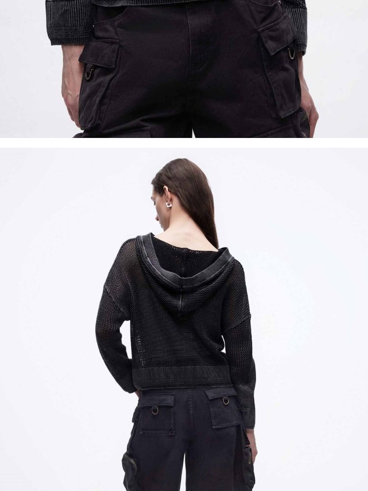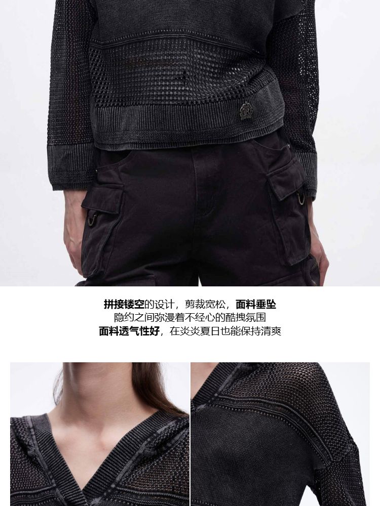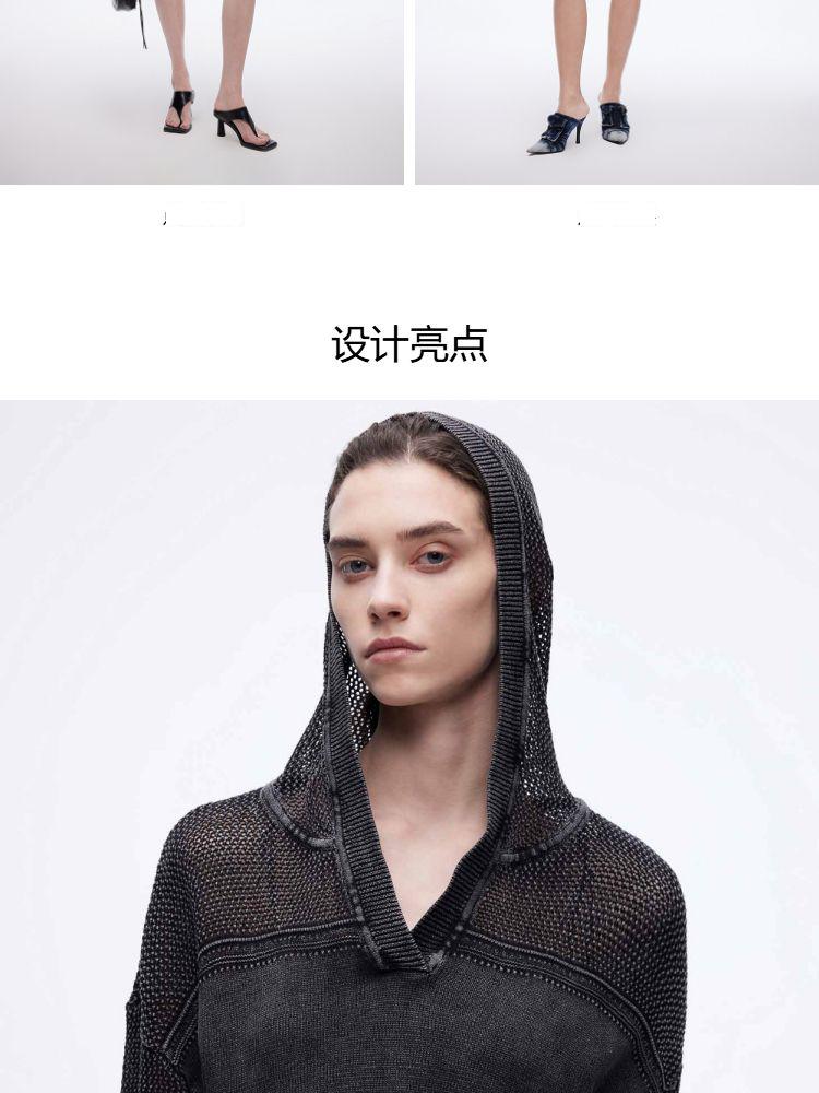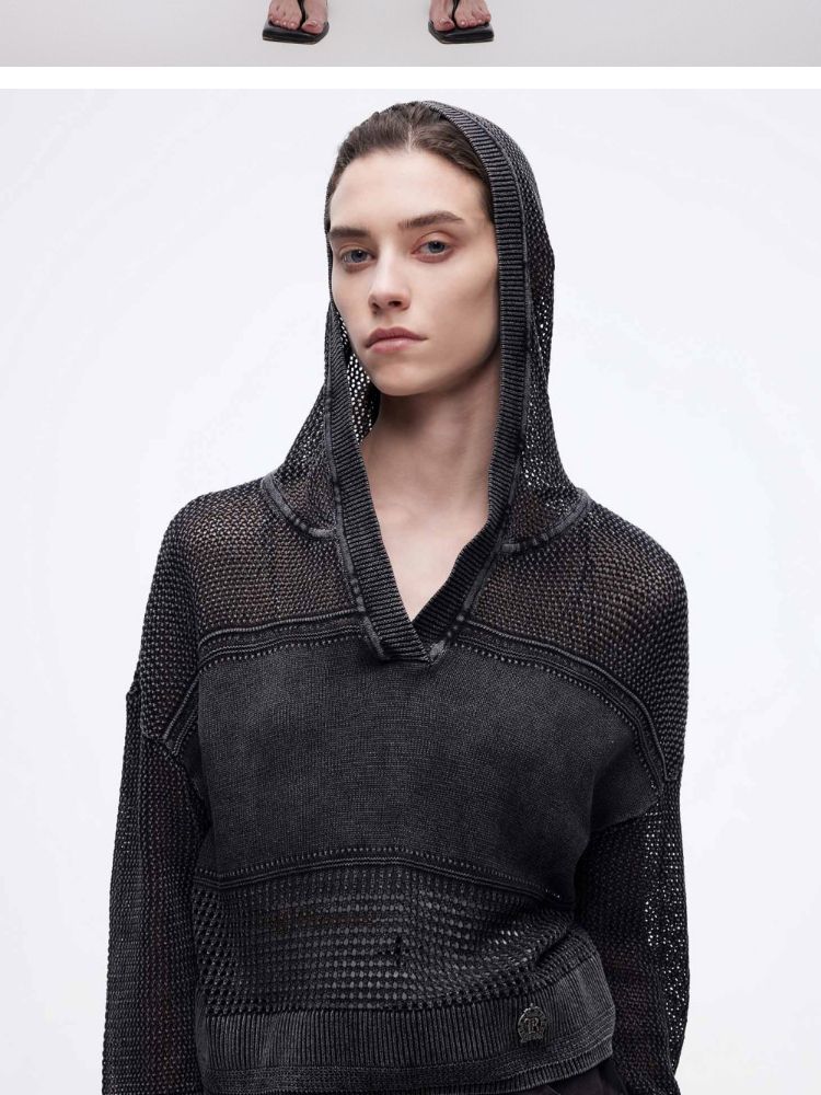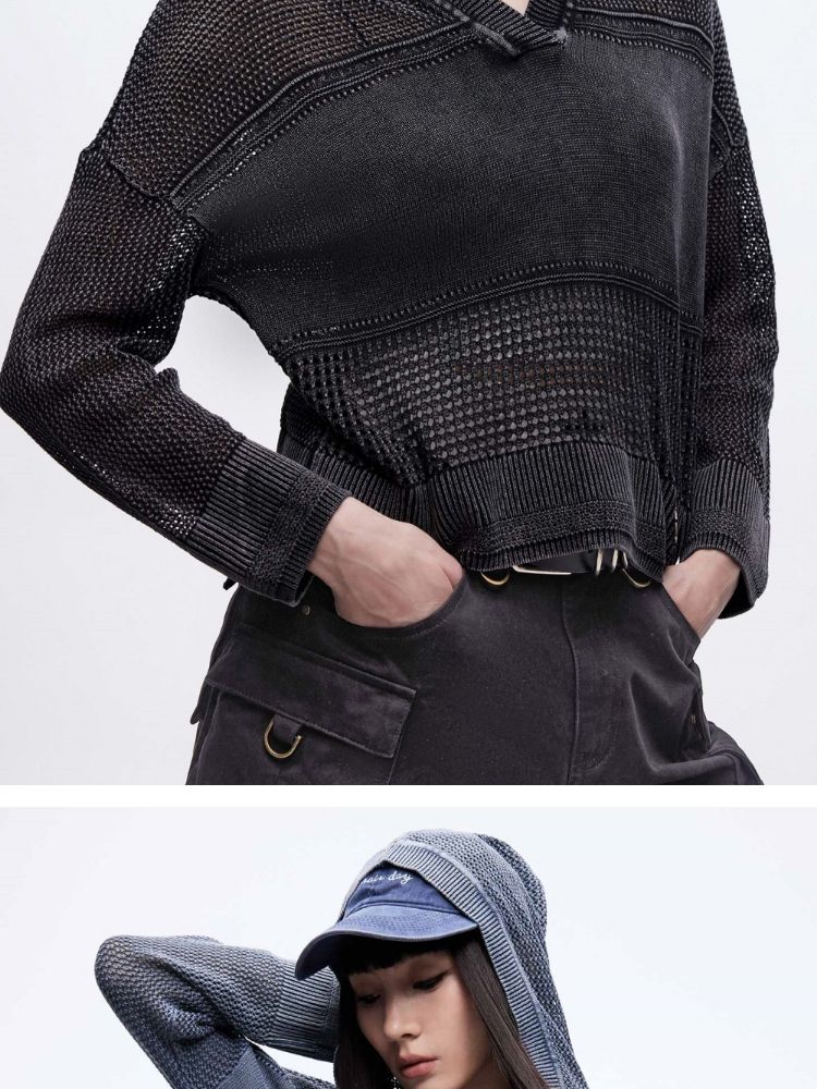 商品名称:【拼接网纱】2025春季休闲百搭宽松连帽针织衫女 936218