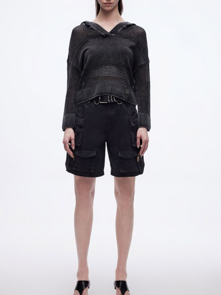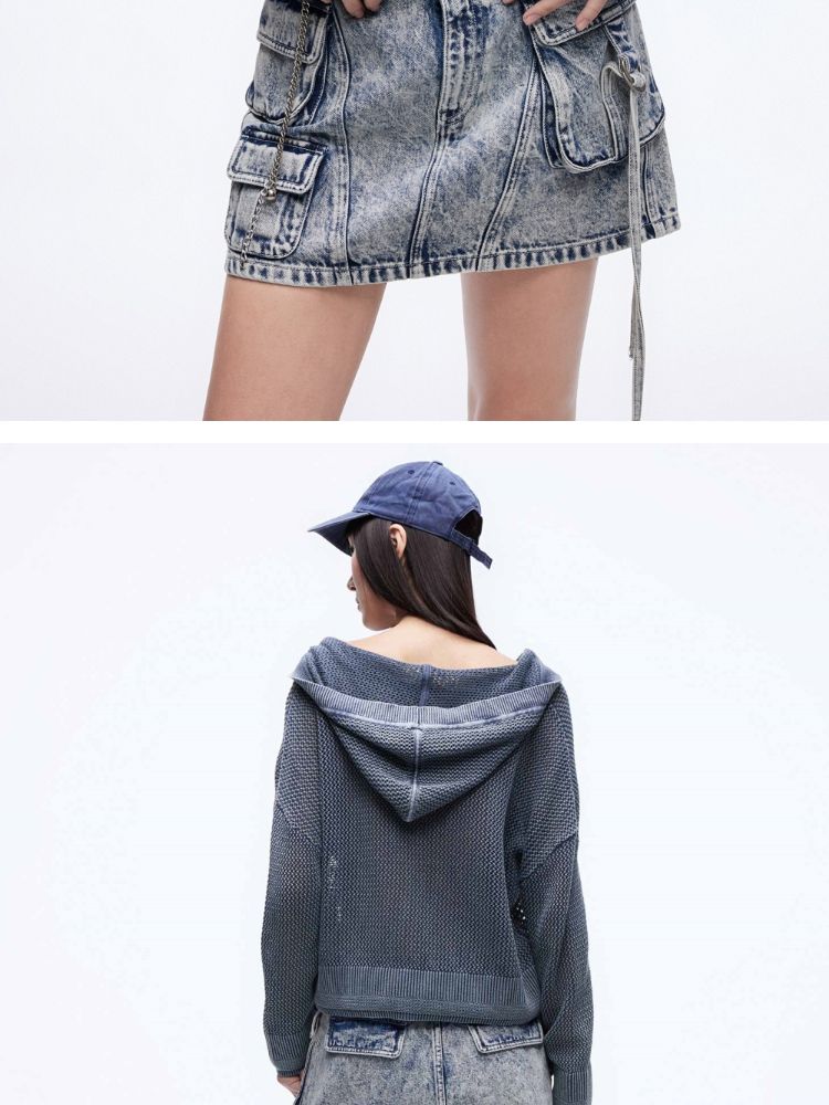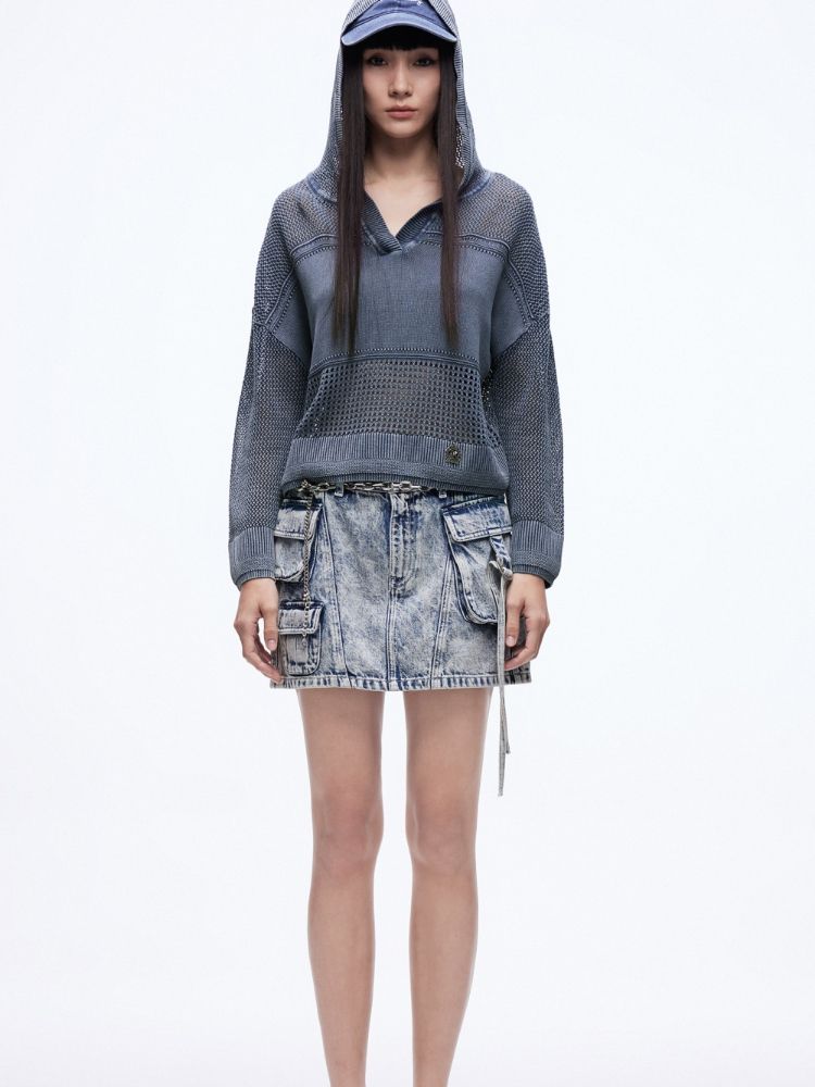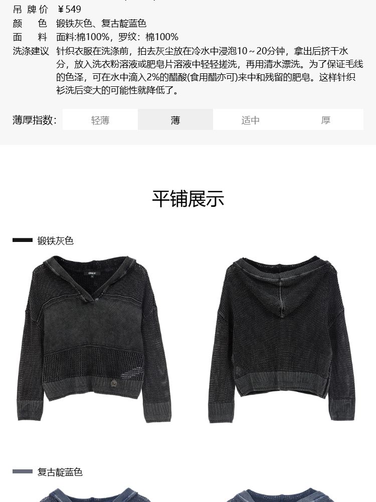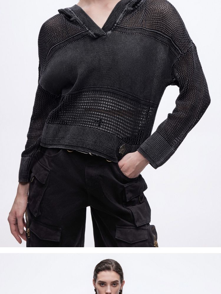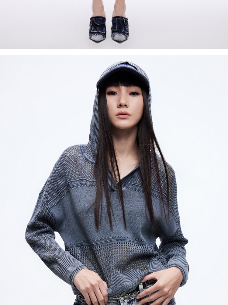 商品名称:【拼接网纱】2025春季休闲百搭宽松连帽针织衫女 936218