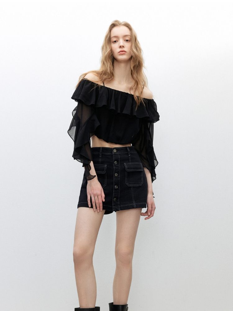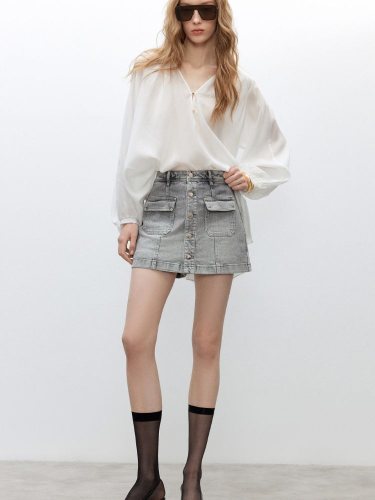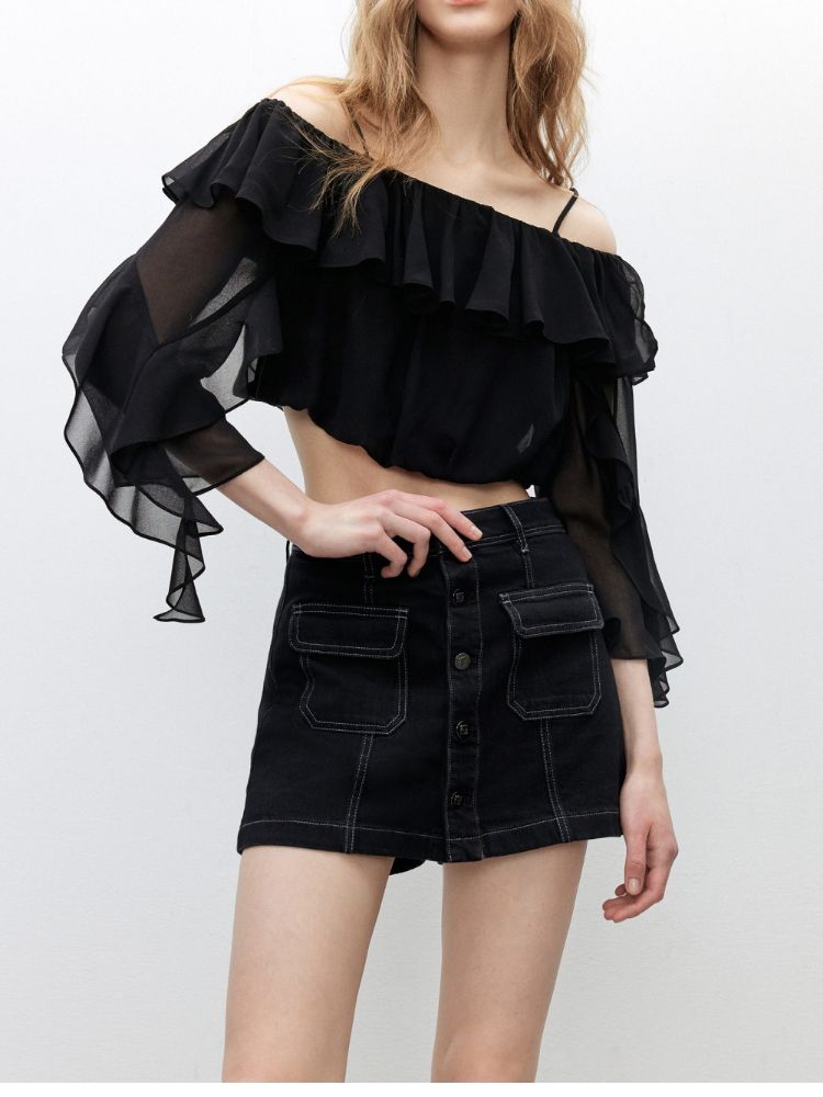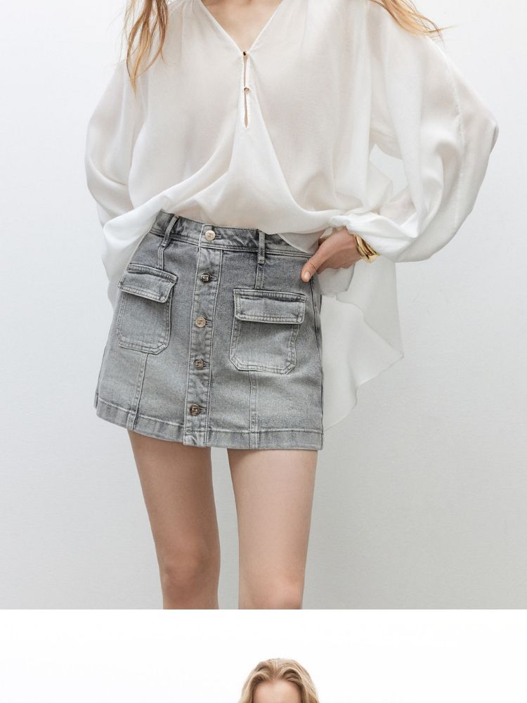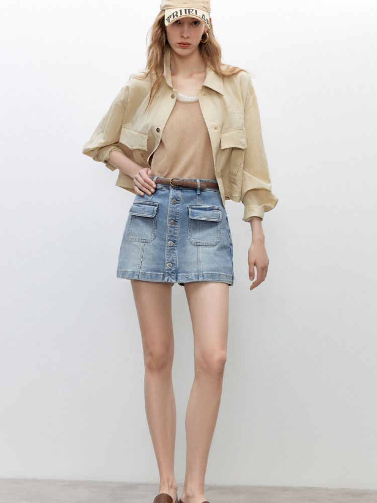 【排扣裙裤】2025夏季复古高腰显瘦A字短裤牛仔裤女 632154