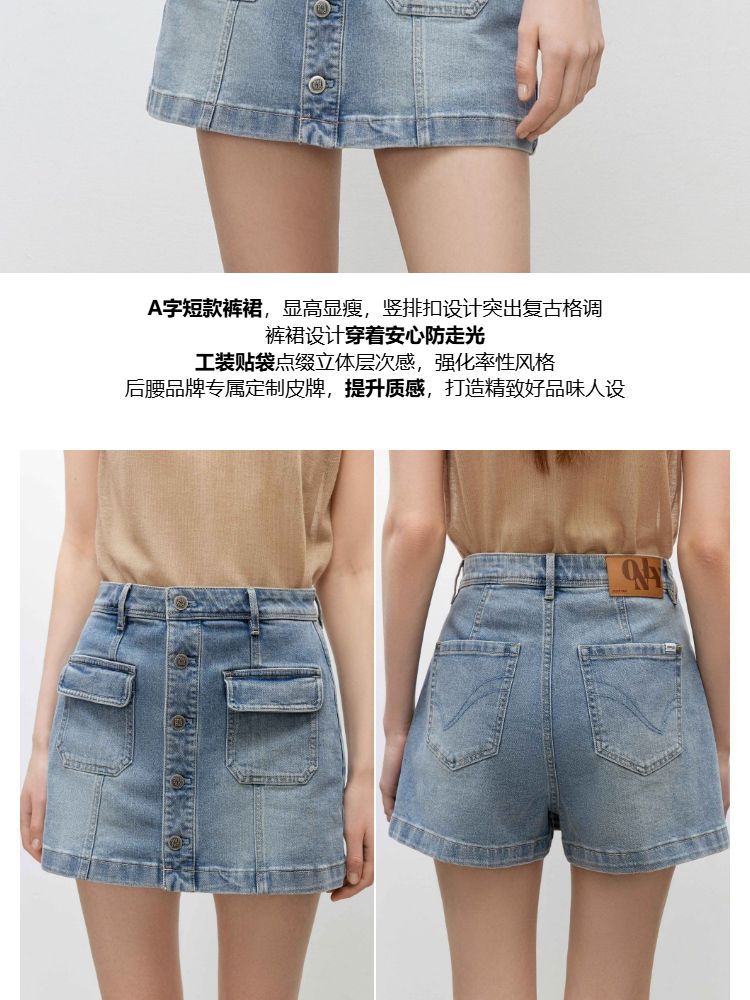 商品名称:【排扣裙裤】2025夏季复古高腰显瘦A字短裤牛仔裤女 632154