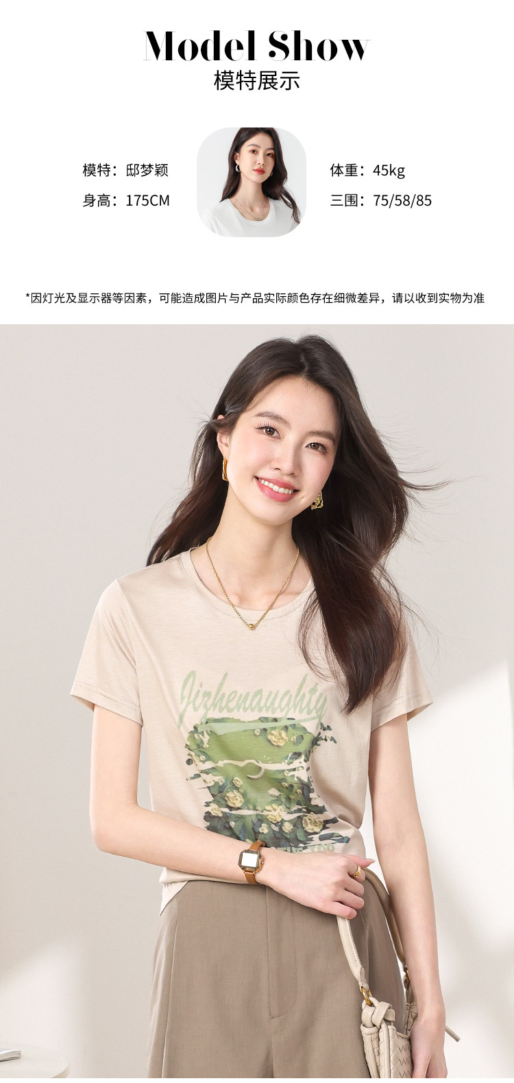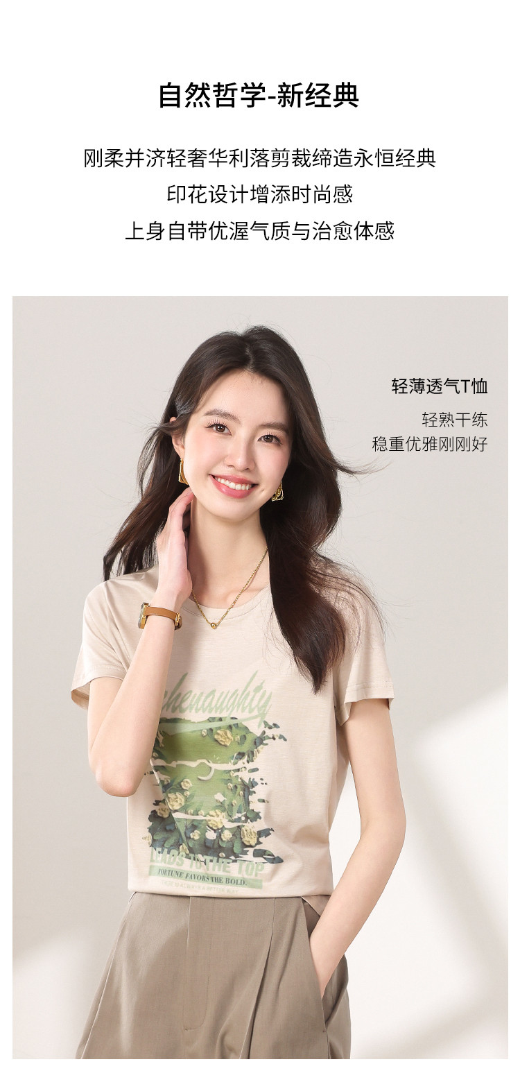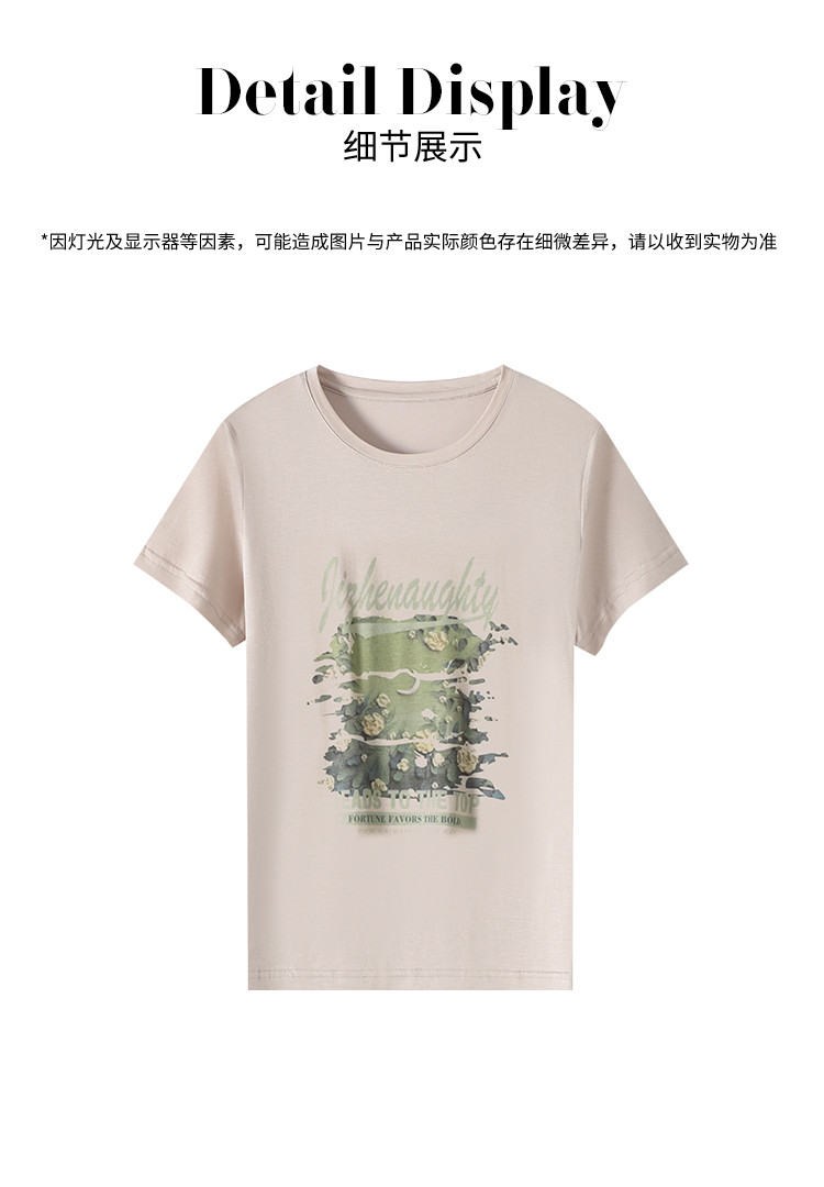 商品名称:【含桑蚕丝】轻薄透气趣味印花圆领短袖T恤打底衫上衣 702611