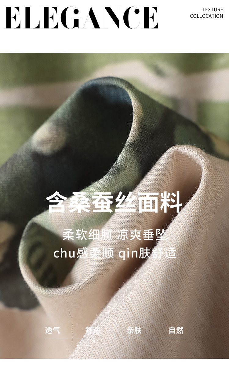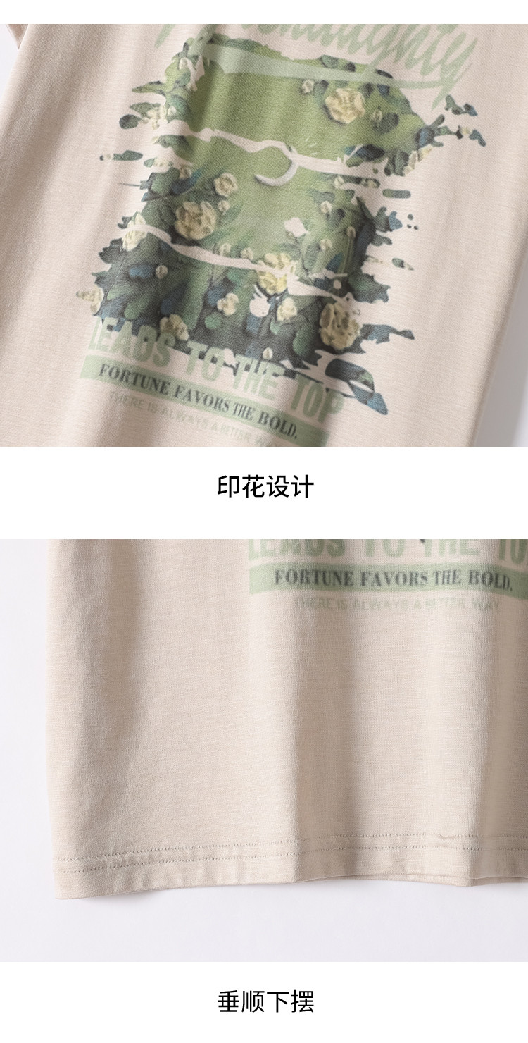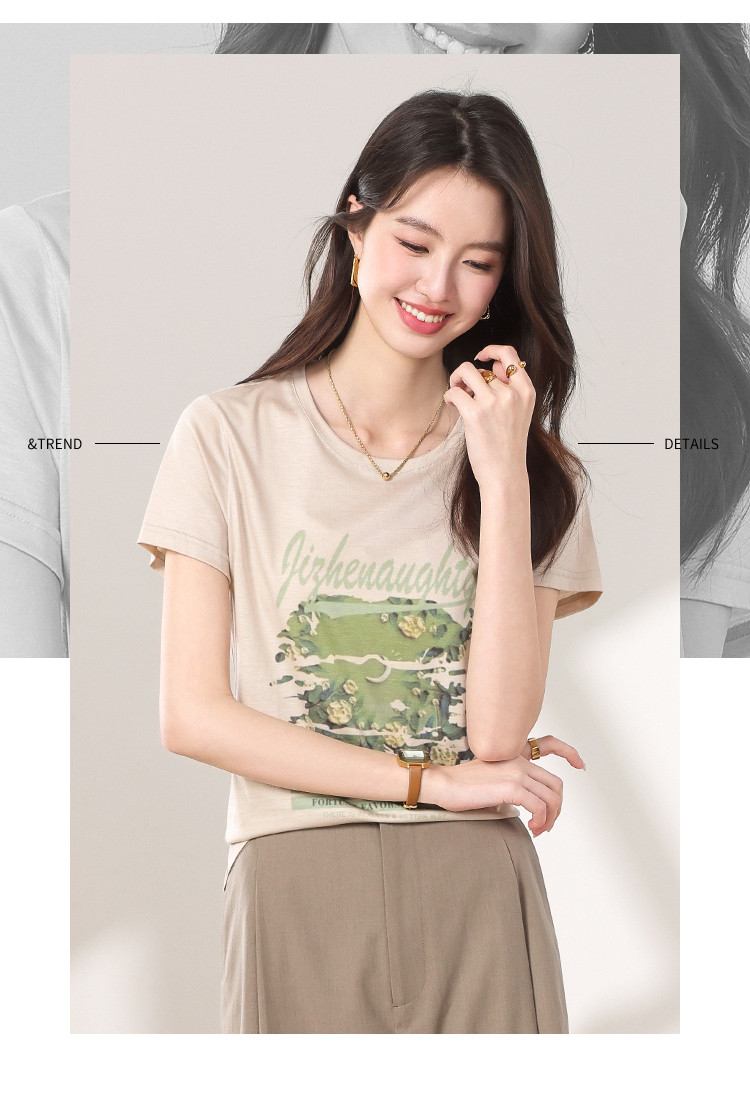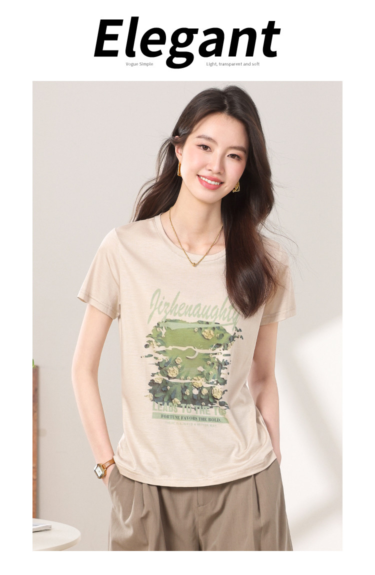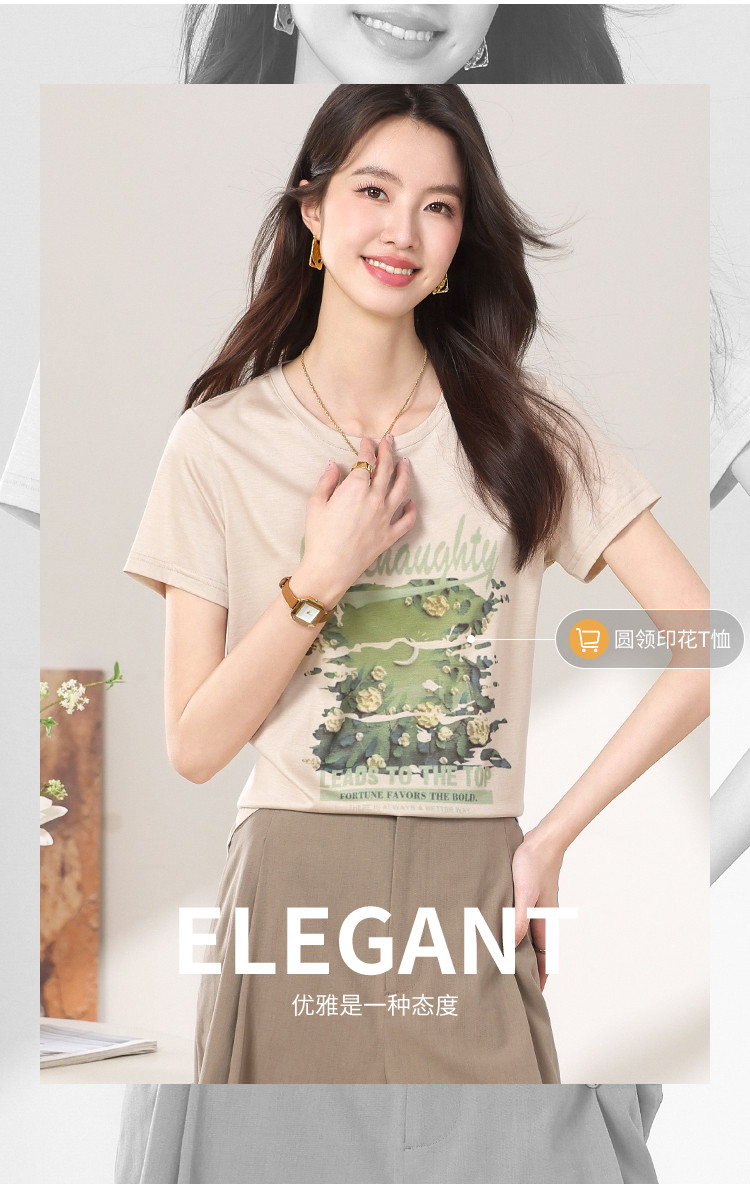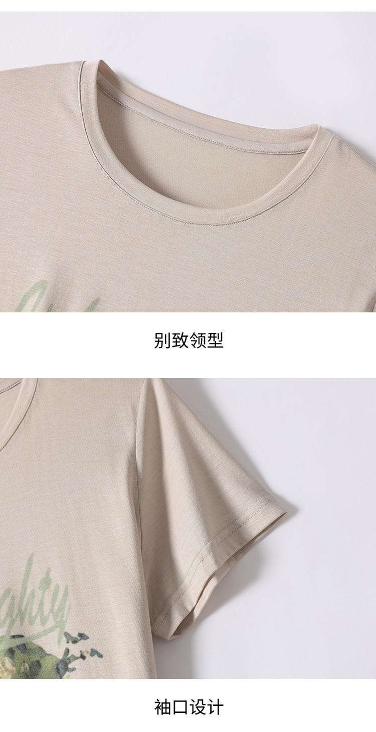 【含桑蚕丝】轻薄透气趣味印花圆领短袖T恤打底衫上衣 702611