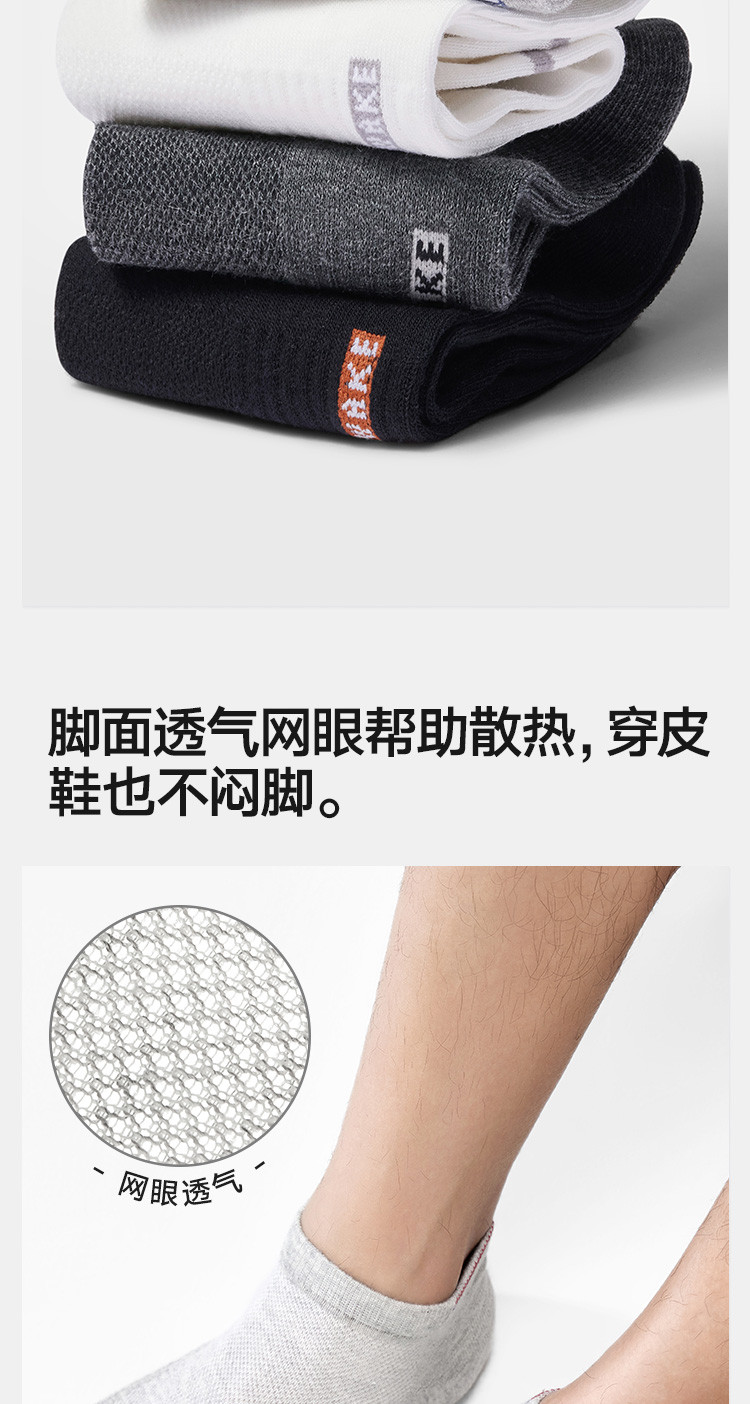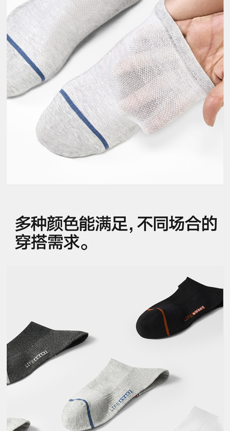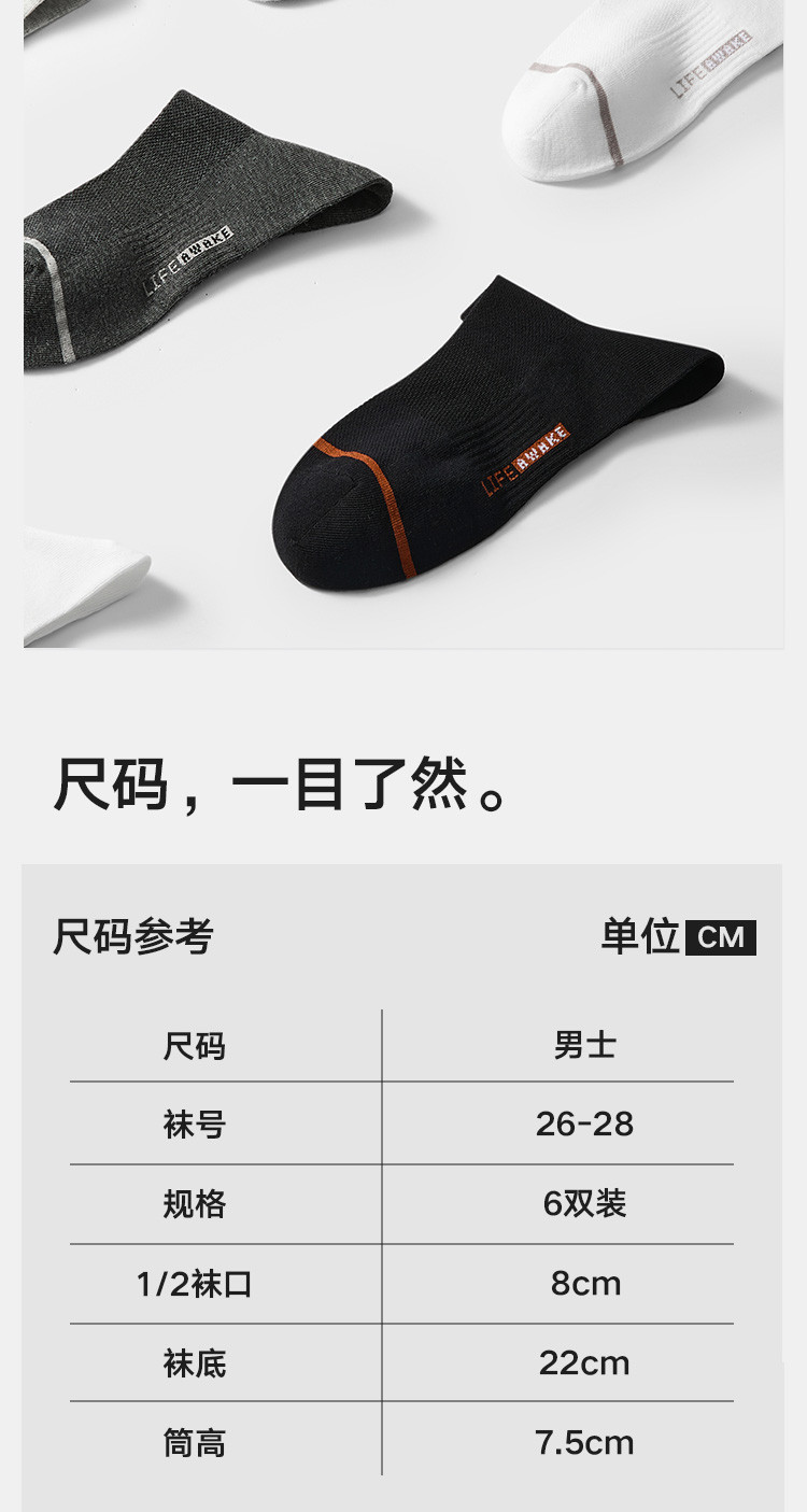 商品名称:【100%纯棉防臭】6双装男士袜子夏季薄款网眼透气短袜男船袜 129562
