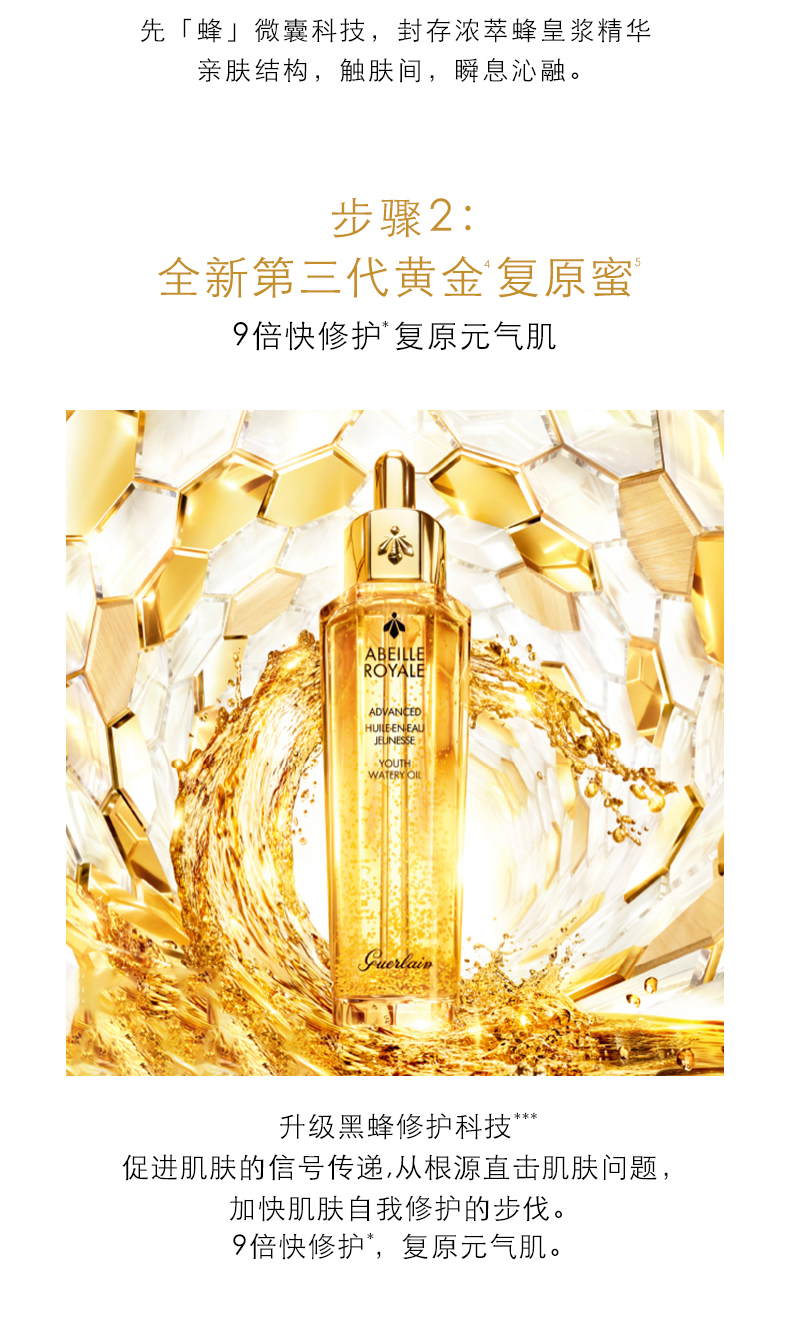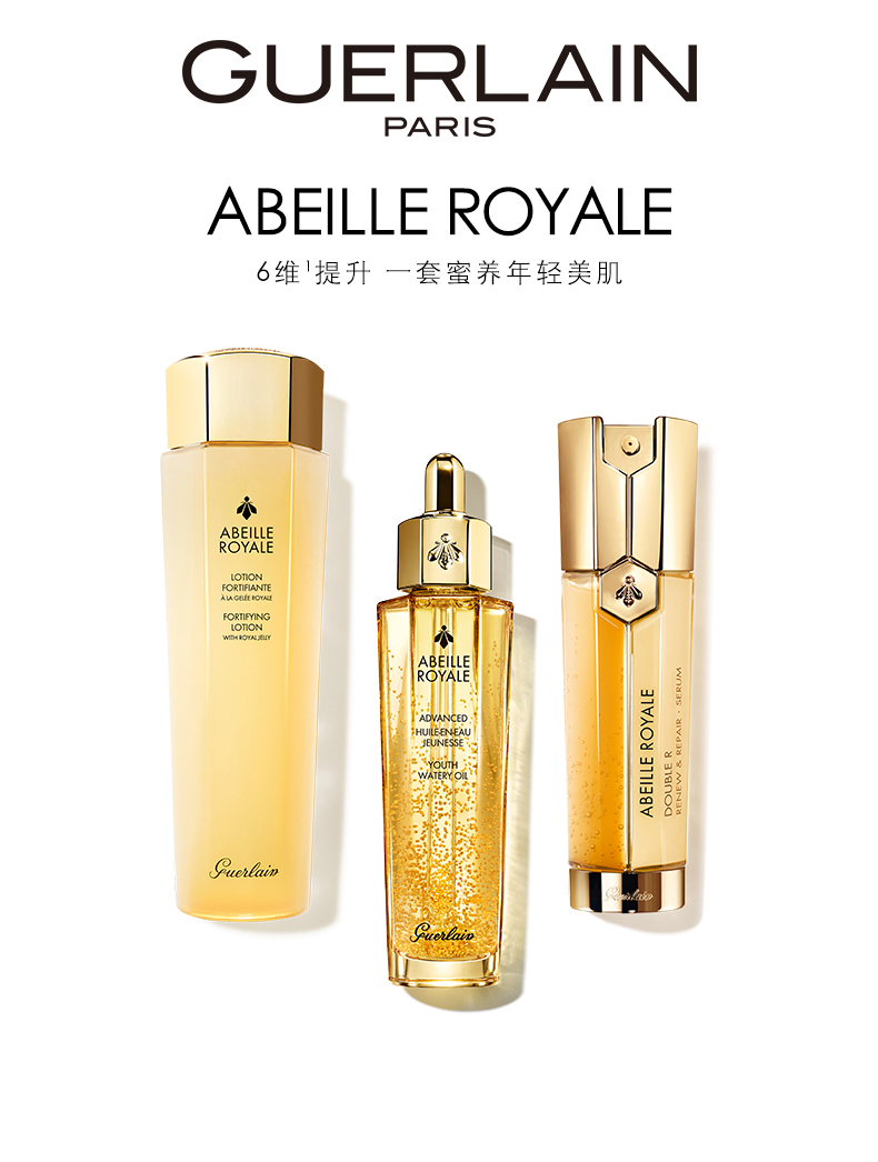 商品名称:Guerlain/娇兰 帝皇蜂姿修护复原蜜双效精粹水护肤套组 蜂姿水150ml+复原蜜50ml+双效修护精华50ml
