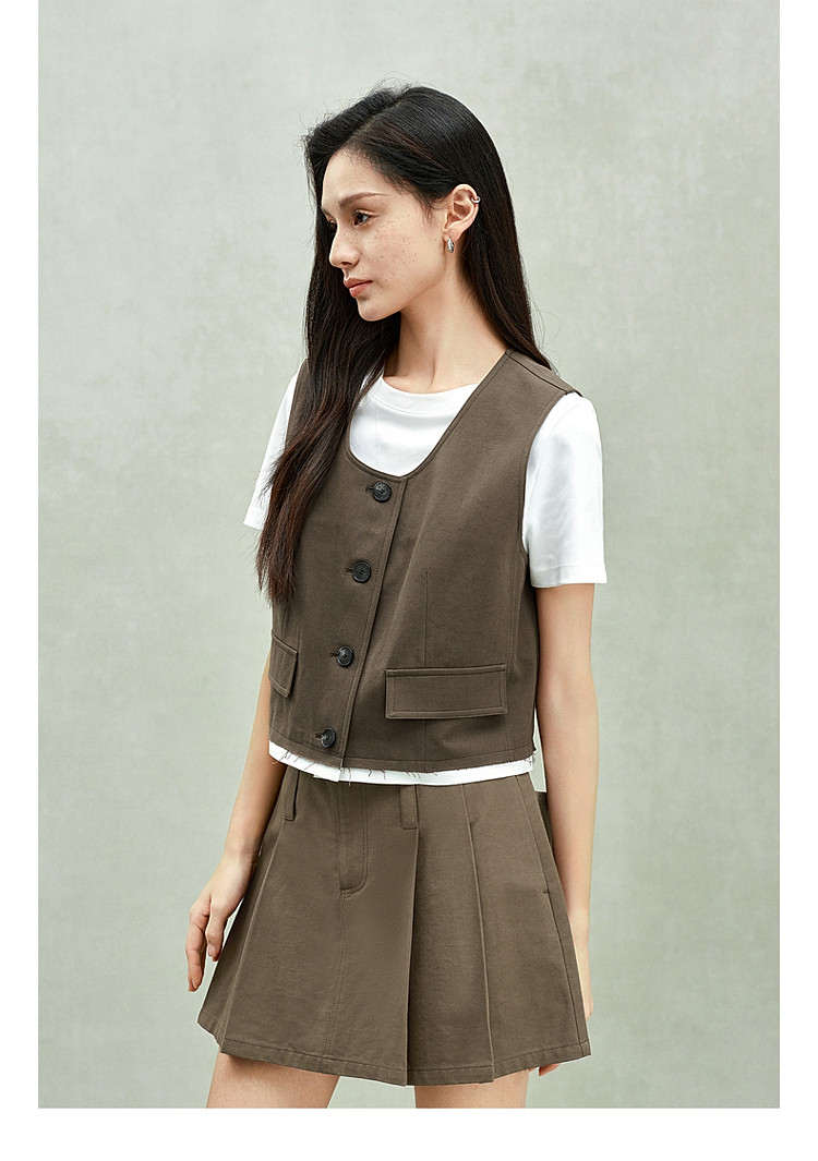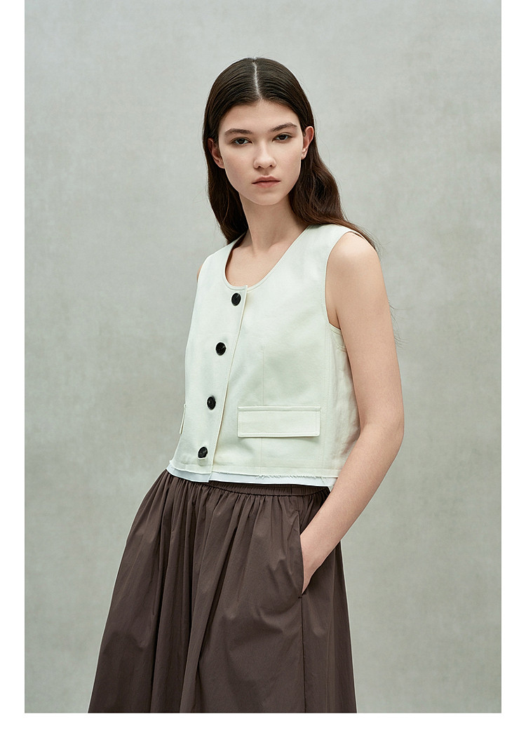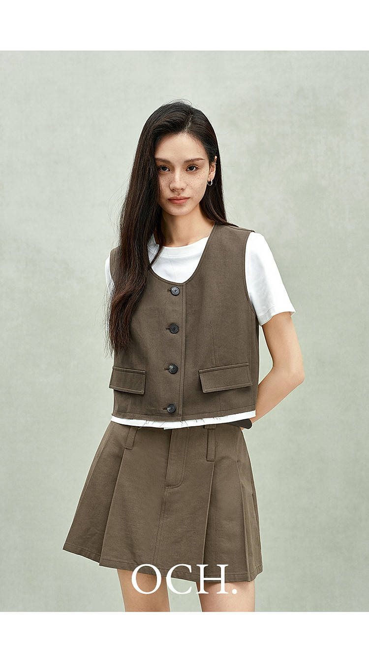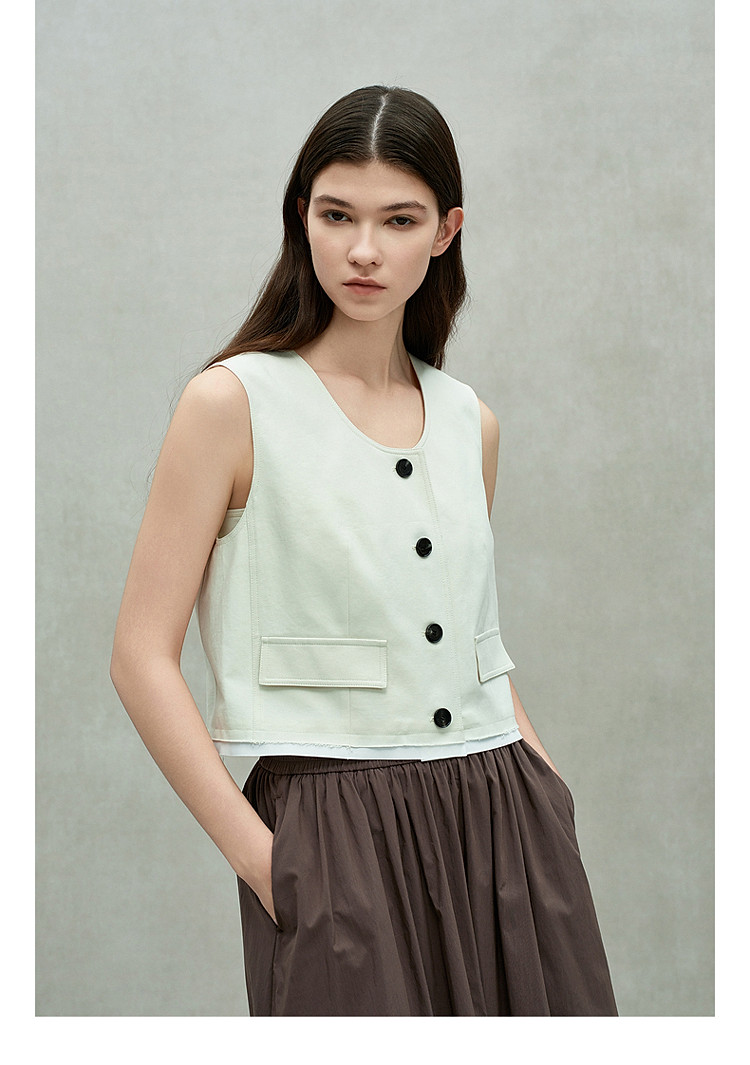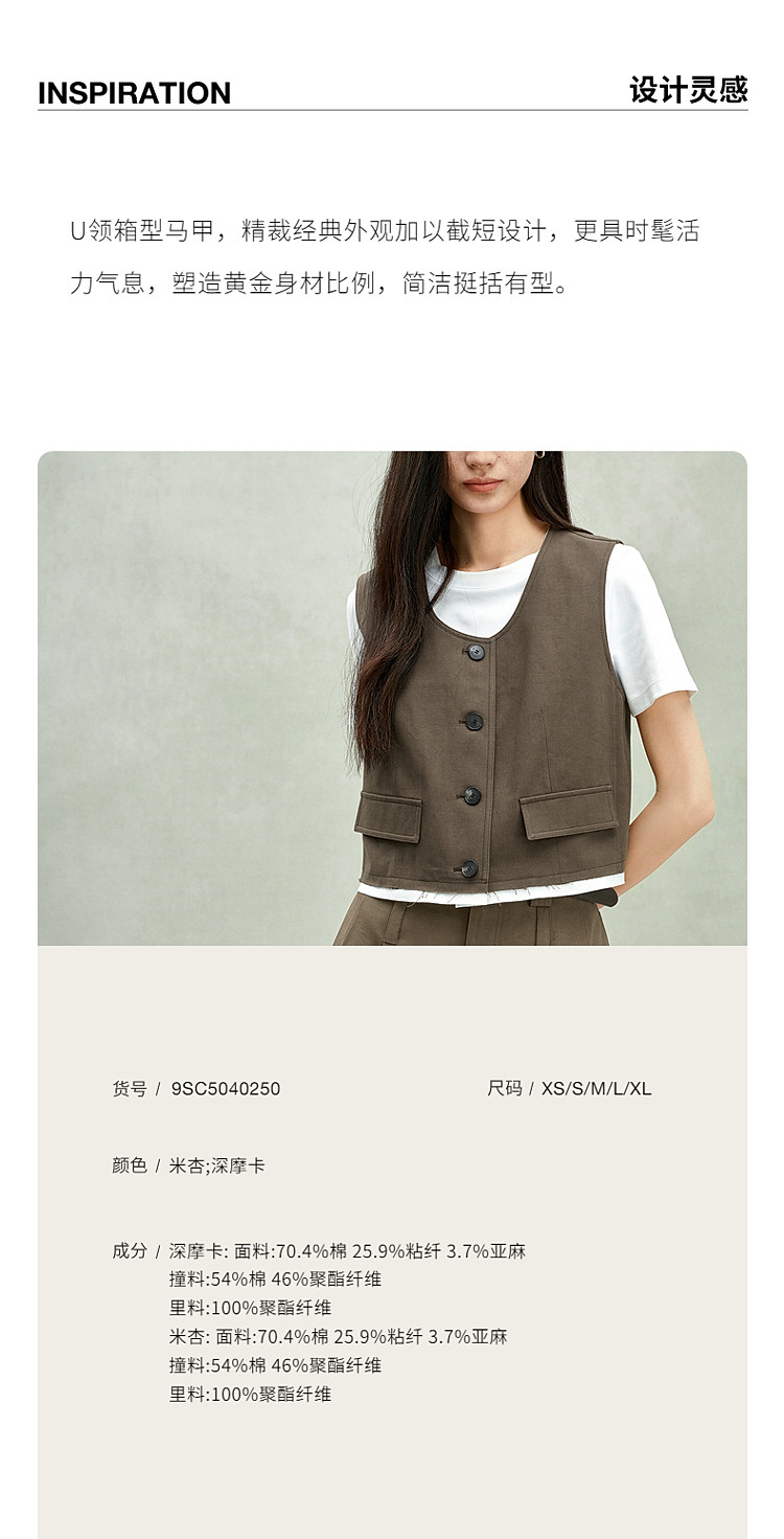 限定系列OCH.春装 U领上衣无袖宽松小个子马甲短外套女 852879