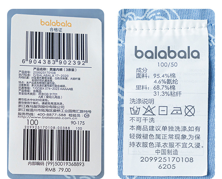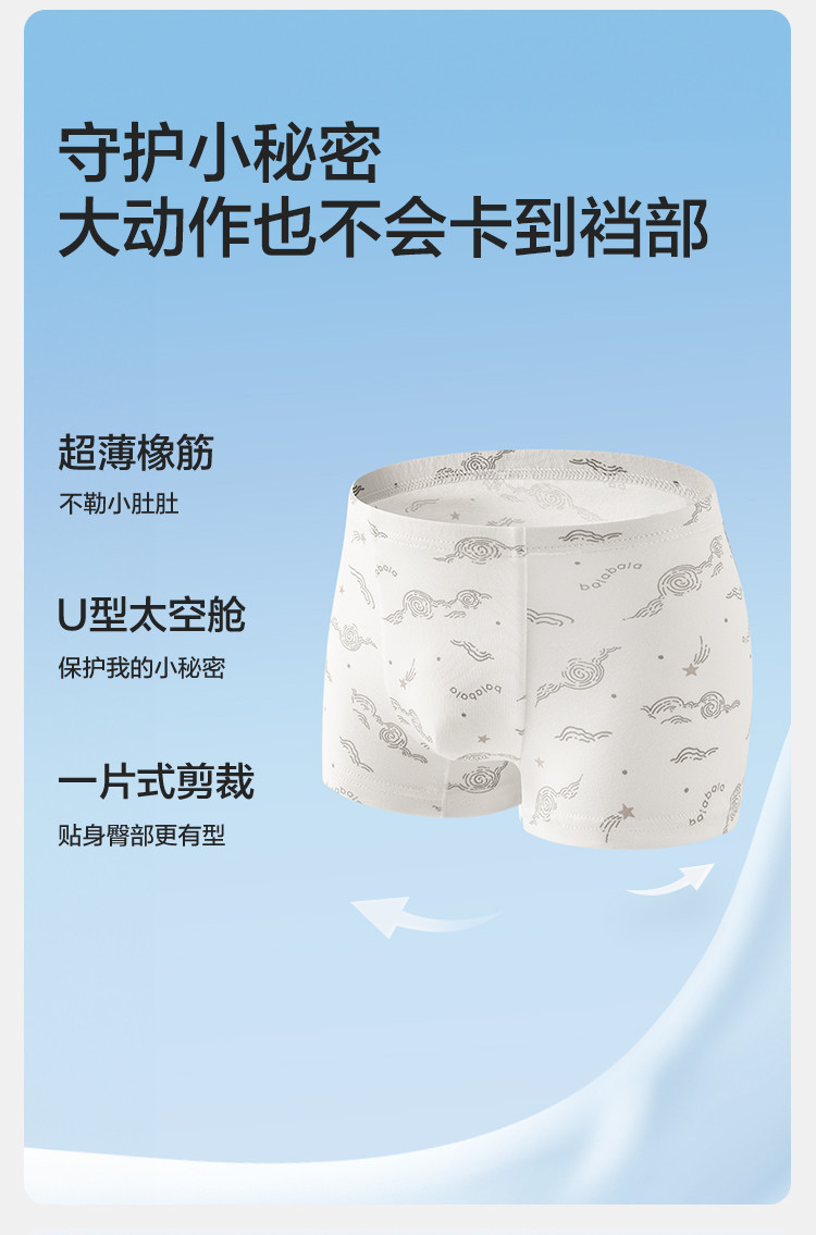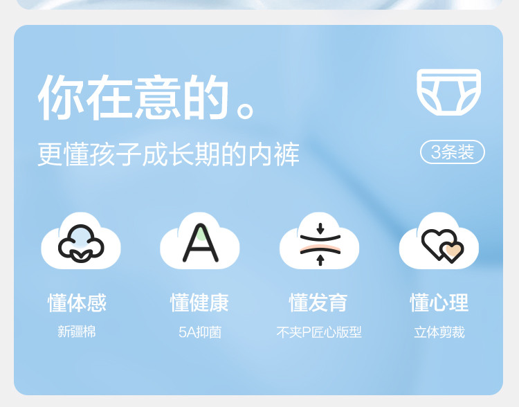 商品名称:抑菌裆男童内裤棉a类儿童四角裤成长期不夹PP平角裤透气三条装 082629