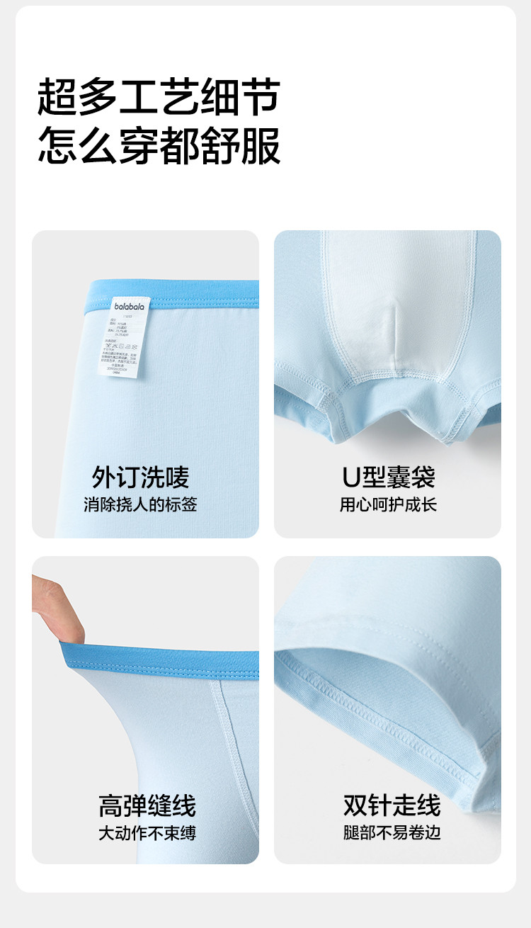 抑菌裆男童内裤棉a类儿童四角裤成长期不夹PP平角裤透气三条装 082629