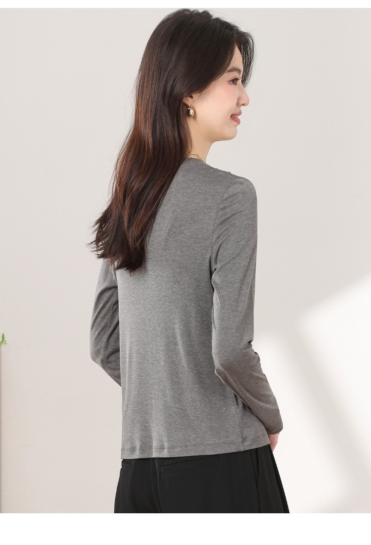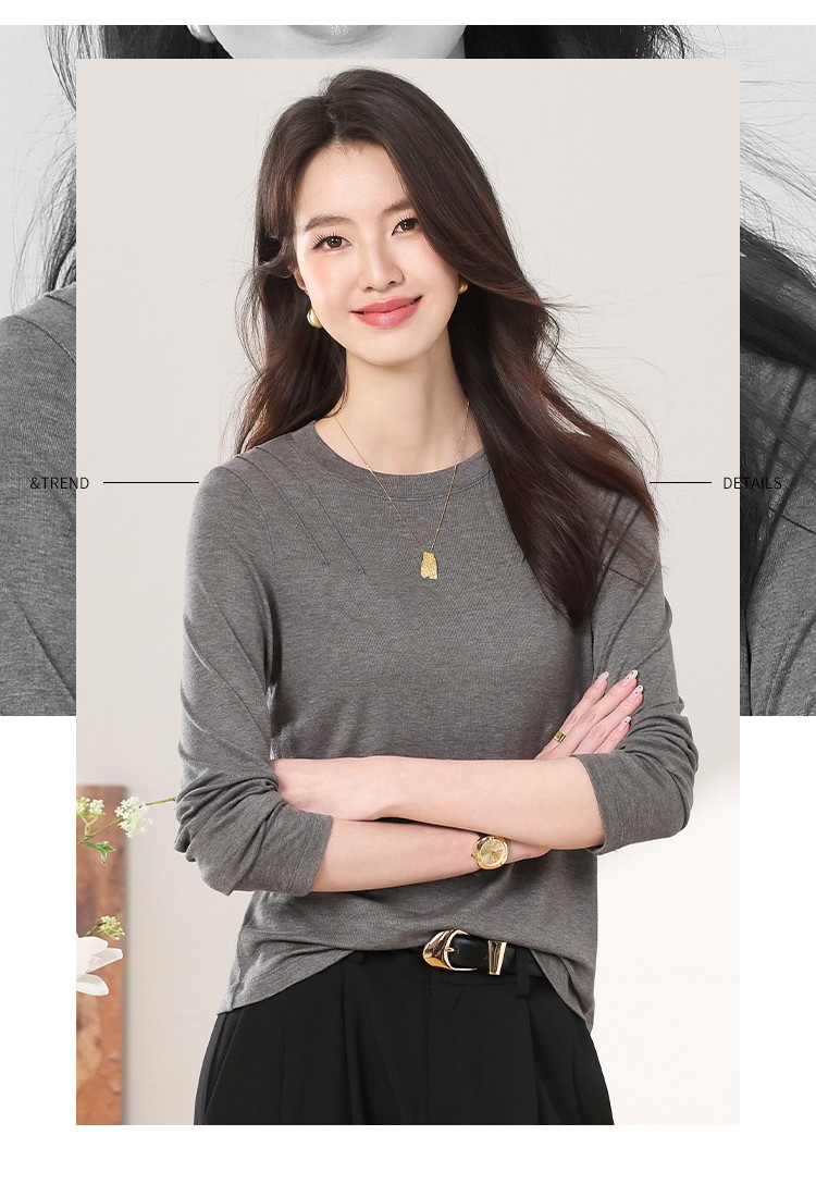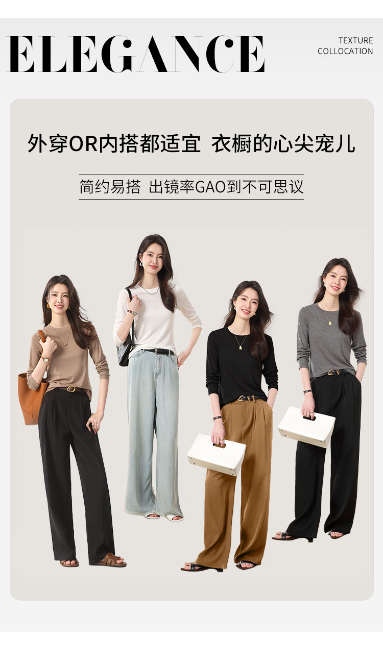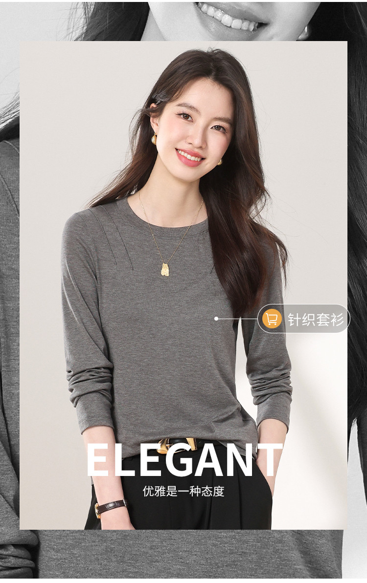 商品名称:【含桑蚕丝】圆领纯色简约针织T恤女休闲百搭长袖薄款针织衫 265619