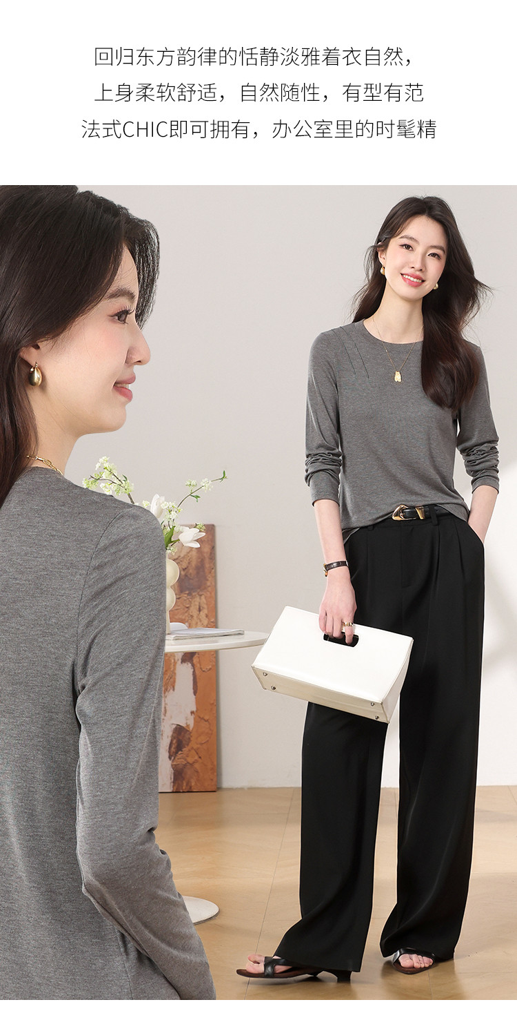 【含桑蚕丝】圆领纯色简约针织T恤女休闲百搭长袖薄款针织衫 265619