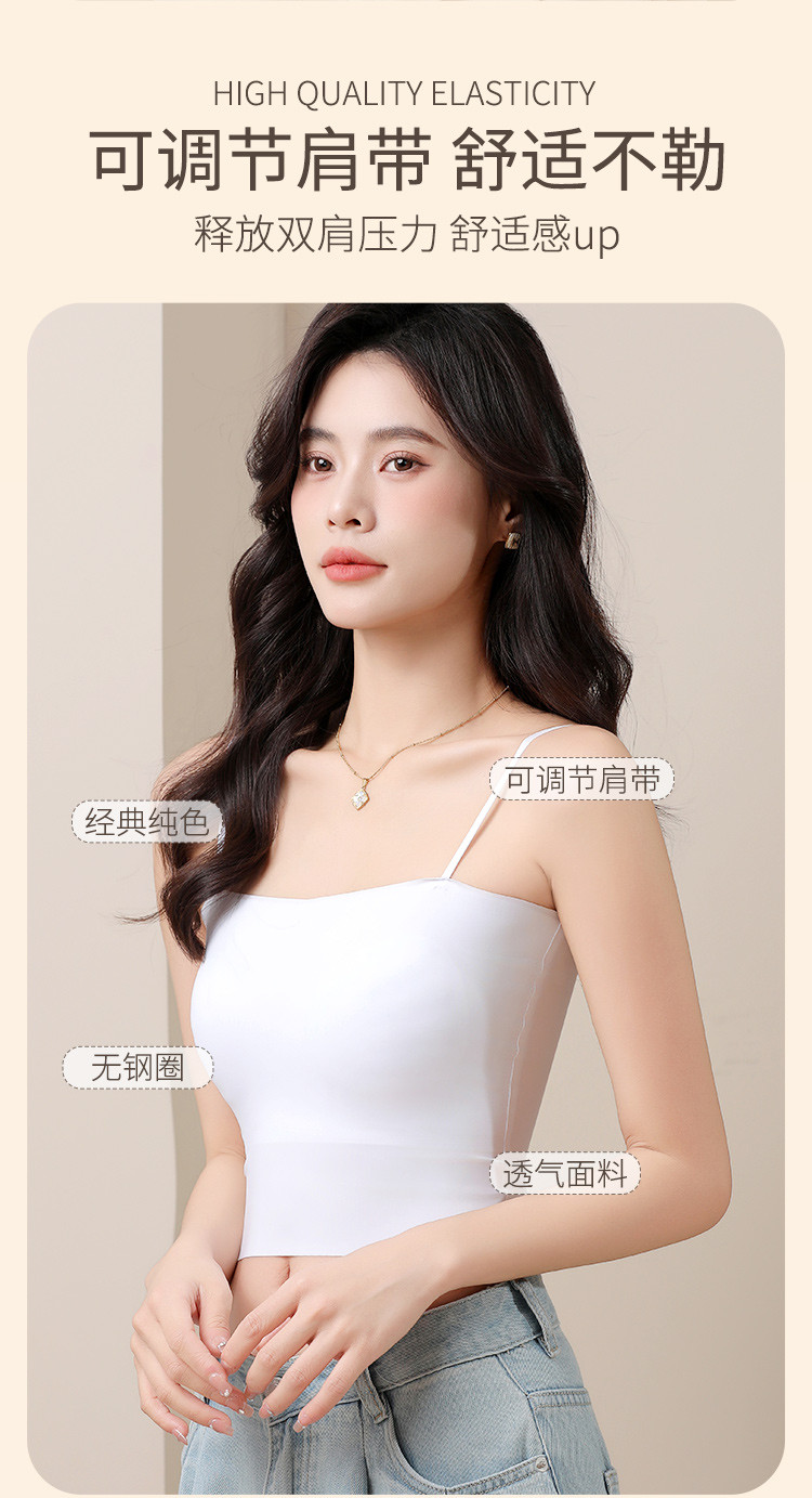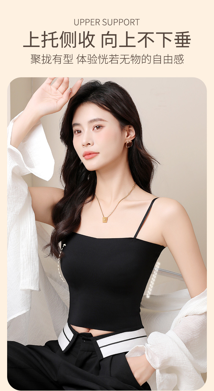 商品名称:吊带背心一体美背舒适无痕带胸垫背心女西装打底内搭高级感背心女 548811
