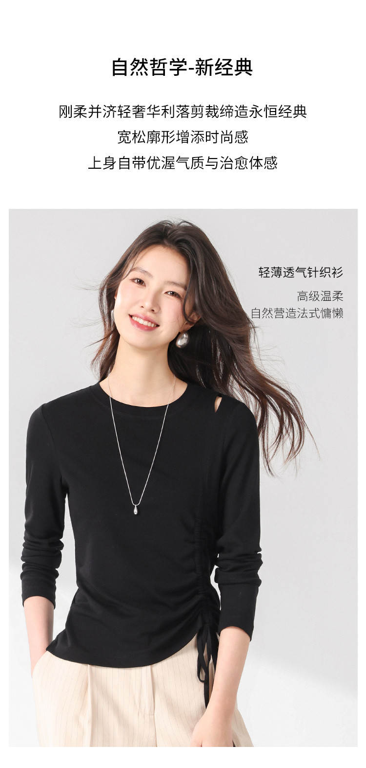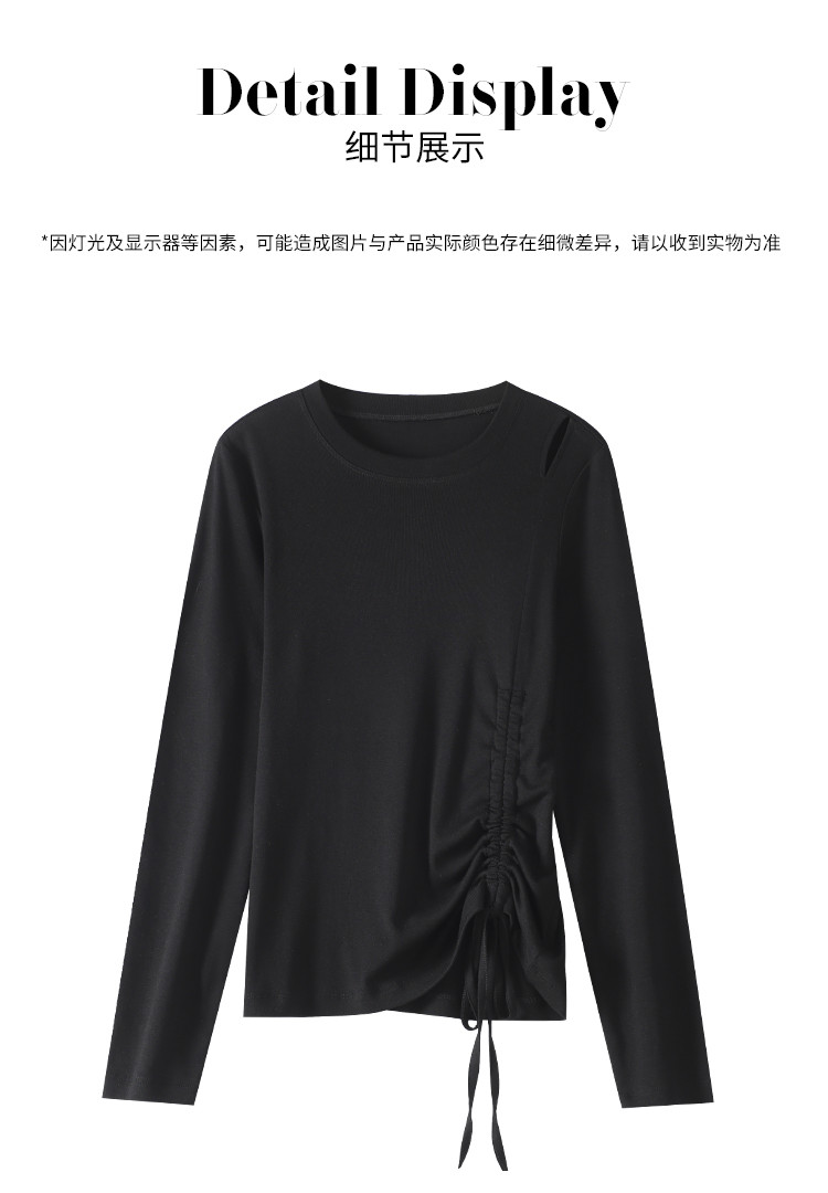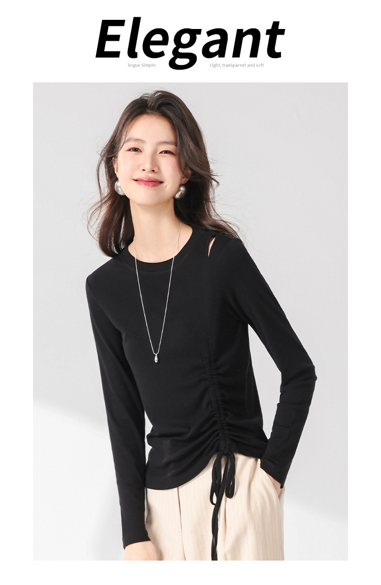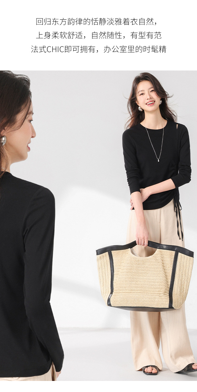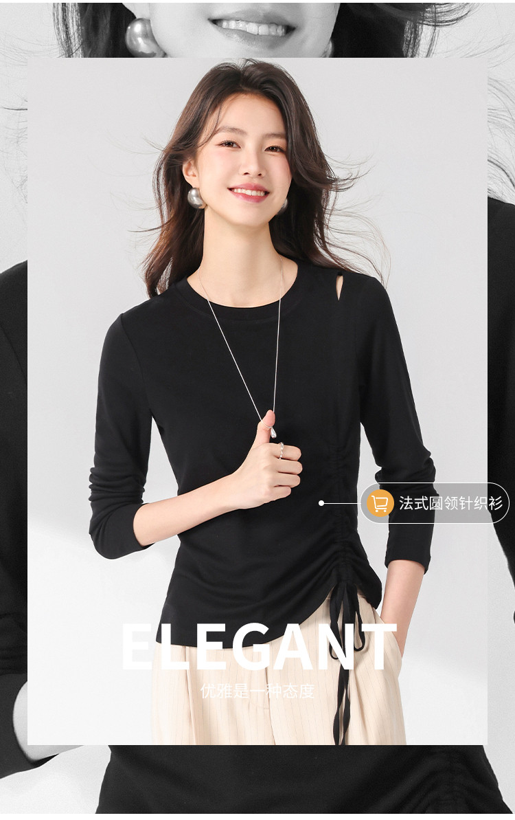 商品名称:法式圆领纯色绳结针织衫女套头时尚休闲含桑蚕丝长袖T恤打底衫薄 346067