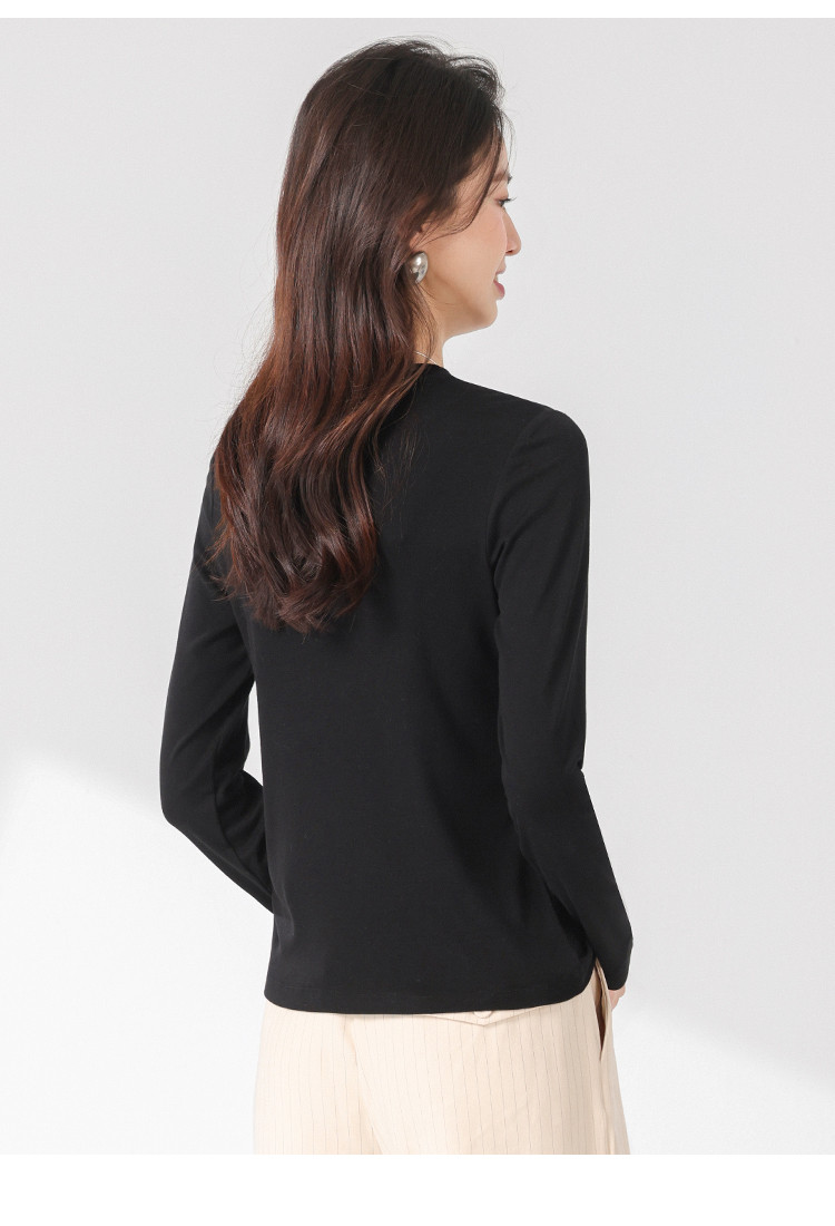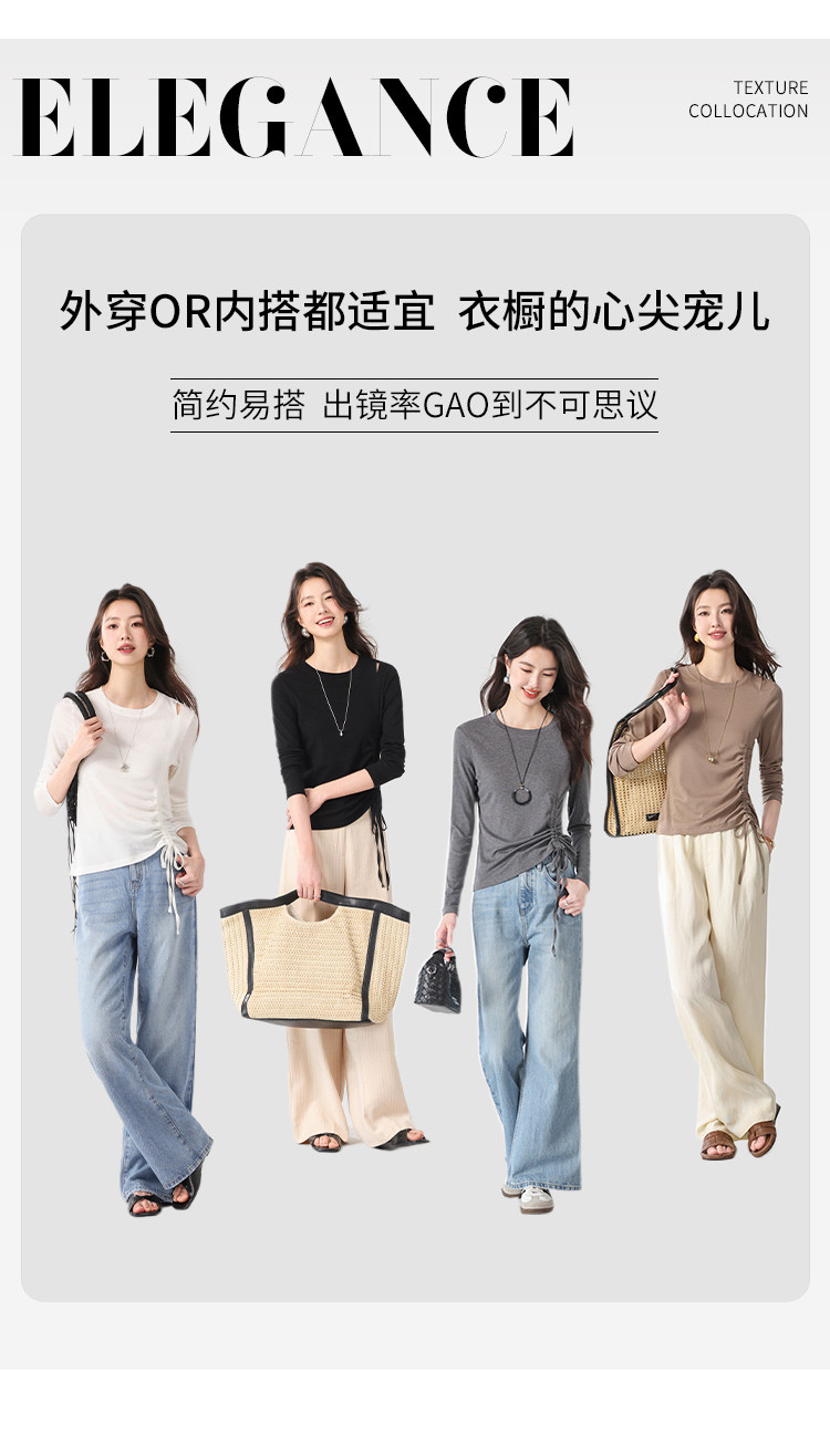 【含桑蚕丝】圆领纯色简约针织T恤女休闲百搭长袖薄款针织衫 265619