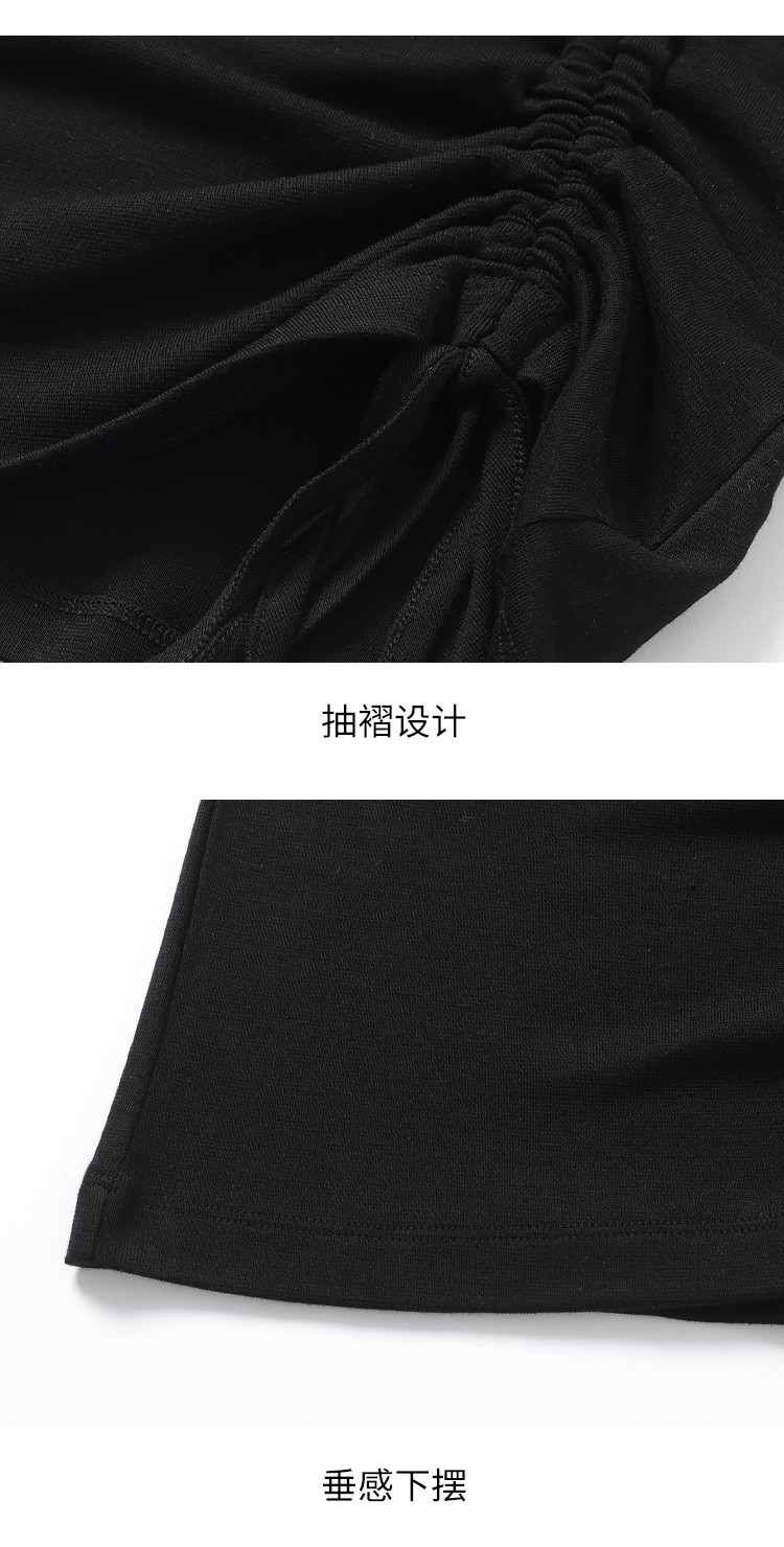 【含桑蚕丝】圆领抽条针织衫纯色简约针织五分袖T恤打底衫 942035