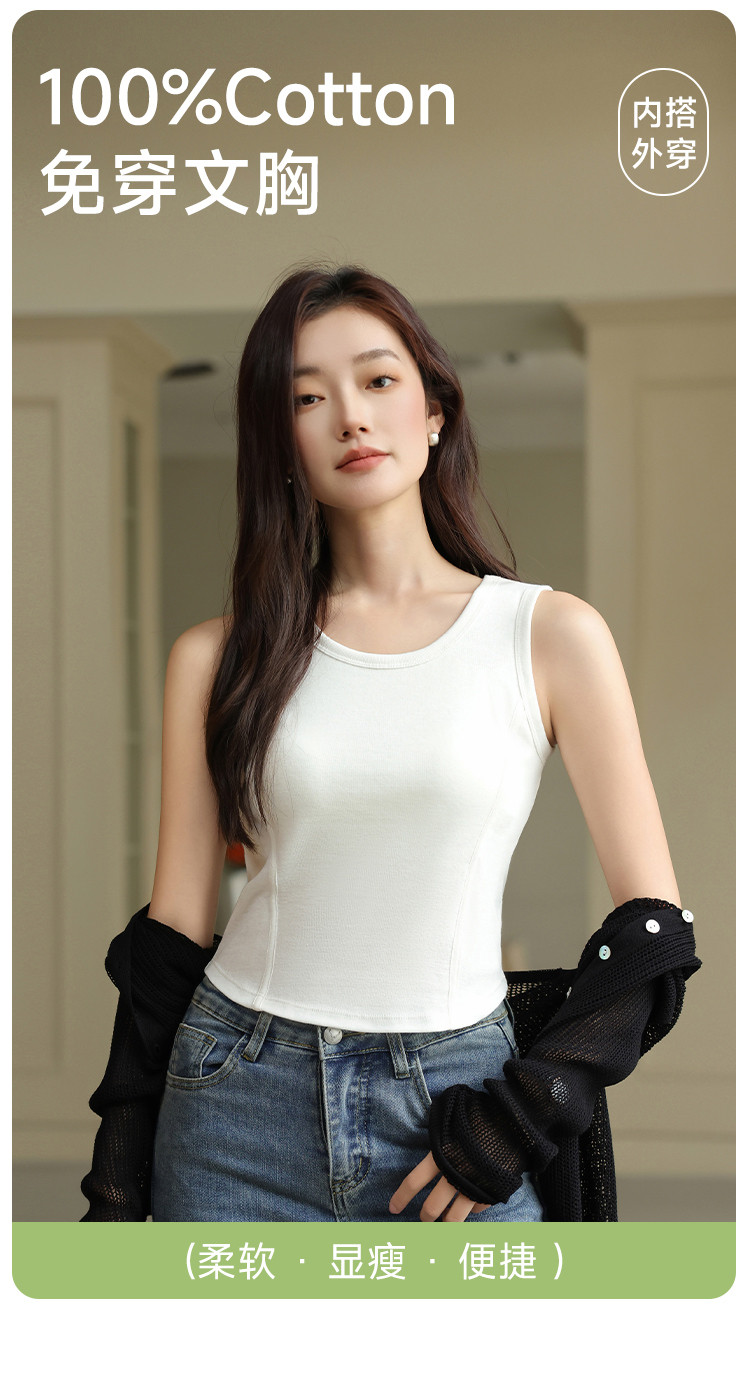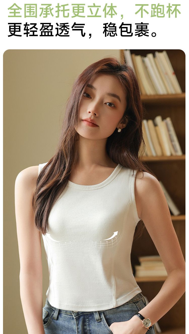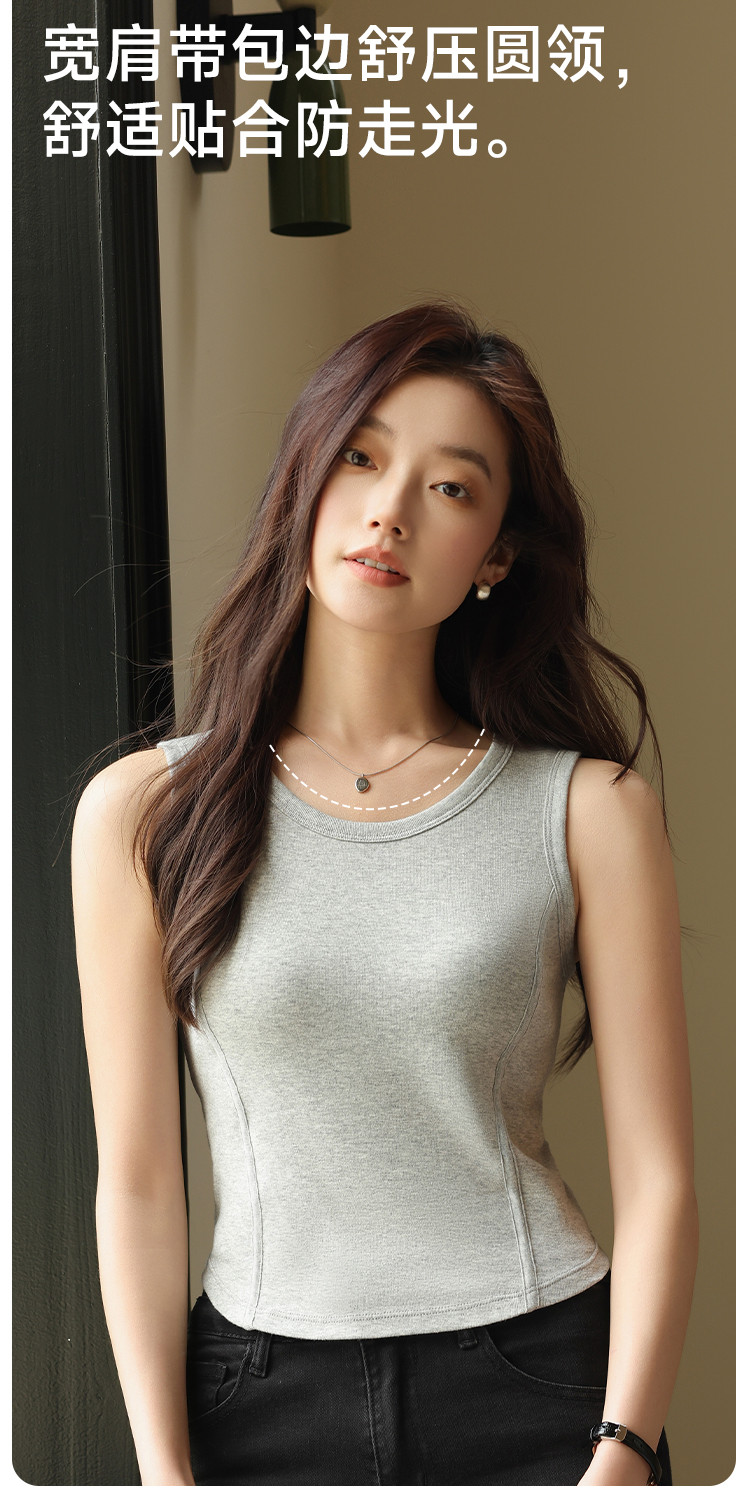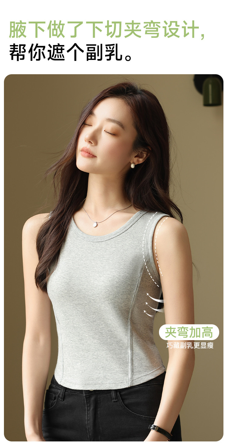 【带胸垫】遮副乳100%棉打底背心女圆领无袖纯棉内搭全棉百搭 671627