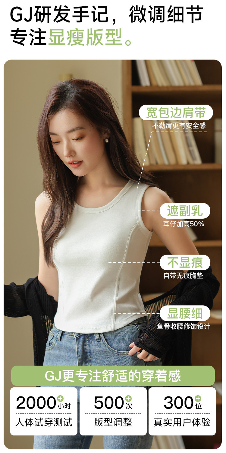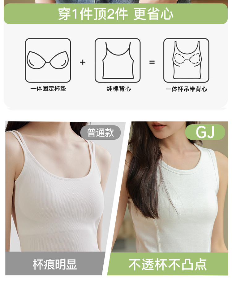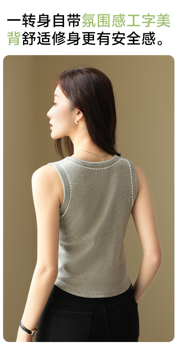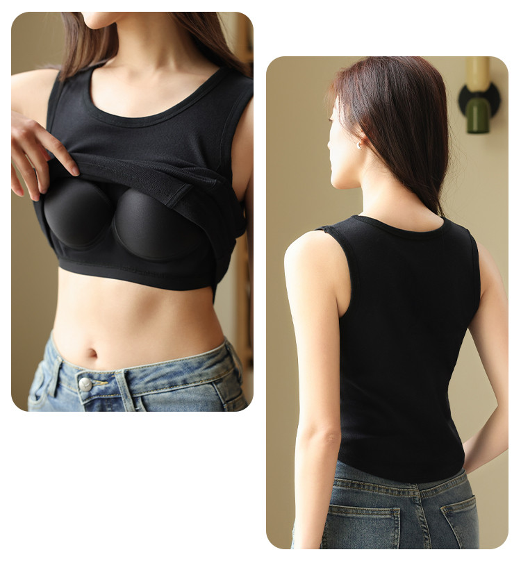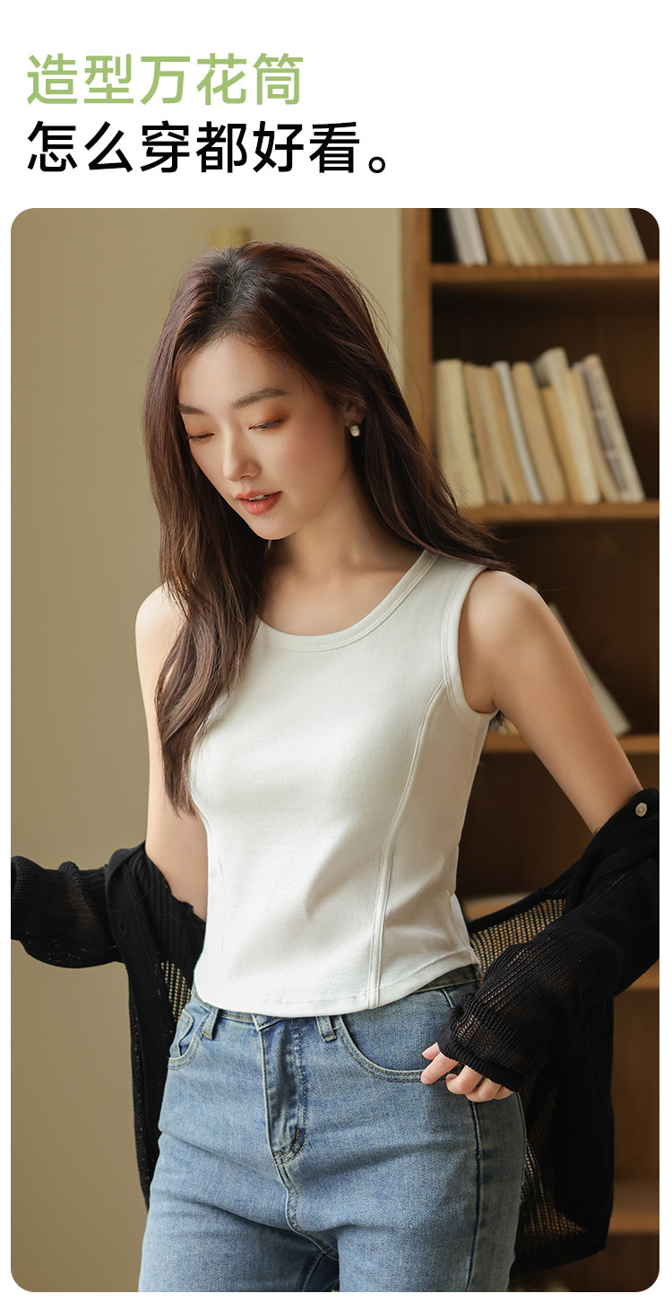 【带胸垫】遮副乳100%棉打底背心女圆领无袖纯棉内搭全棉百搭 671627