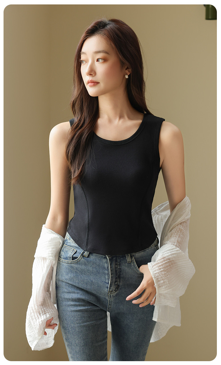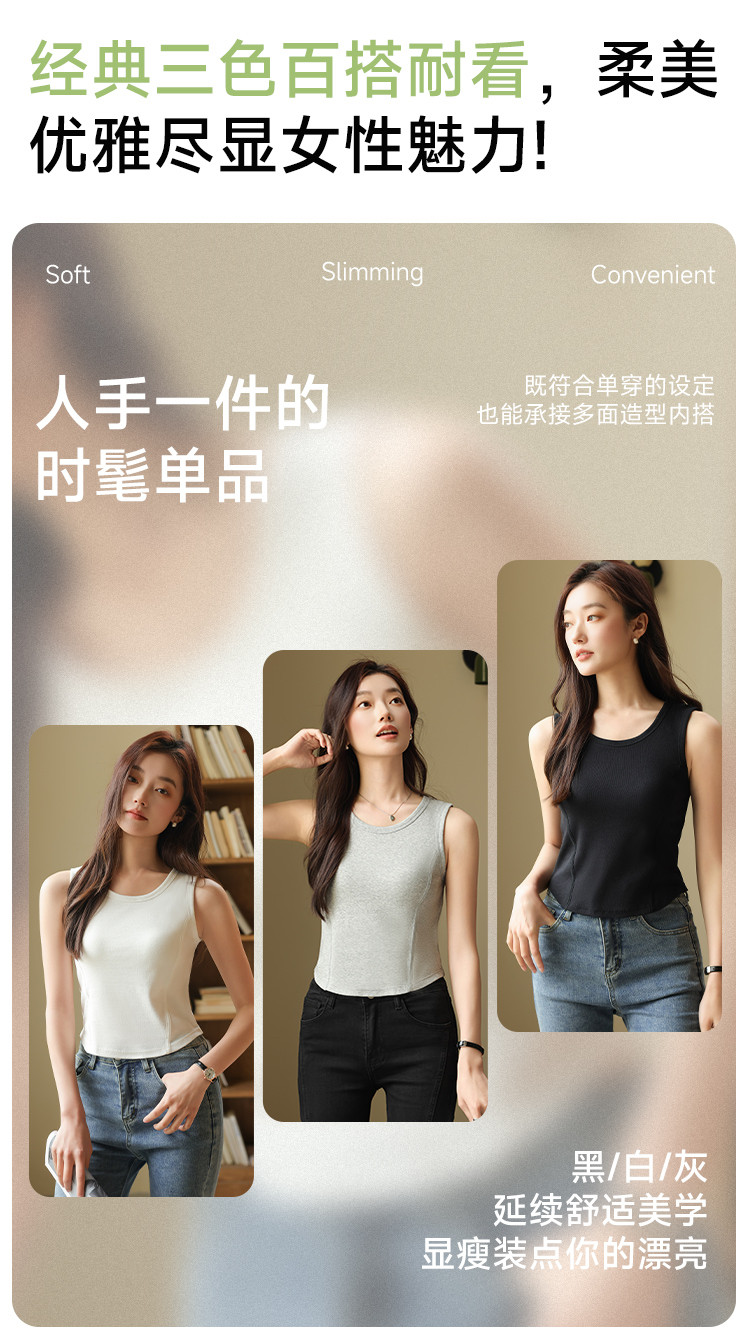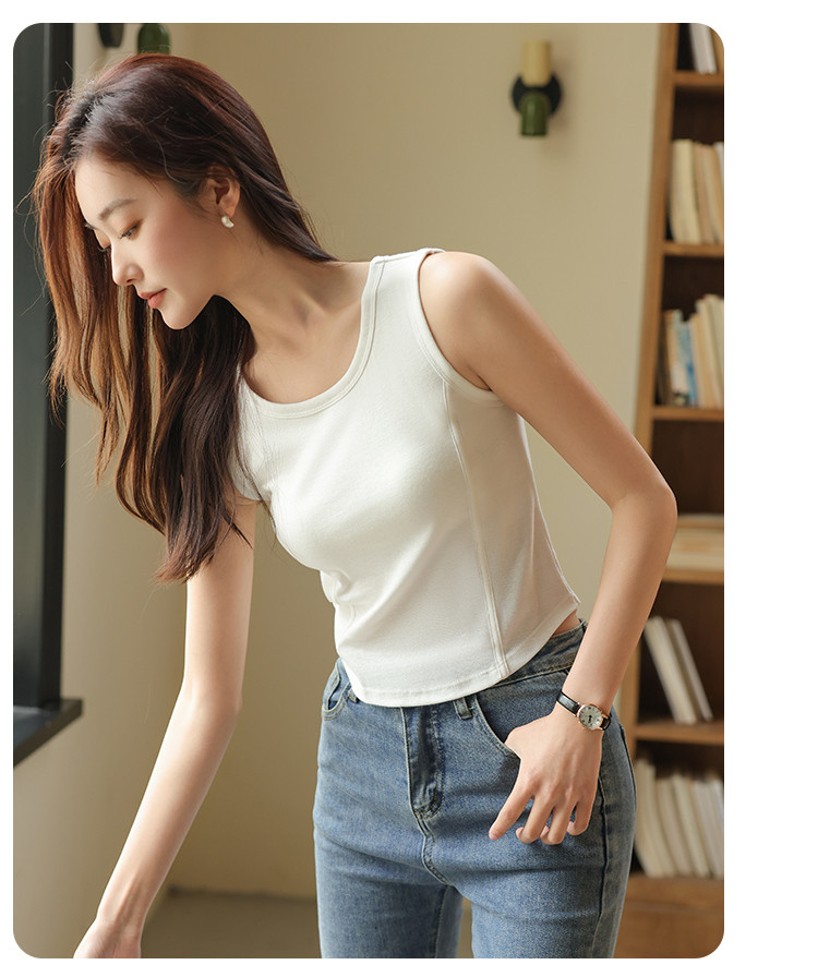 商品名称:【带胸垫】遮副乳100%棉打底背心女圆领无袖纯棉内搭全棉百搭 671627
