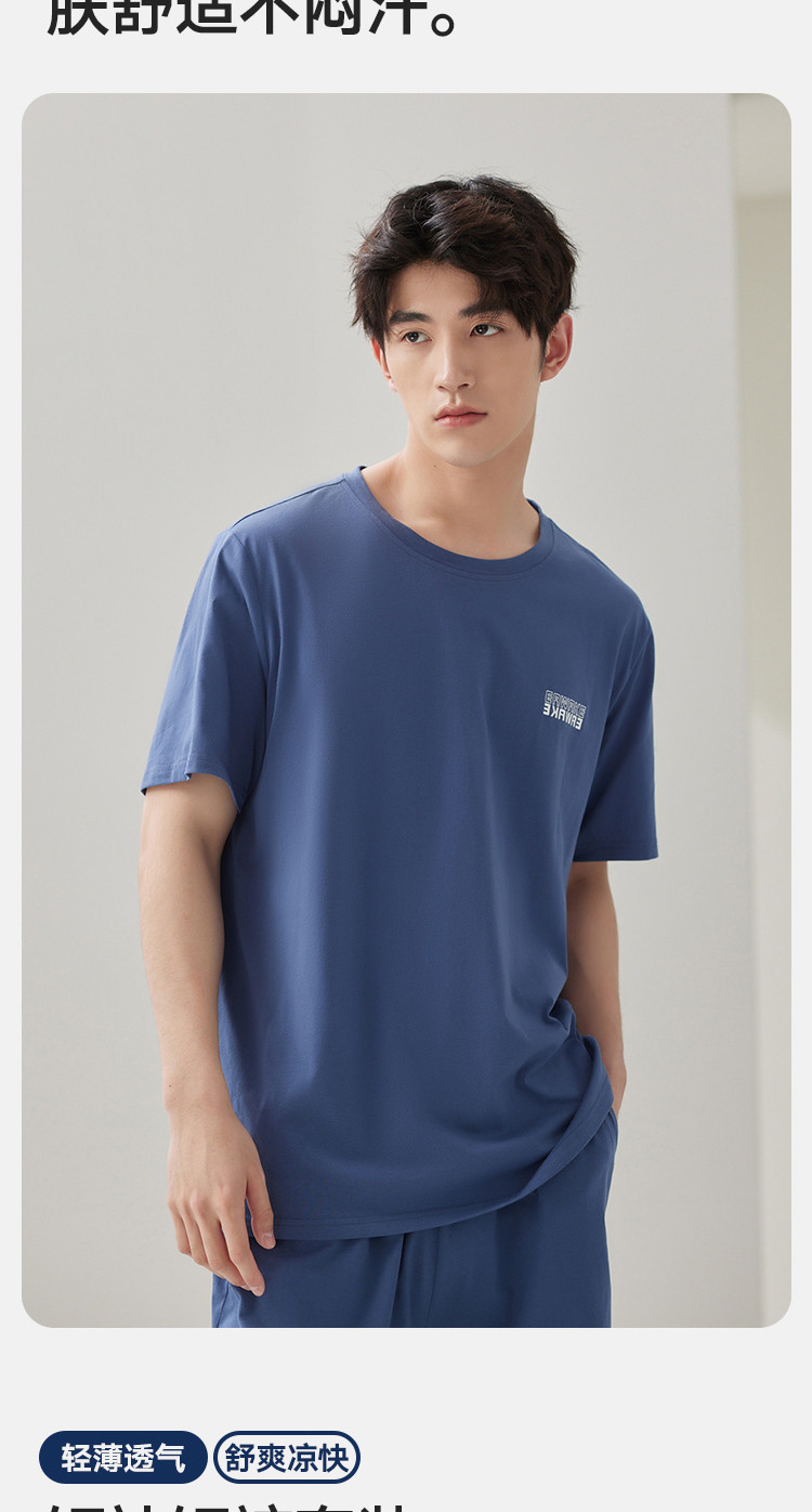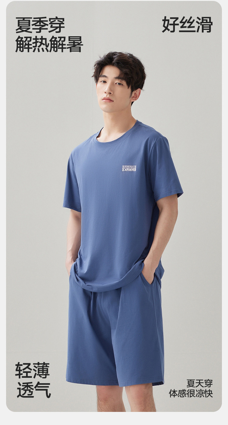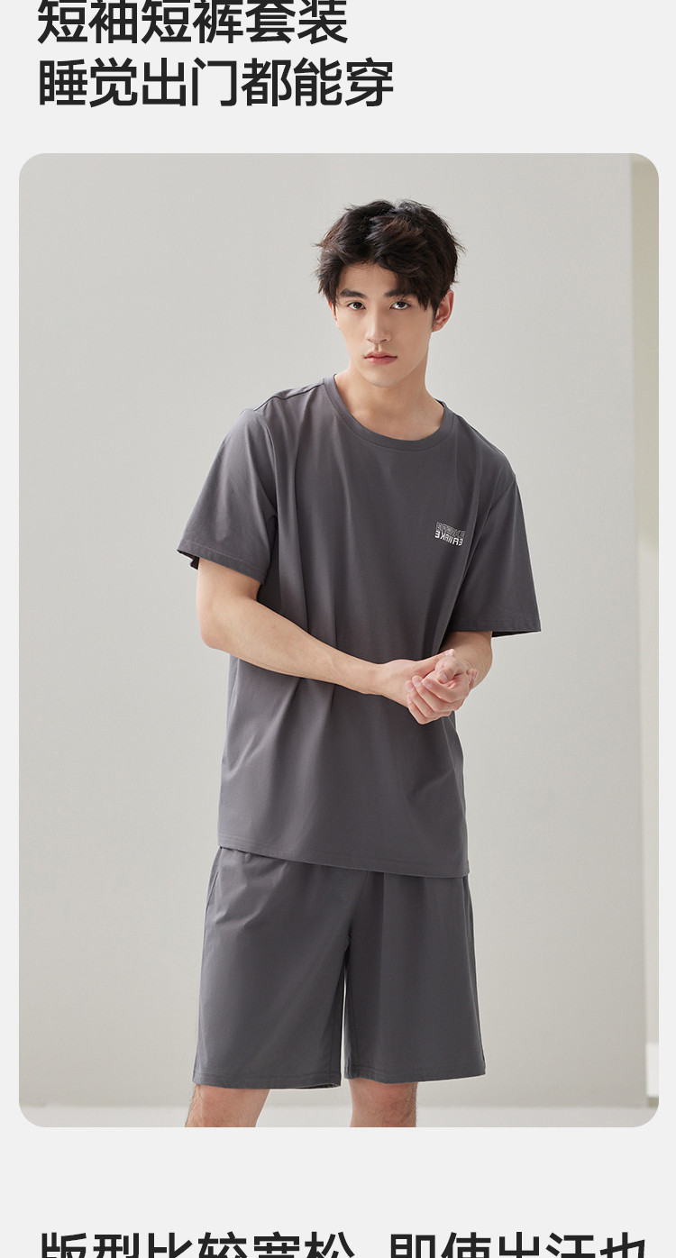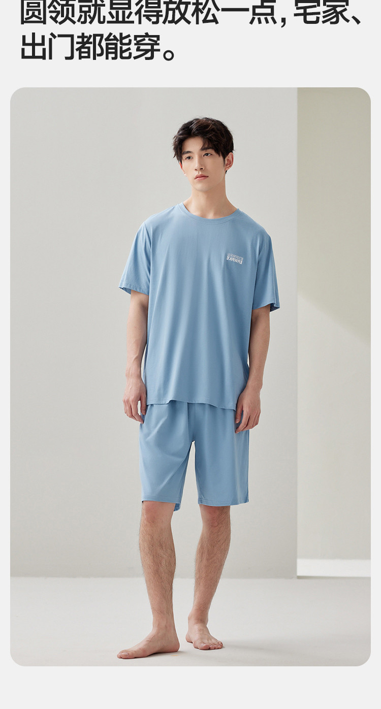 商品名称:【凉爽丝滑】夏季冰丝睡衣男士家居服套装可外穿圆领短袖短裤男款 914650