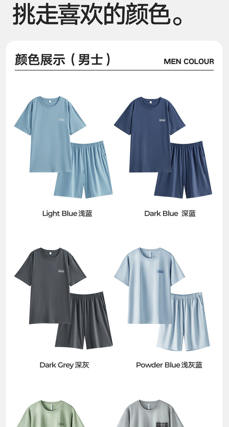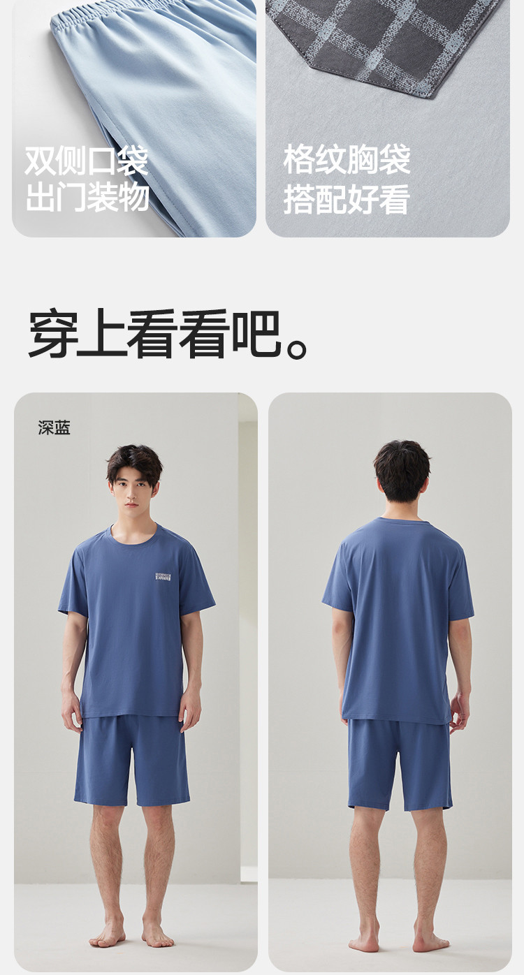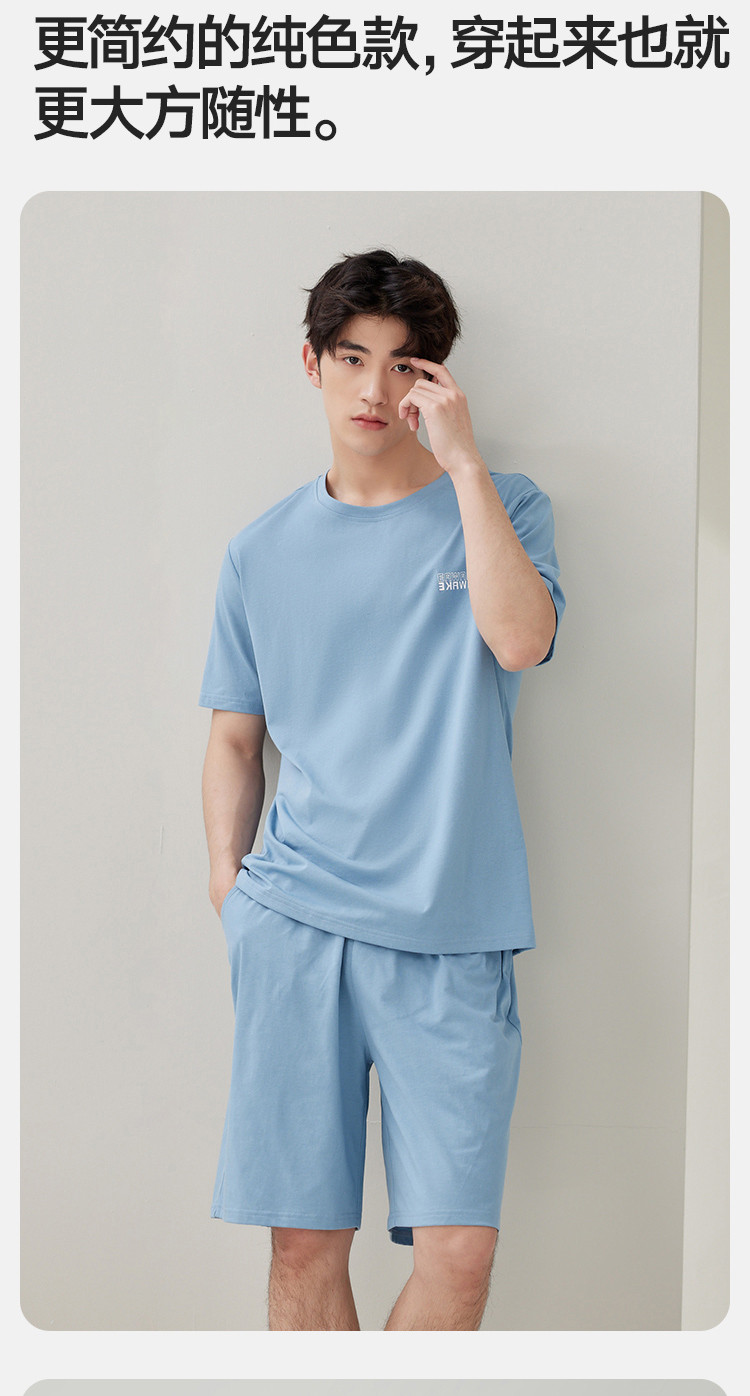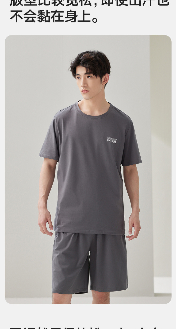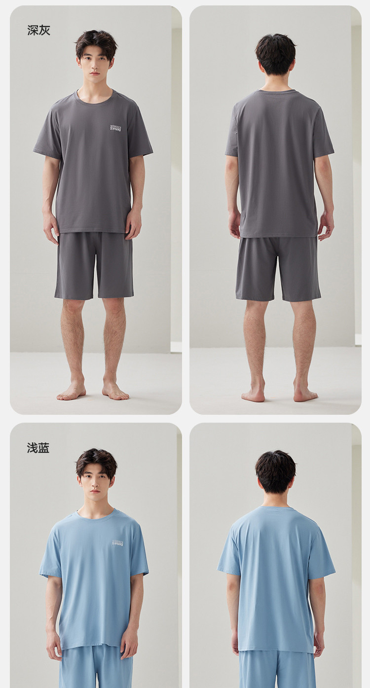 商品名称:【凉爽丝滑】夏季冰丝睡衣男士家居服套装可外穿圆领短袖短裤男款 914650