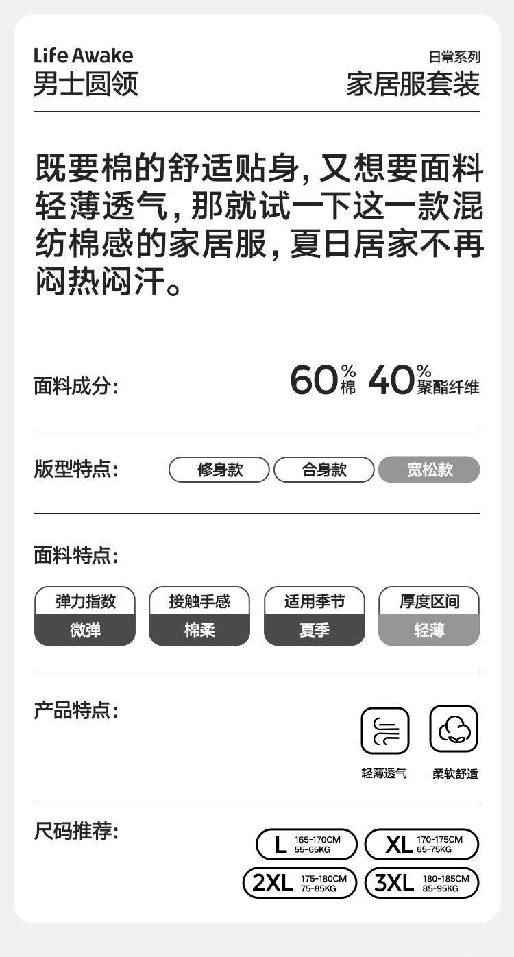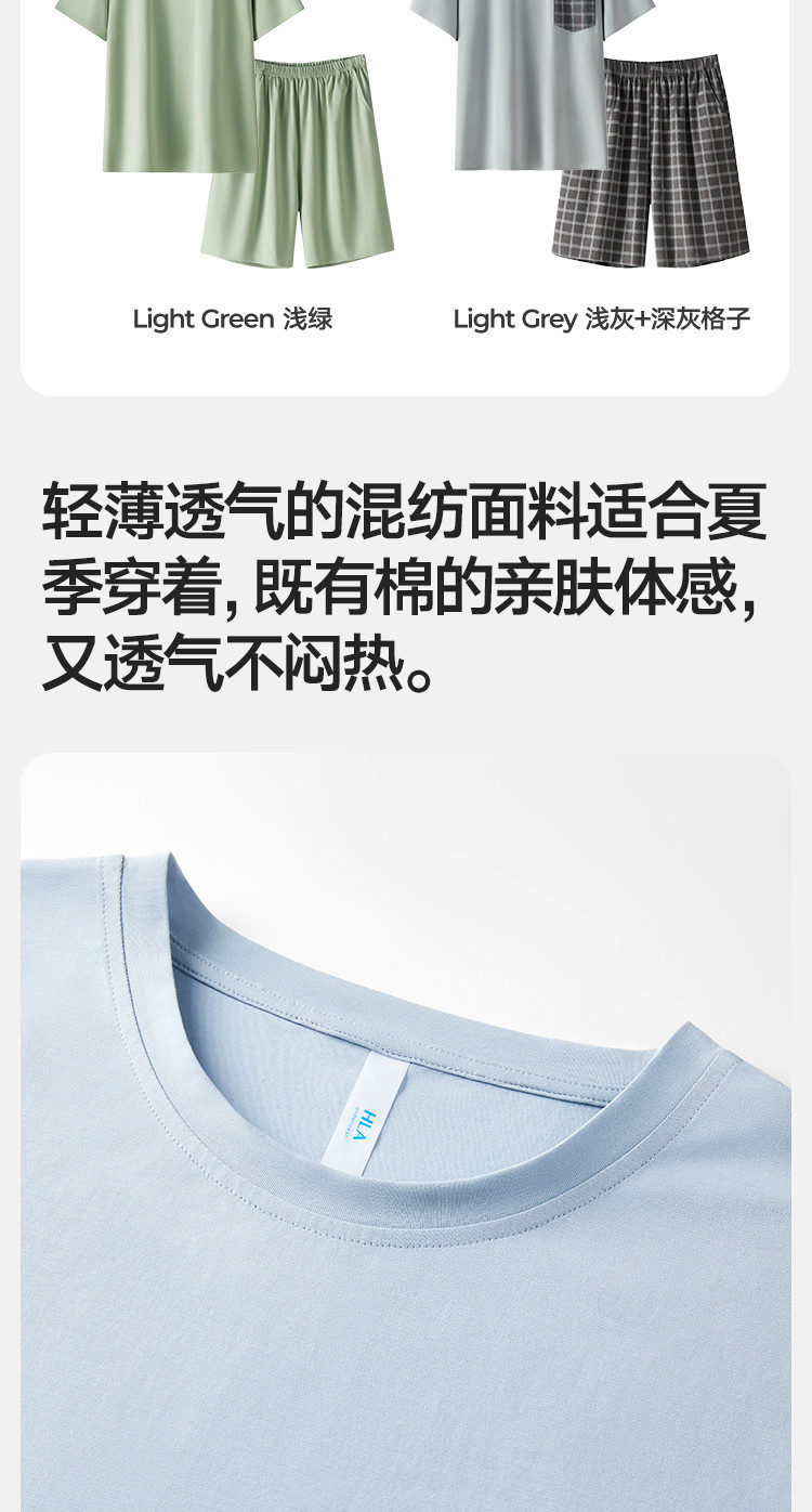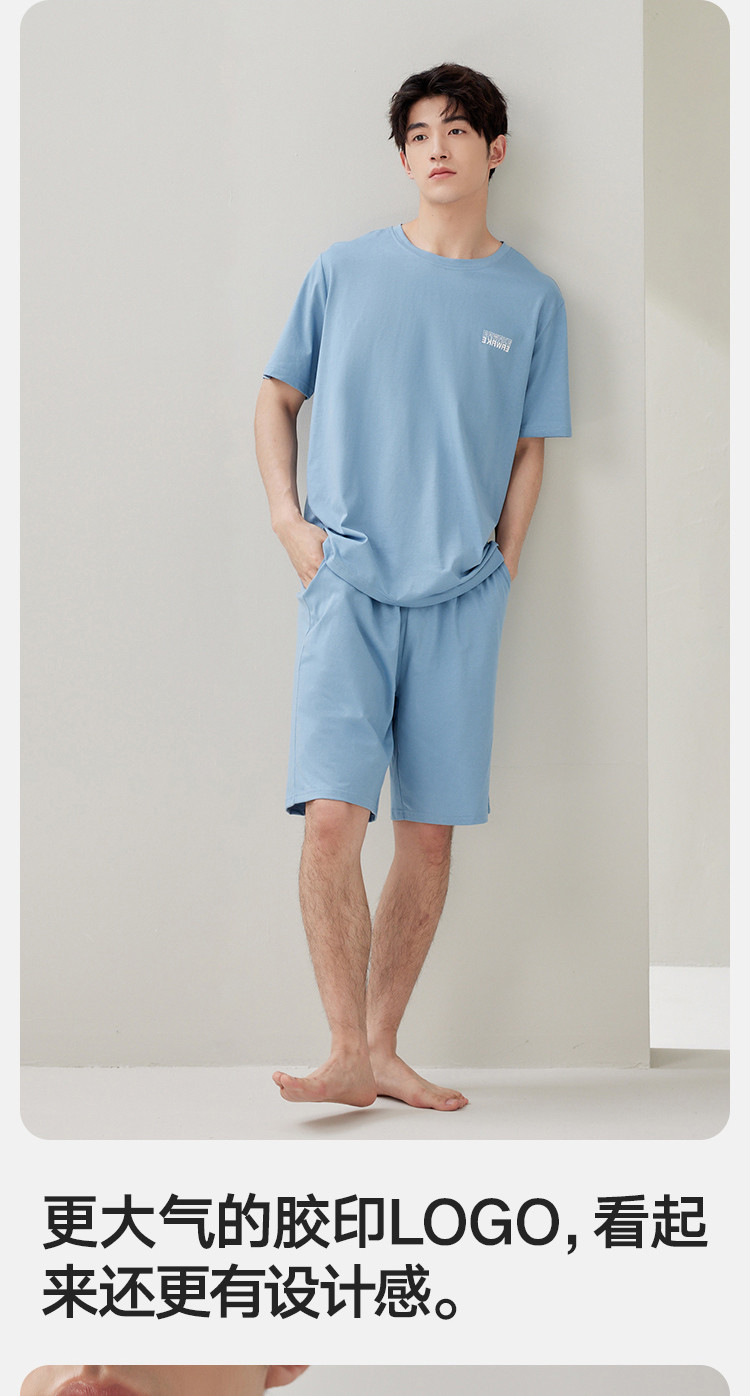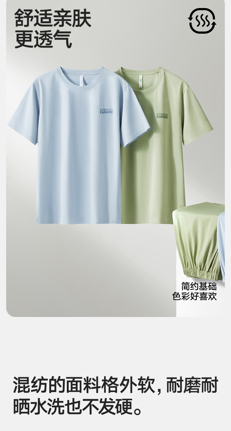 商品名称:【凉爽丝滑】夏季冰丝睡衣男士家居服套装可外穿圆领短袖短裤男款 914650