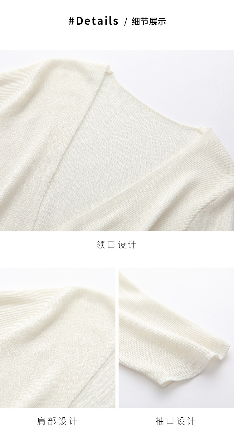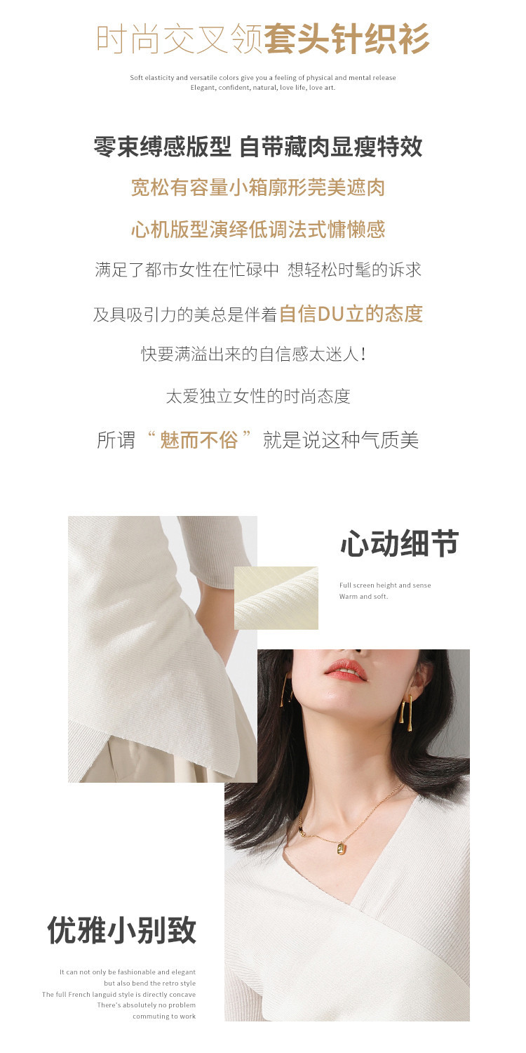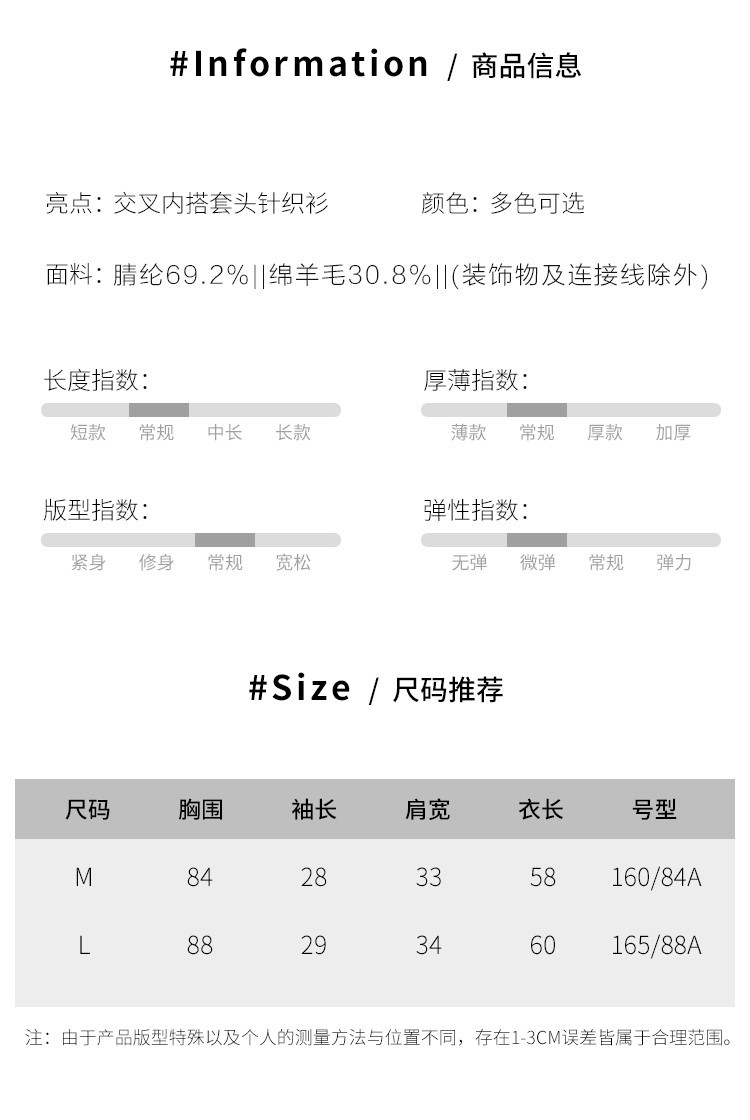 商品名称:【含羊毛 纯色百搭】交叉领上衣短袖T恤针织衫打底衫毛衣 675411