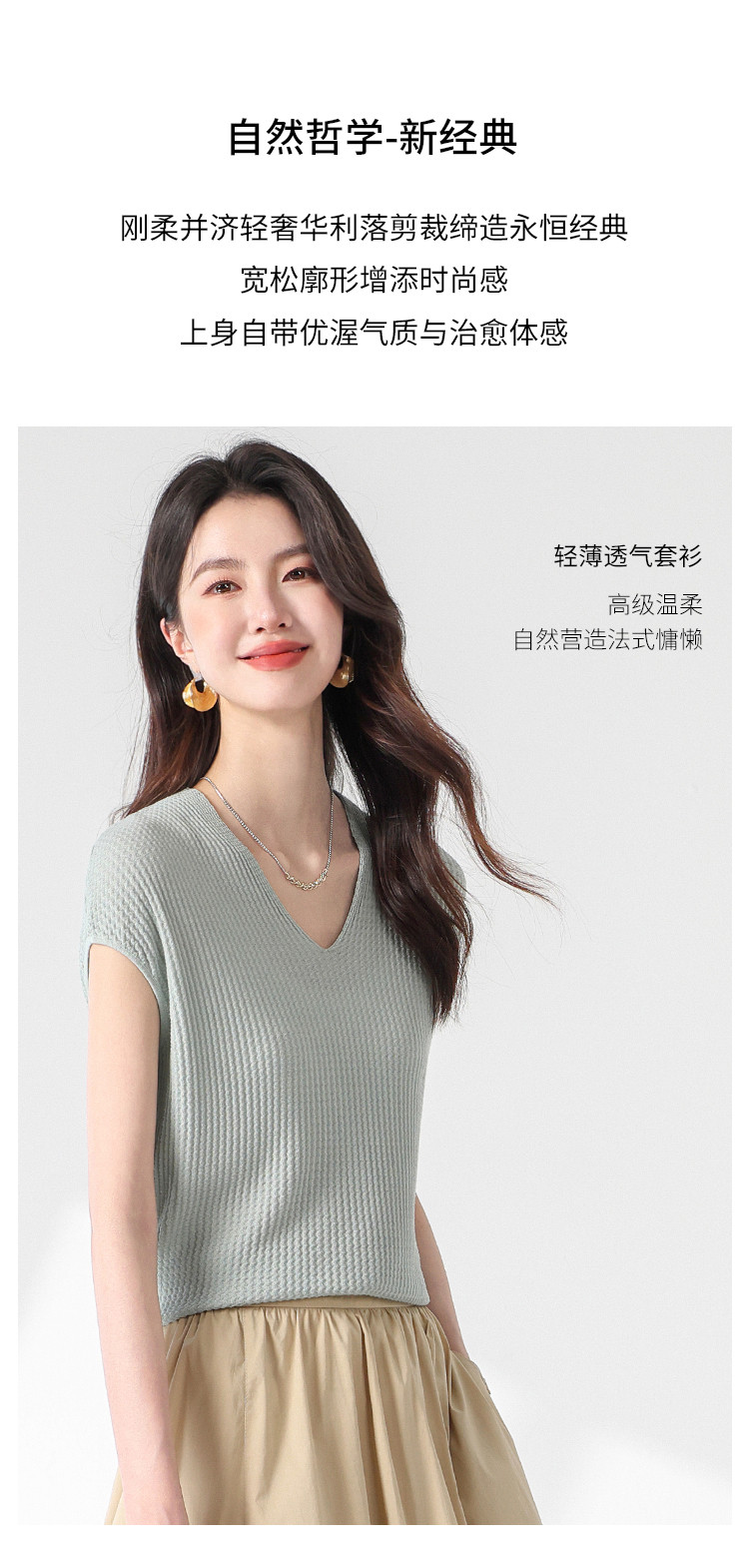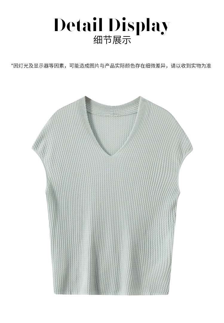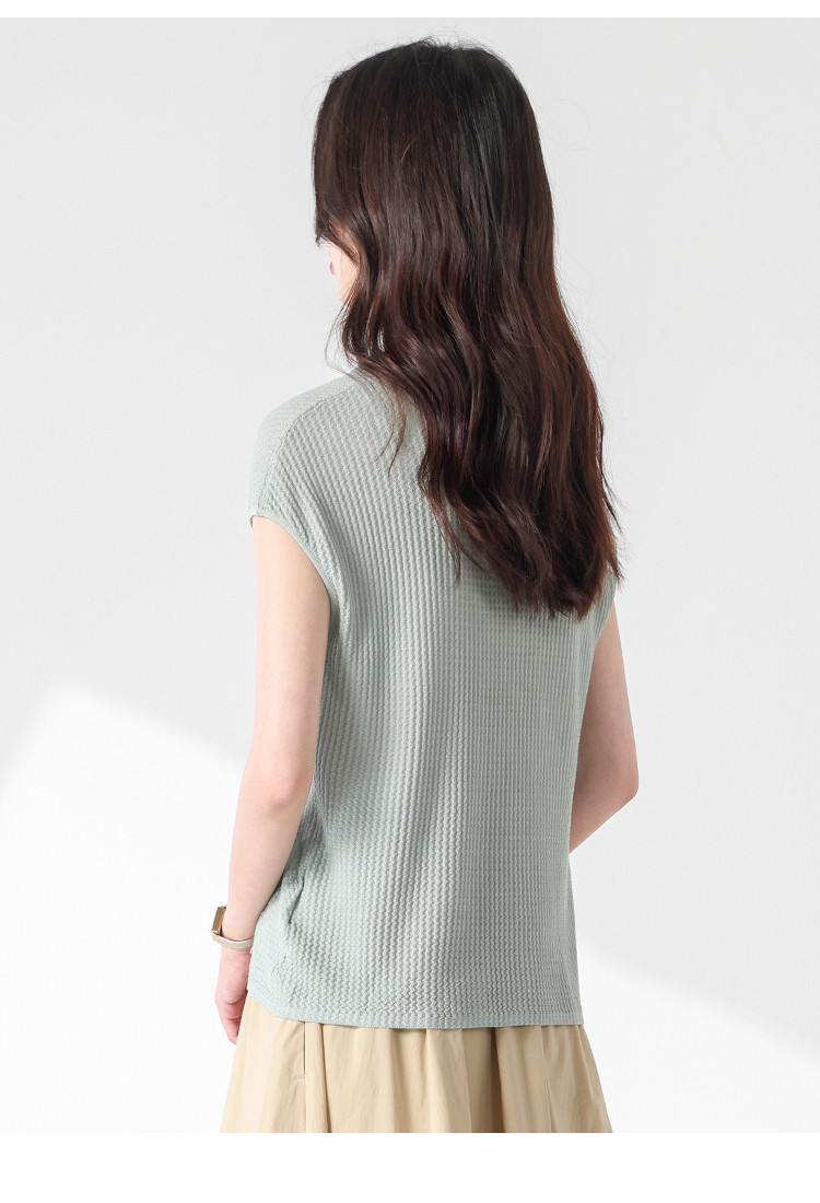 商品名称:V领纯色春夏薄款针织衫女含桑蚕丝休闲短袖T恤简约针织上衣 477971