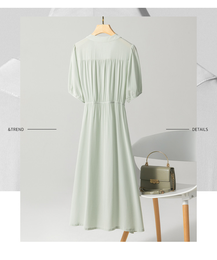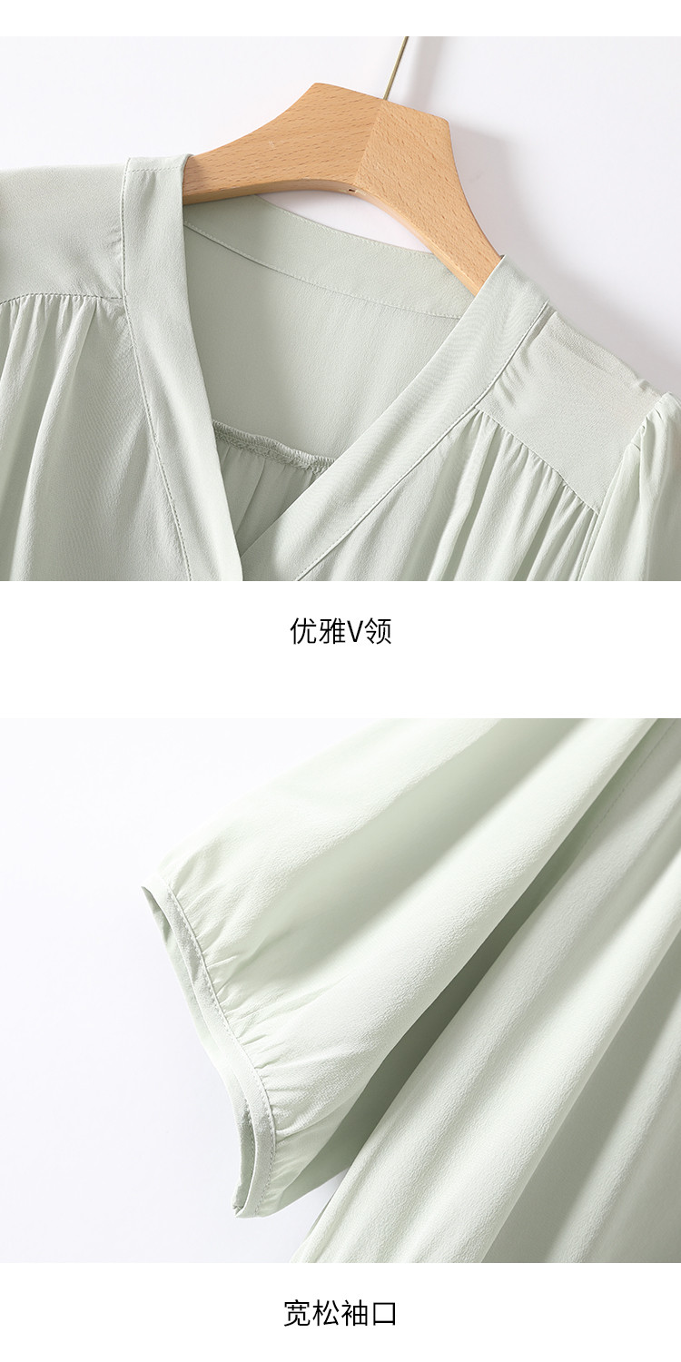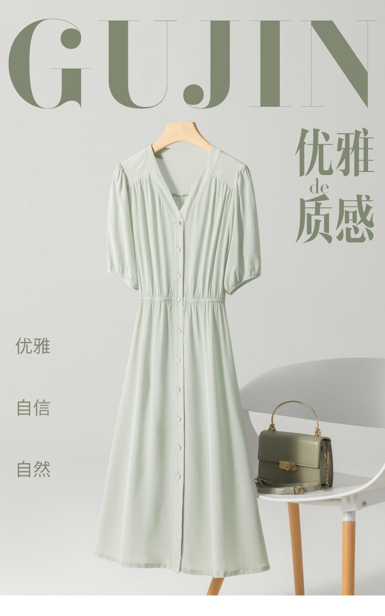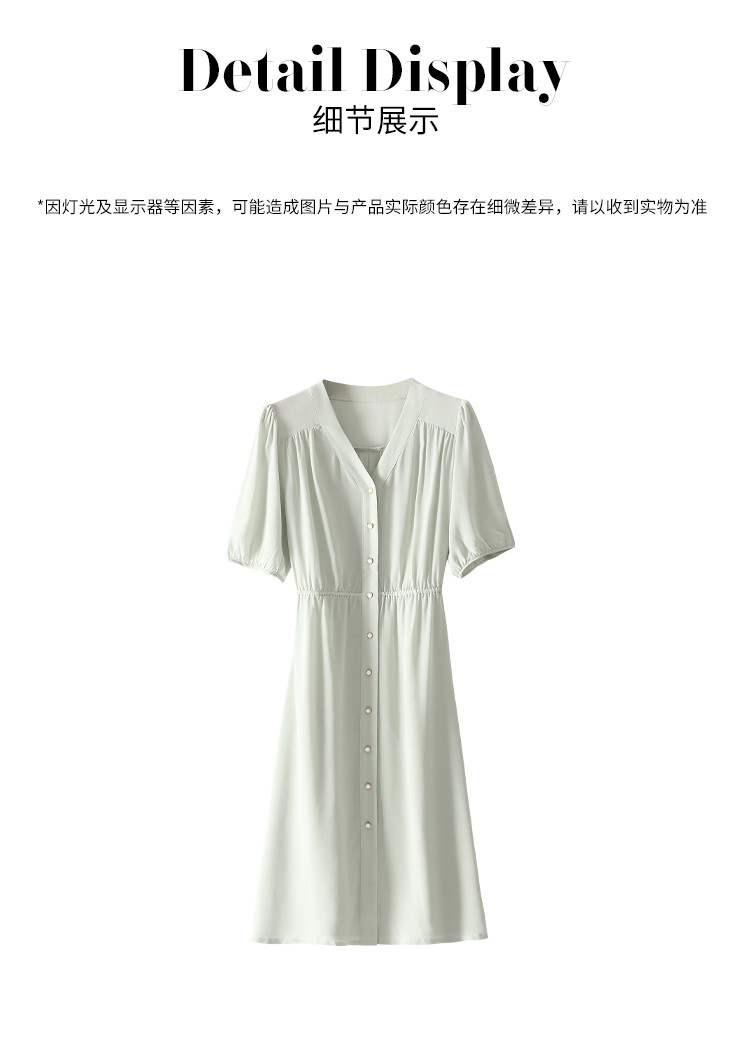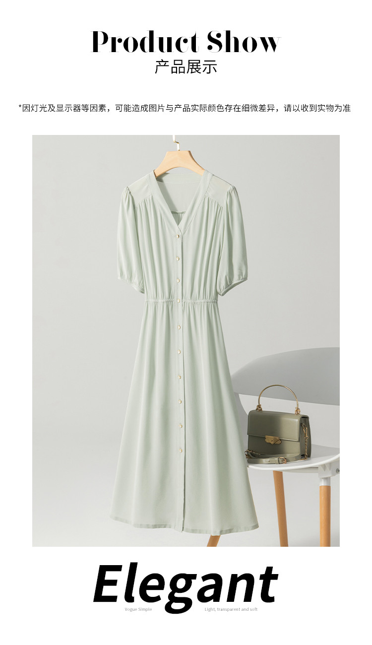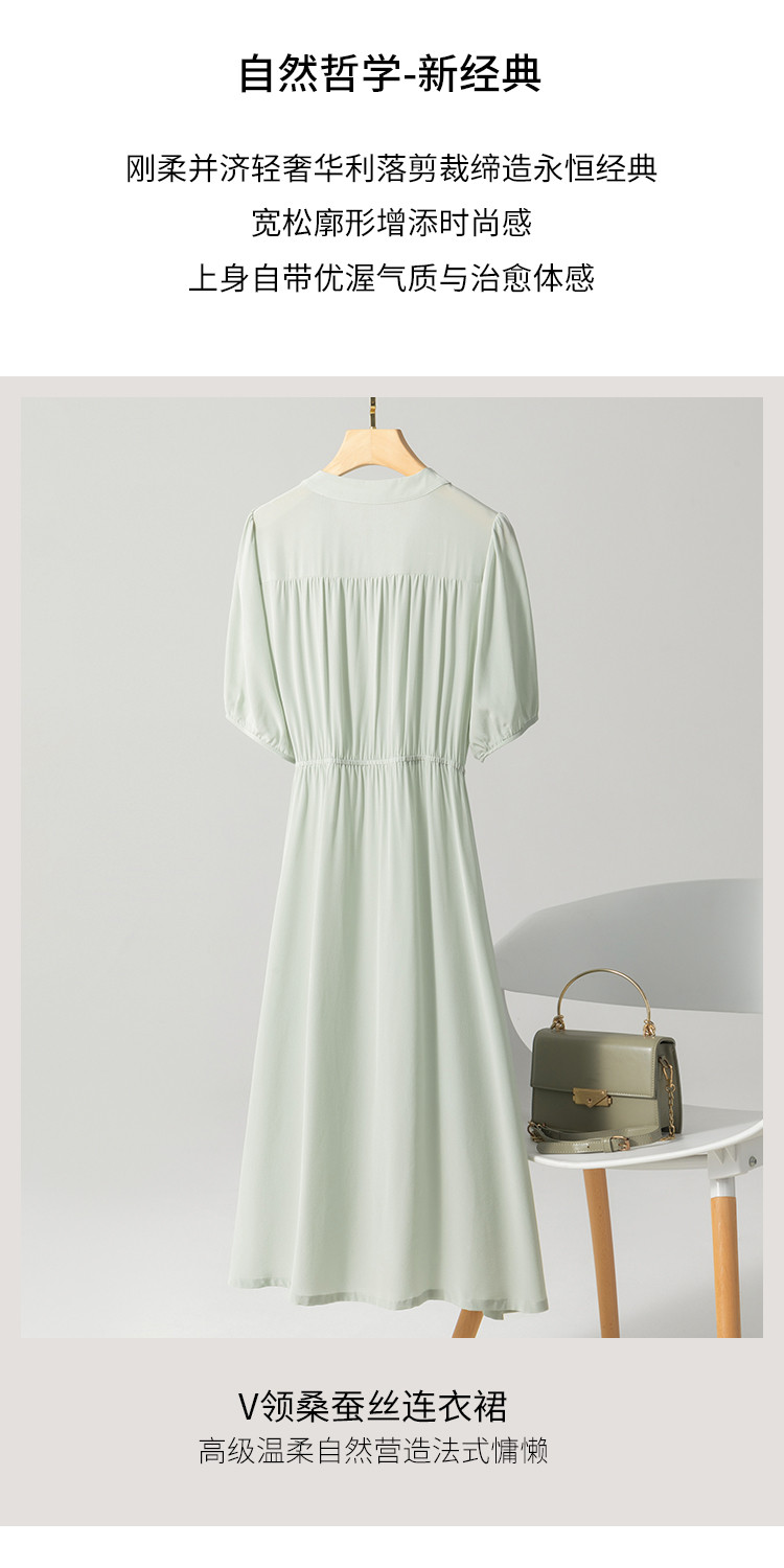 商品名称:【100%桑蚕丝】欧若风V领纯色百搭纽扣真丝连衣裙女夏 377427