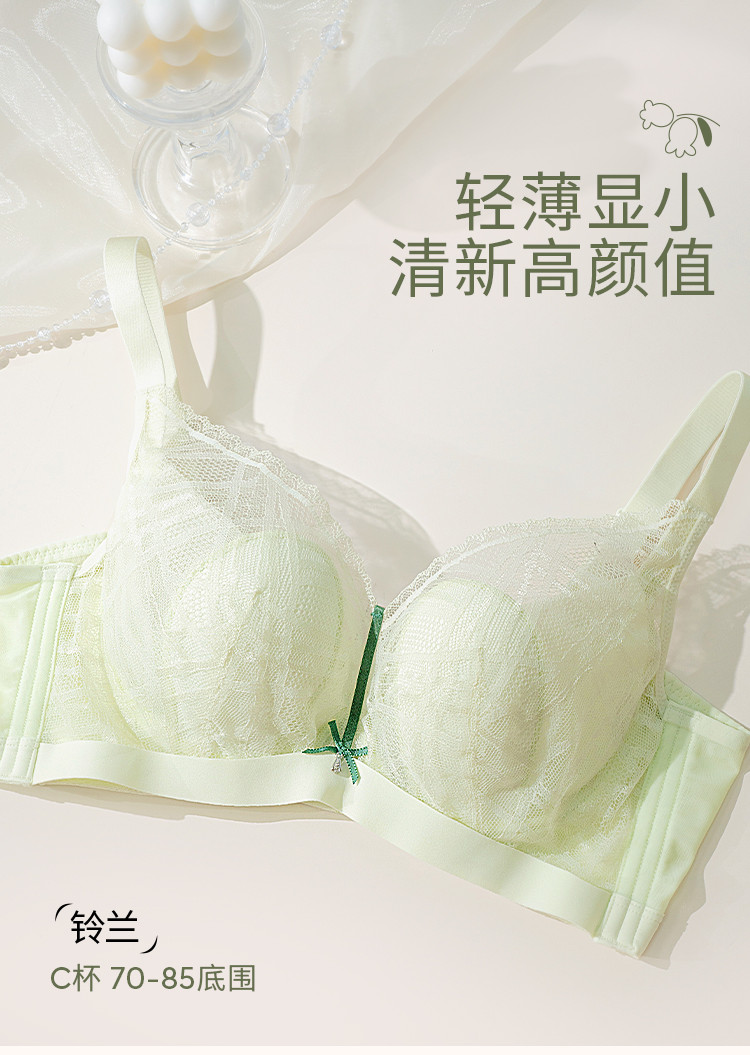 商品名称:【大胸显小】铃兰文胸轻薄显小舒适透气蕾丝全罩杯内衣女 175886