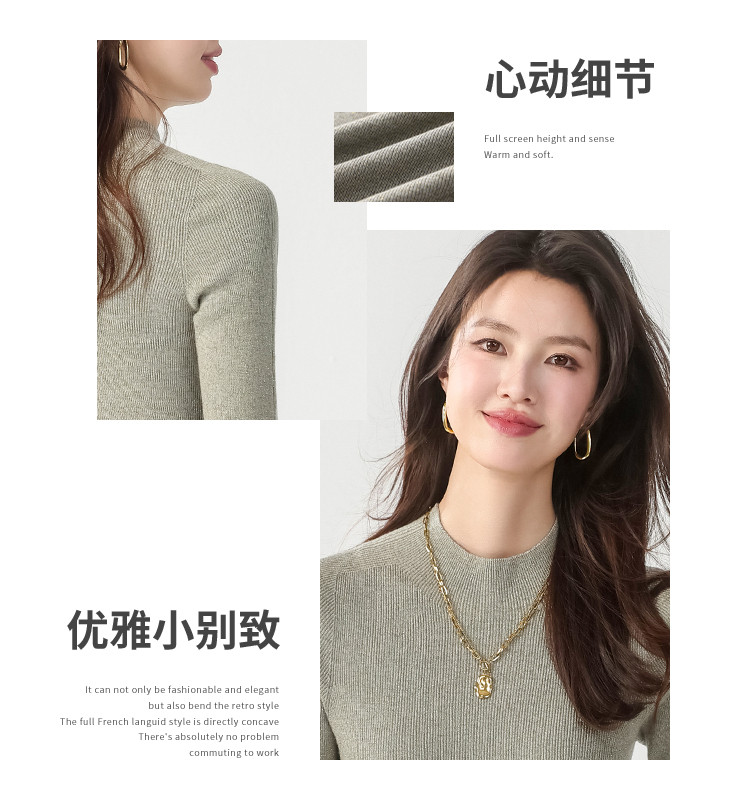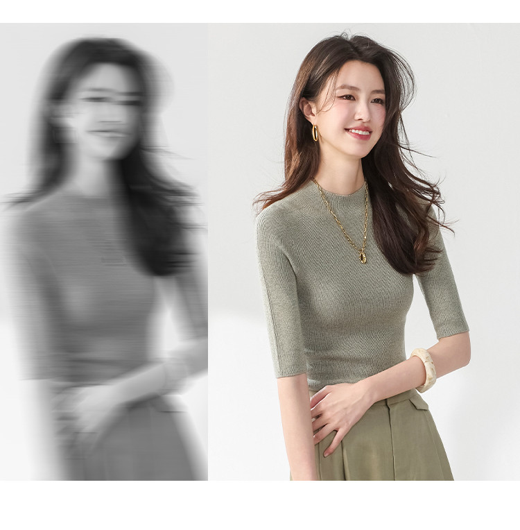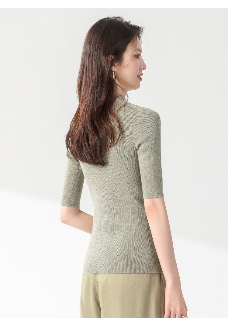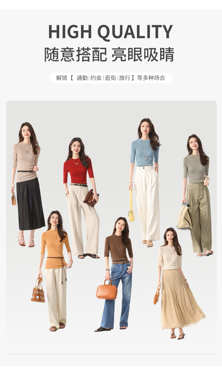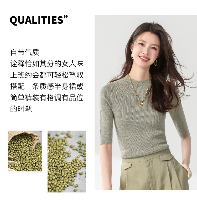 商品名称:精纺85%羊毛~凉感圆领纯色羊毛衫女五分袖T恤针织衫打底衫薄 593683
