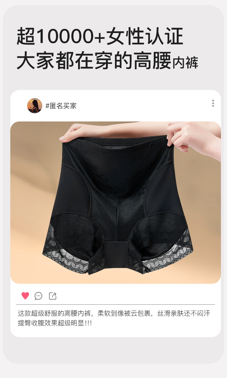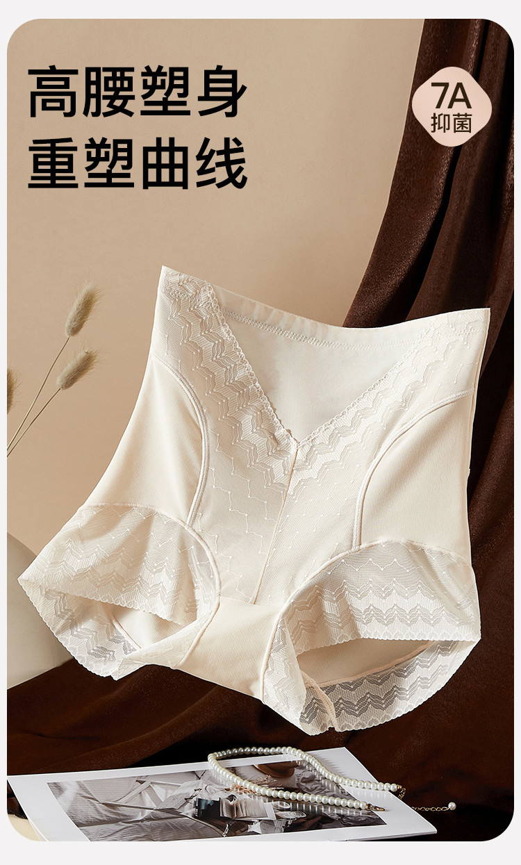 商品名称:【含桑蚕丝7A抑菌裆】高腰提臀收腹性感蕾丝透气女士内短裤衩女 050507